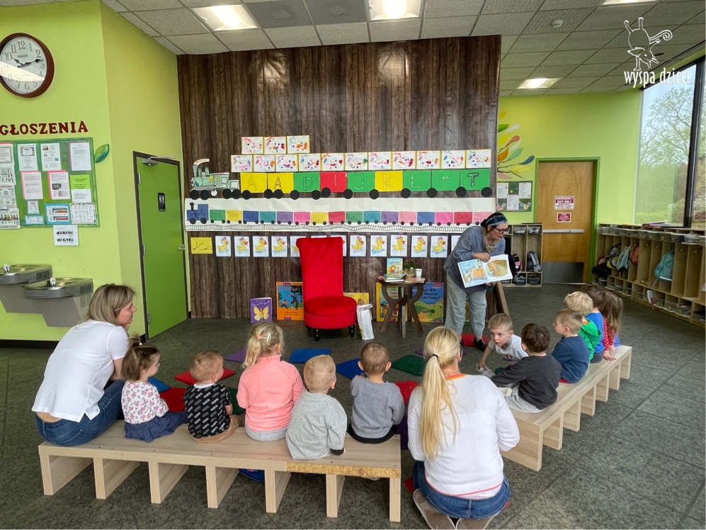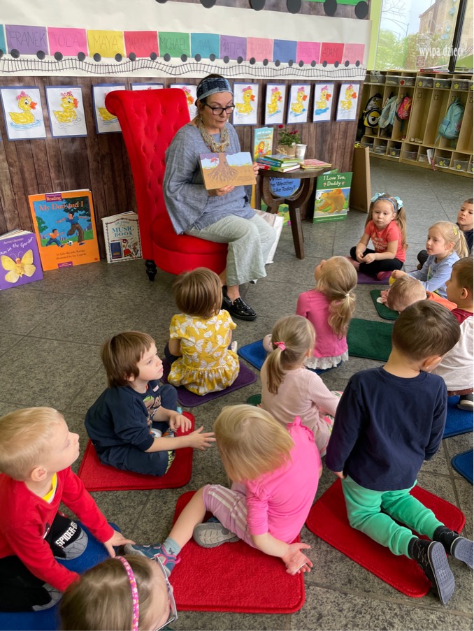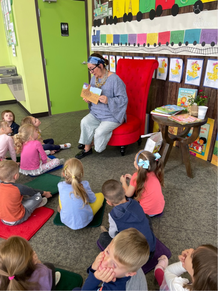 W kwietniu obchodzimy MIĘDZYNARODOWY DZIEŃ KSIĄŻKI. Bardzo się cieszymy,bo nasze zaproszenie do Wyspy Dzieci w River Grove przyjęła Pani Agata Paleczny – dyrektor teatru WARSZTATY TEATRALNE LITTLE STARS , producent, reżyser, aktorka. Pani Agata przeczytała naszym przedszkolakom ciekawe opowiadania oraz bajki przekazując tym samym za pośrednictwem literatury ważne tradycje i wartości moralne. Dzieci z uwagą wysłuchały, a następnie wzięły udział w dyskusji z Panią Agatą. Był to wspaniale spędzony czas na zakończenie naszego tygodnia „Polscy poeci dzieciom”