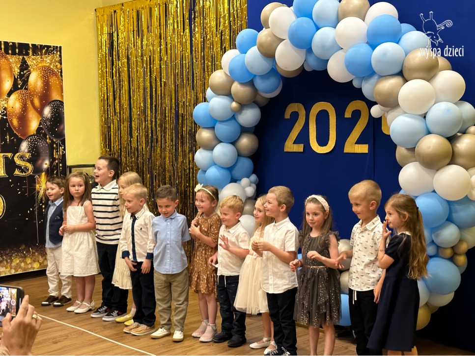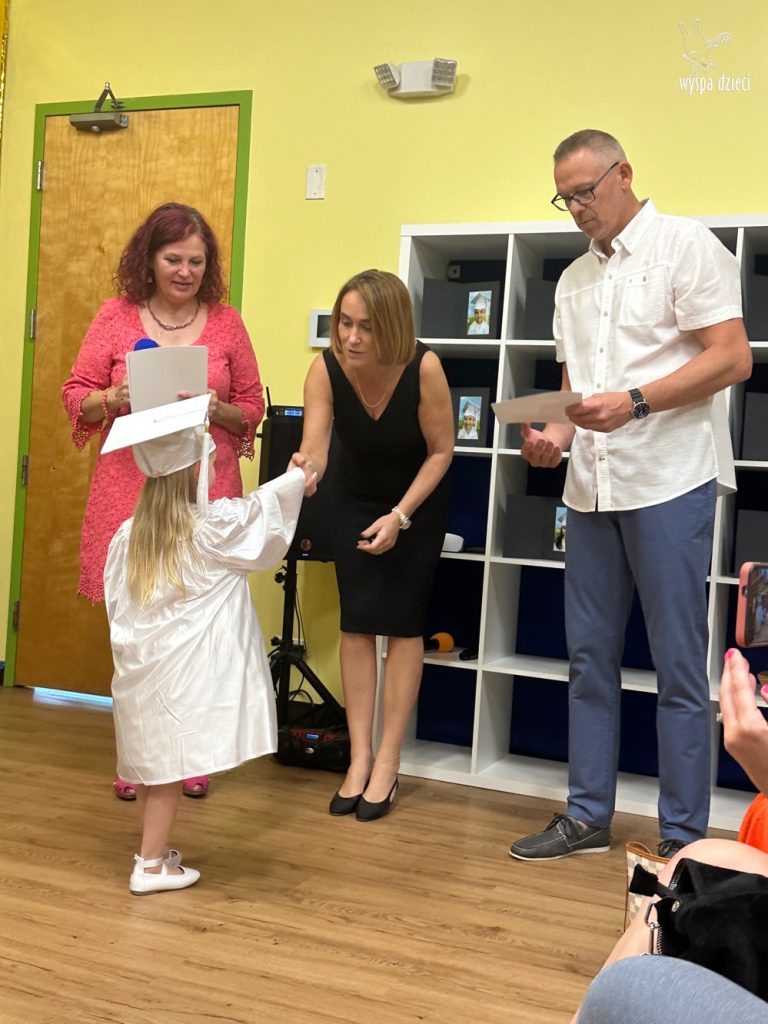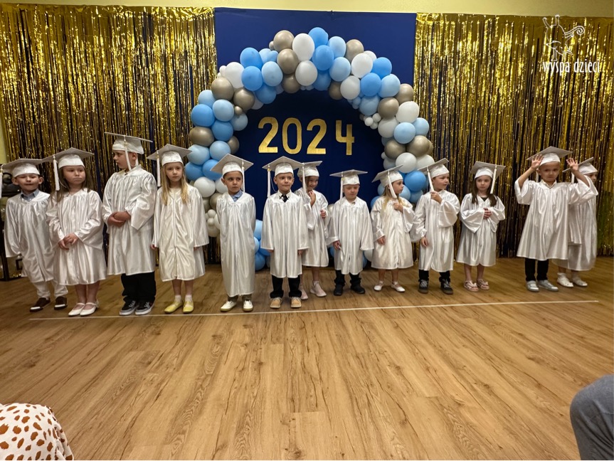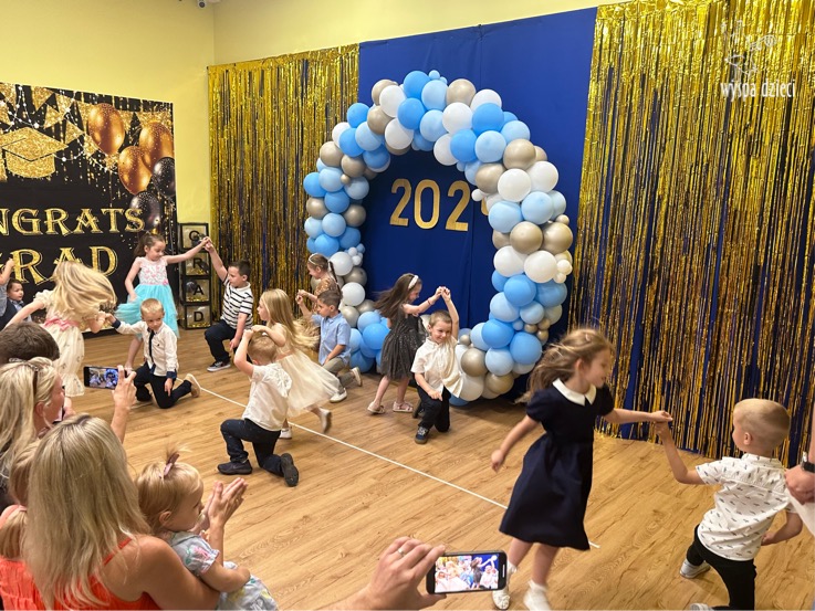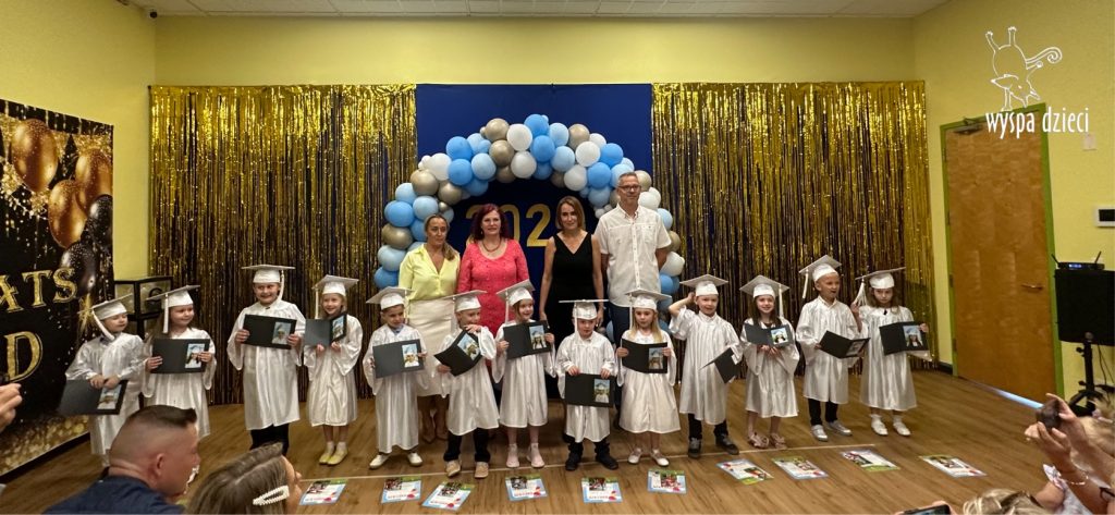 Dzieci pięknie prezentowały się w przygotowanym specjalnie na ten dzień programie. Po występach każde z nich otrzymało dyplom oraz na pamiątkę ramkę ze swoim zdjęciem. Po całej uroczystości czekały na dzieci w ich klasie, przygotowane przez rodziców smakołyki. Przed nimi teraz wakacje, a od września kolejny etap – klasa Kindergarten.
