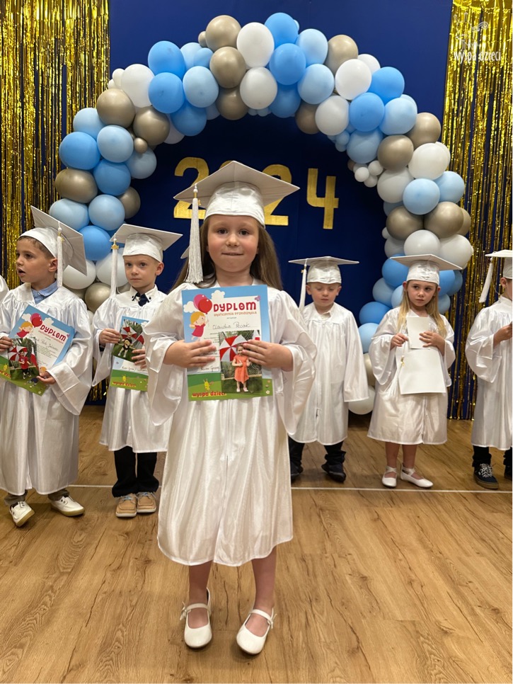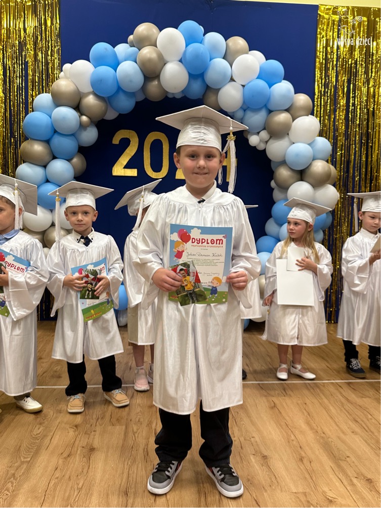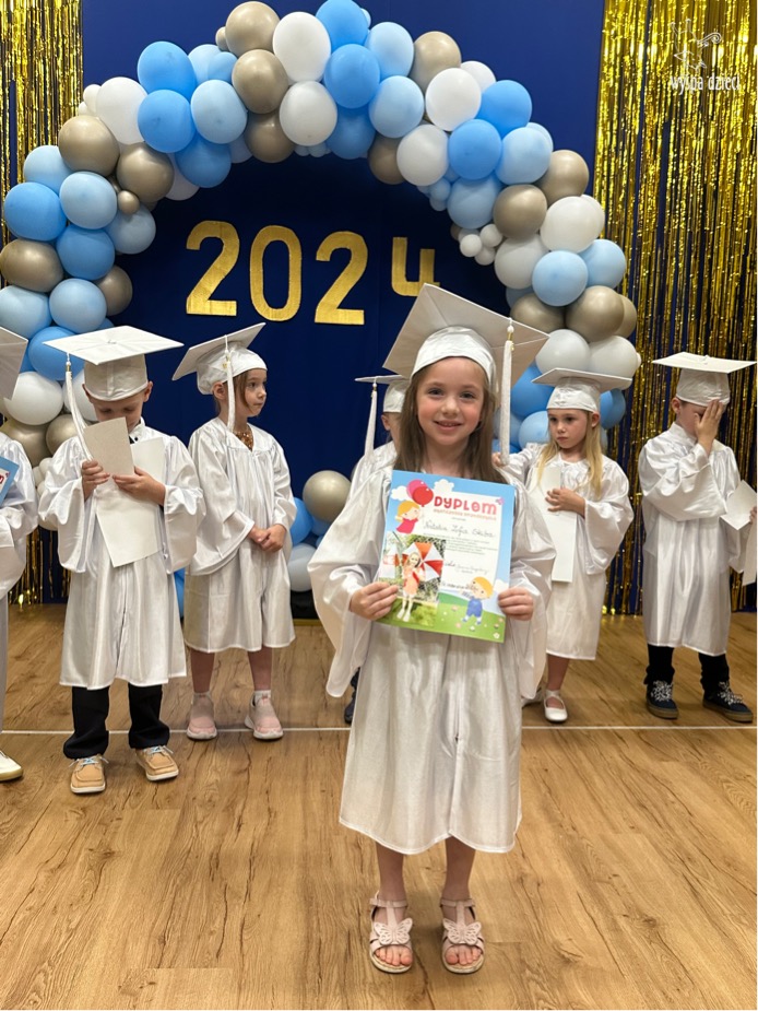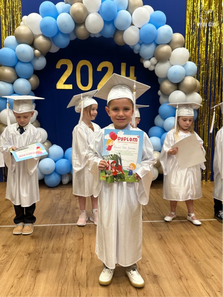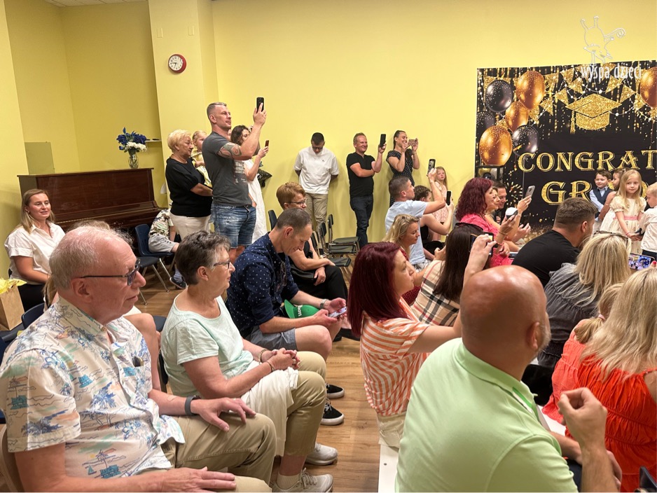 Dzieci pięknie prezentowały się w przygotowanym specjalnie na ten dzień programie. Po występach każde z nich otrzymało dyplom oraz na pamiątkę ramkę ze swoim zdjęciem. Po całej uroczystości czekały na dzieci w ich klasie, przygotowane przez rodziców smakołyki. Przed nimi teraz wakacje, a od września kolejny etap – klasa Kindergarten.