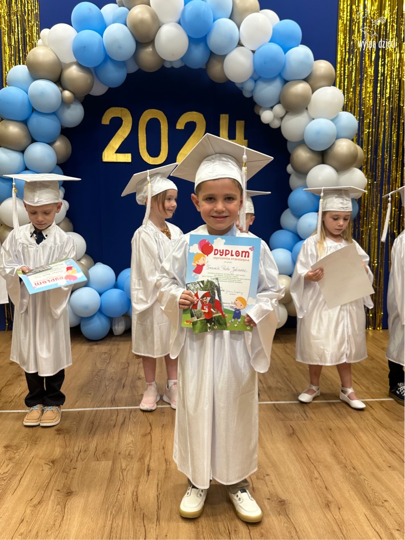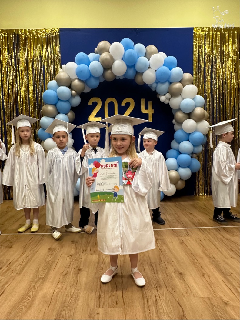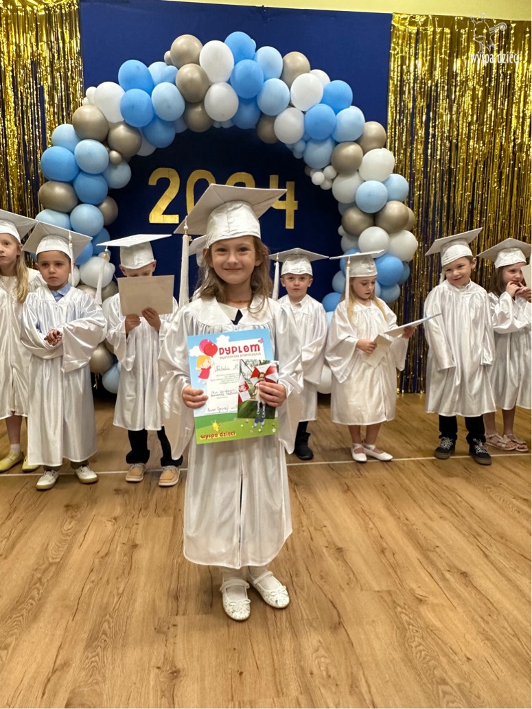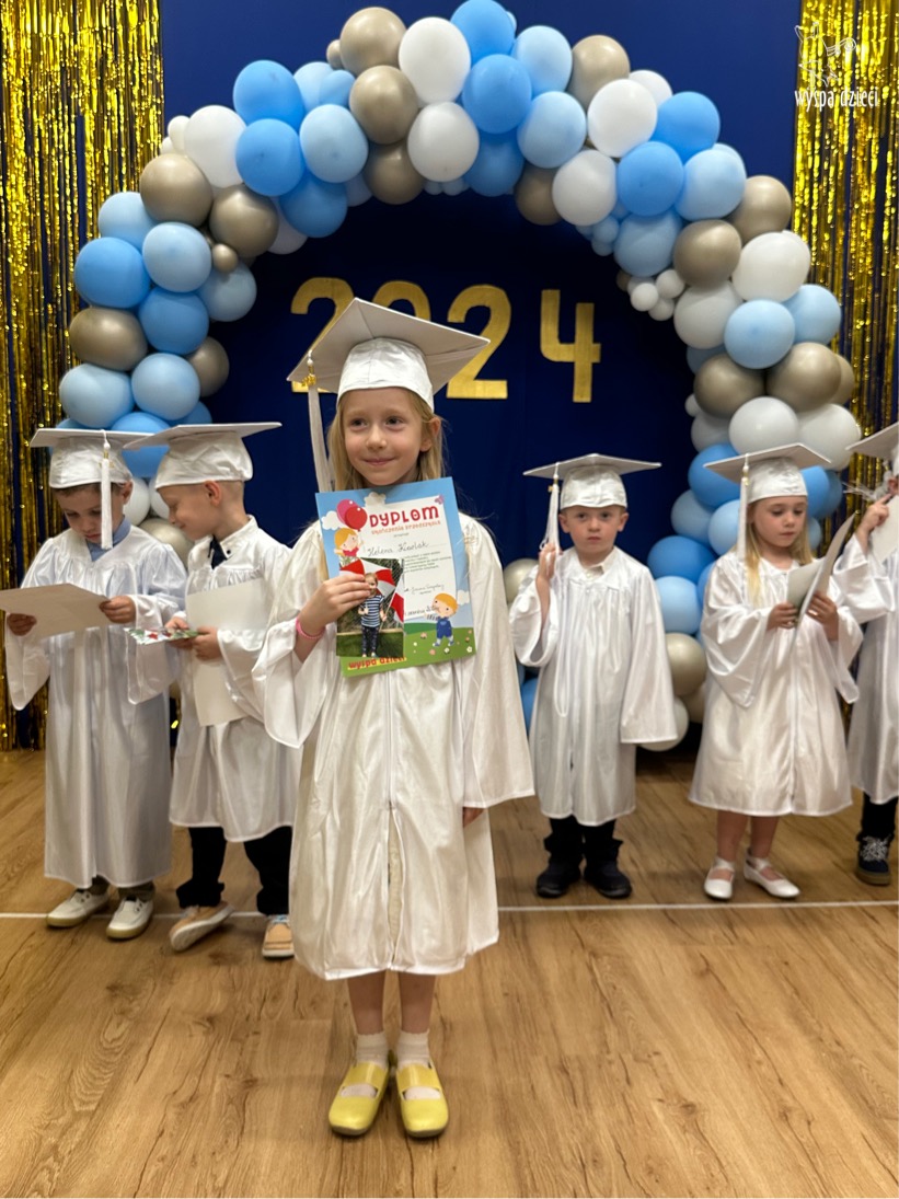 Dzieci pięknie prezentowały się w przygotowanym specjalnie na ten dzień programie. Po występach każde z nich otrzymało dyplom oraz na pamiątkę ramkę ze swoim zdjęciem. Po całej uroczystości czekały na dzieci w ich klasie, przygotowane przez rodziców smakołyki. Przed nimi teraz wakacje, a od września kolejny etap – klasa Kindergarten.