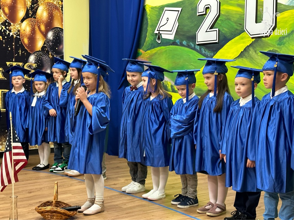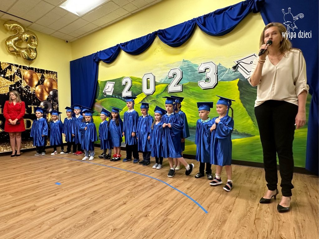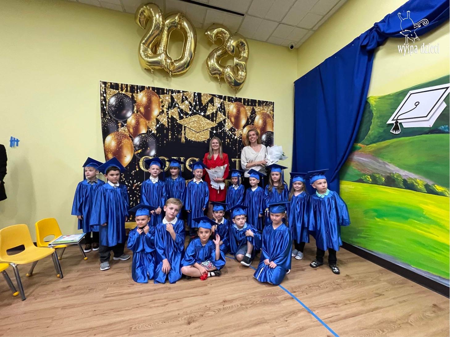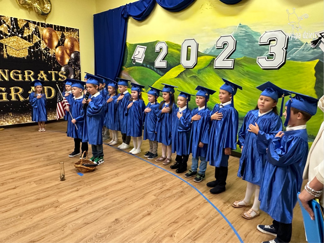 W piatek 16 czerwca, 2023 roku  odbyła się w naszej Wyspie Dzieci w River Grove graduacja grup anglojęzycznych, czyli Kindergarten – Odkrywcow oraz Wynalazcow. Grupy Kindergarten niestety opuszczają już całkiem nasze mury.