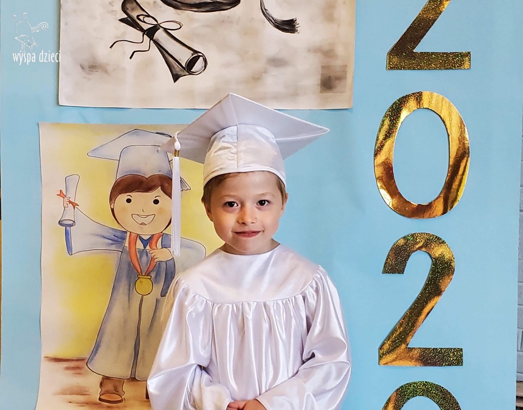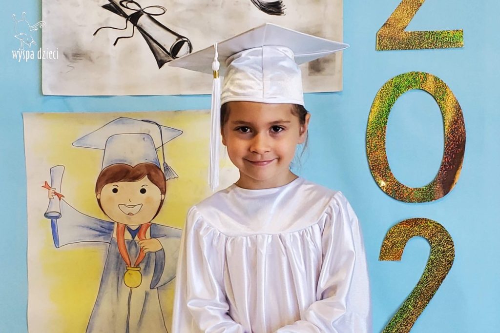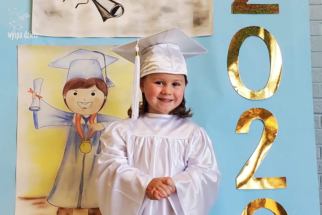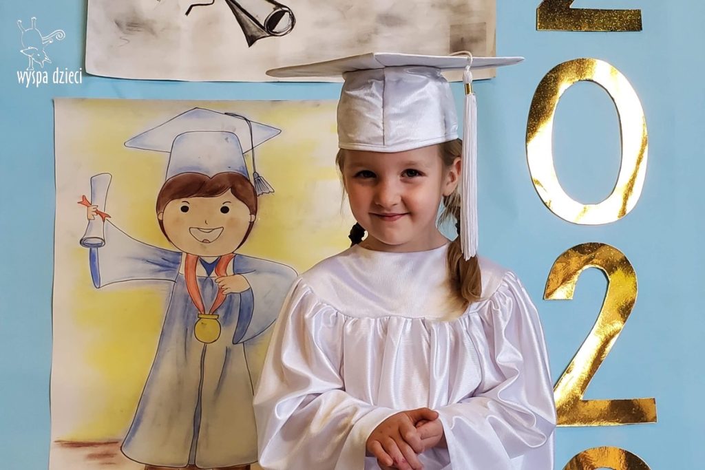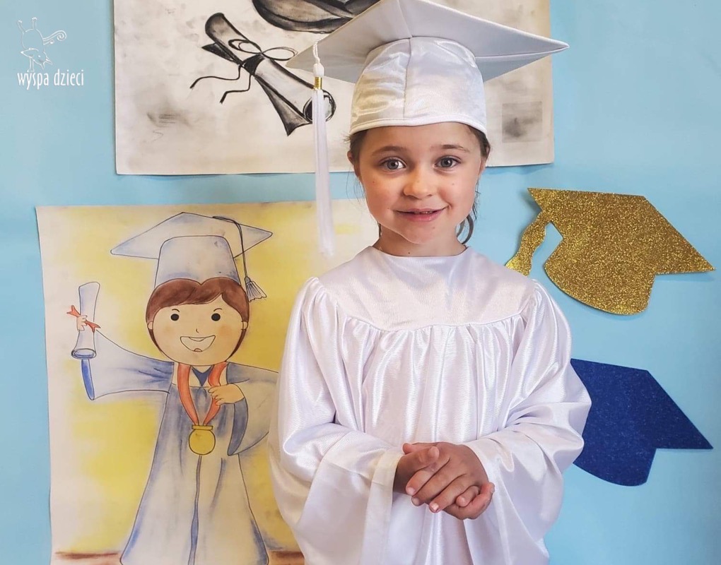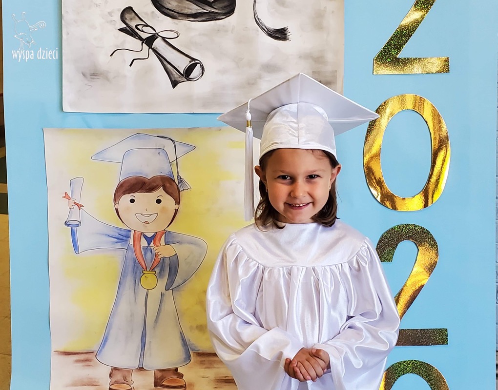 W pewien czerwcowy dzień nadszedł czas pożegnania naszych najstarszych Wyspiarzy.B yły to chwile pełne radości, ale i smutku, dumy, refeksji i wspomnień…Kochani Podróżnicy, Ukochane Bystrzaki przeżyły trudny w tym roku, jakże inny czas graduacji.Przedszkolacy z dwóch grup polskojęzycznych, ubrani w piękne, białe togi, uwiecznili swoją obecnosć na Wyspie Dzieci pamiątkowymi zdjęciami.Ze względu na istniejącą pandemię, liczne obostrzenia i koniecznosć zachowania dystansu,nie mogliśmy celebrować tak ważnego dnia,jak w ubiegłych latach,uroczyscie,z rozmachem ,na pięknej akademii,z udziałem Waszych Kochanych Rodziców. Na szczęscie,zachowaliśmy w sercach i pamięci piękne,wspólne grupowe występy,ciekawe zajęcia,wesołe zabawy,mądre dialogi,dociekliwe pytania,cudowne prace plastyczne i eksperymenty.Wszak zarówno Podróżnicy, jak i Bystrzaki stworzyły kolejną grupę cudownych przedszkolaków,które poszerzyly grono absolwentów WYSPY DZIECI, zapisując karty jej historii pięknymi wspomnieniami… Dziś pragniemy serdecznie podziękować Wam – Kochane Dzieci za to ,że mogłyśmy wspólnie przeżywać te cudowne chwile,śledzić Wasze postępy, bawic się i uczyc , za Wasz entuzjazm i usmiech,Waszym Wspaniałym Rodzicom za zaufanie ,miłe słowa i wszelką nieocenioną pomoc.Szczególne wyrazy wdzięczności i uznania kierujemy w stronę Pani Anny Ziółko-mamy Natalki z Podróżników ,która była niezawodna w niesieniu pomocy, w tworzeniu projektów, gromadzeniu elementów scenografii do naszych występów i zajęć.Dziękujemy bardzo za jej życzliwosc i kreatywnosć.Słowa podziękowań kierujemy też w stronę Dyrekcji i całego Grona Pedagogicznego naszego przedszkola .Jesteśmy wdzięczne za Waszą życzliwość i wsparcie,za aktywny udział w rzeźbieniu osobowości naszych podopiecznych..Nasze serca przepełnione są radoscią i wzruszeniem.