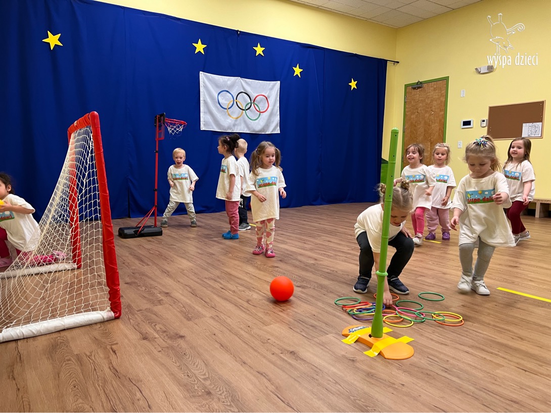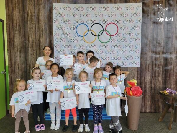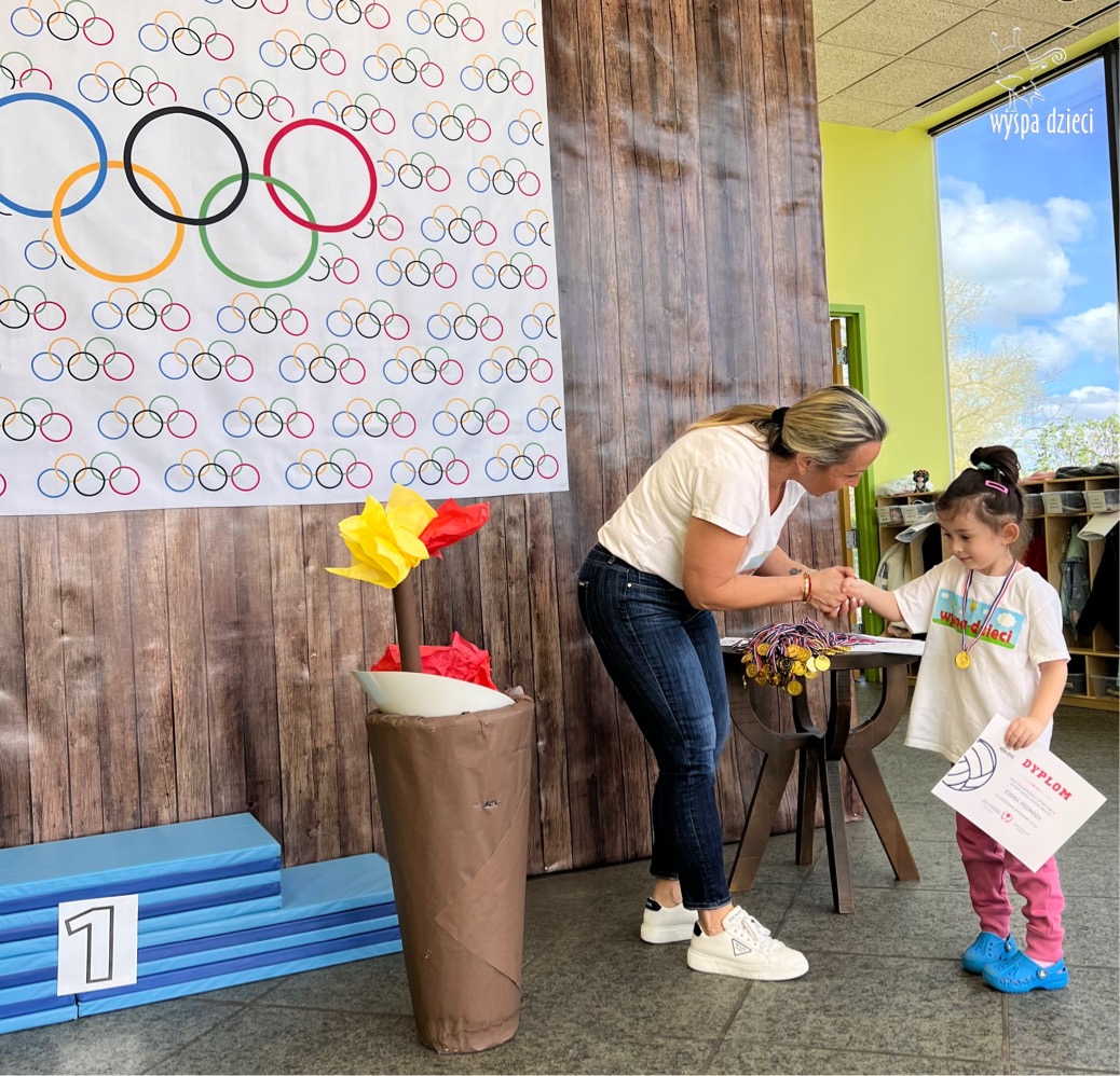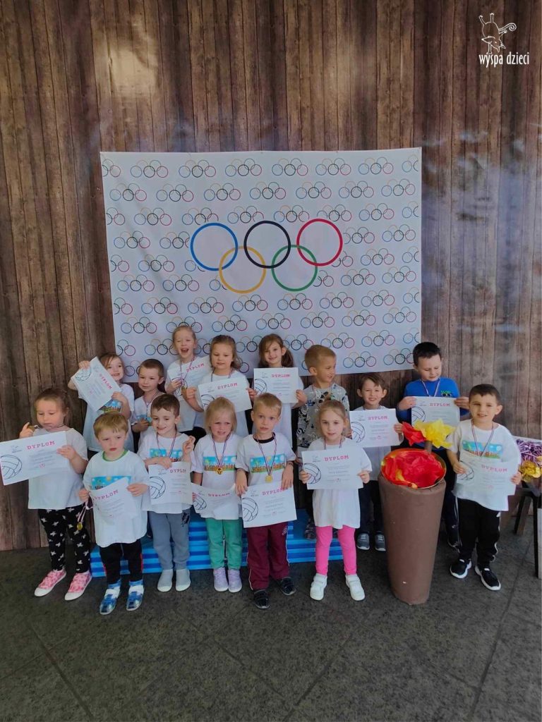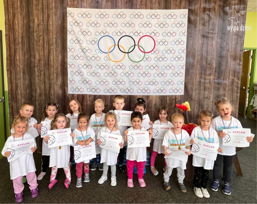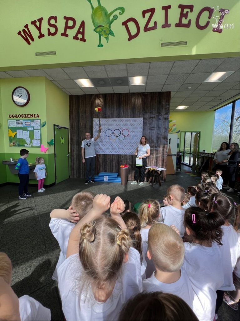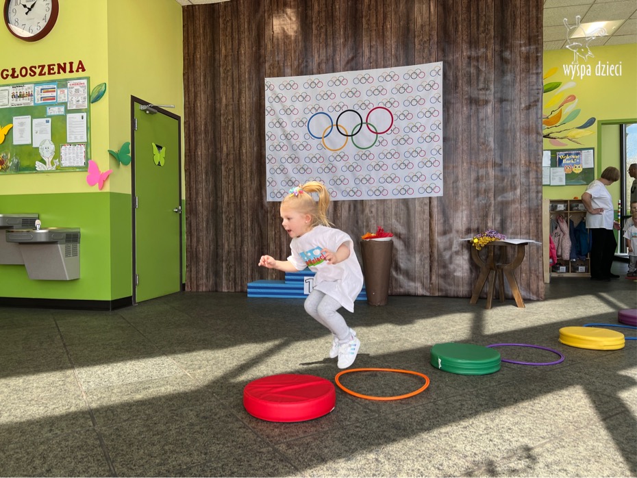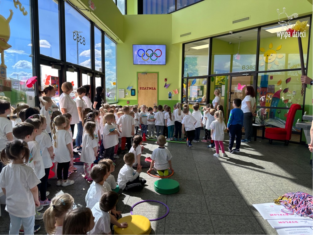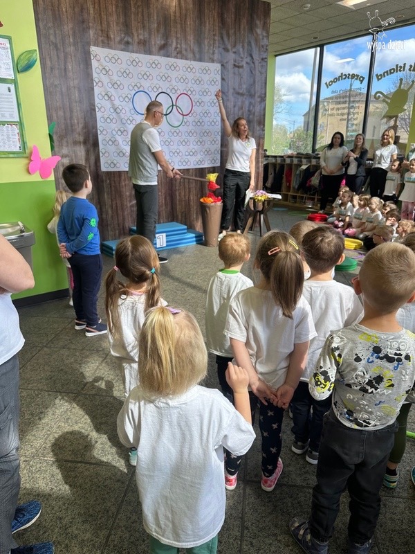 12 kwietna 2024 roku wszystkie przedszkolaki wzięły udział w Trzecich Sportowych Igrzyskach Olimpijskich Wyspy Dzieci River Grove. Wszyscy spotkaliśmy się wspólnie na głównym korytarzu przedszkola. Pan Ewa opowiedziała wszystkim o Igrzyskach Olimpijskich, ich symbolach i o współzawodnictwie „fair play” . Nastepnie Pan Piotr wbiegł z ogniem olimpijskim od którego zapalono nasz znicz olimpijski. Znakiem do rozpoczęcia igrzysk było wysłuchanie przez przedszkolaków Hymnu Olimpijskiego. Wszyscy zostali podzieleni na dwie grupy. Pierwsza grupa to : Misie, Krasnale, Smerfy, oraz Bystrzaki, których konkurencje sportowe rozgrywane były na pierwszym piętrze . Natomiast na drugim piętrze była druga grupa – czyli Poszukiwacze, Wynalazcy oraz Odkrywcy. Wszyscy chętnie wykonywali ćwiczenia przygotowane przez wszystkich nauczycieli. Był maraton, przysiady, pompki, wyskoki w gore,  pilka nozna, rzut do celu, sztafeta, tunel,  i wiele … wiele innych….  . Zabawy i radości było co niemiara, a wszystko w duchu zdrowej i miłej atmosfery rywalizacji. Każdy mógł  spróbować swoich sił w jakiejś dyscyplinie sportowej, a wszystkie dzieci dopingowały sobie nawzajem. Na zakończenie Igrzysk Olimpijskich wszystkim dzieciom zostały wręczone dyplomy oraz medale olimpijskie ! Ten dzień napewno pozostanie w naszej pamięci !  Zapraszamy do galerii zdjęć: