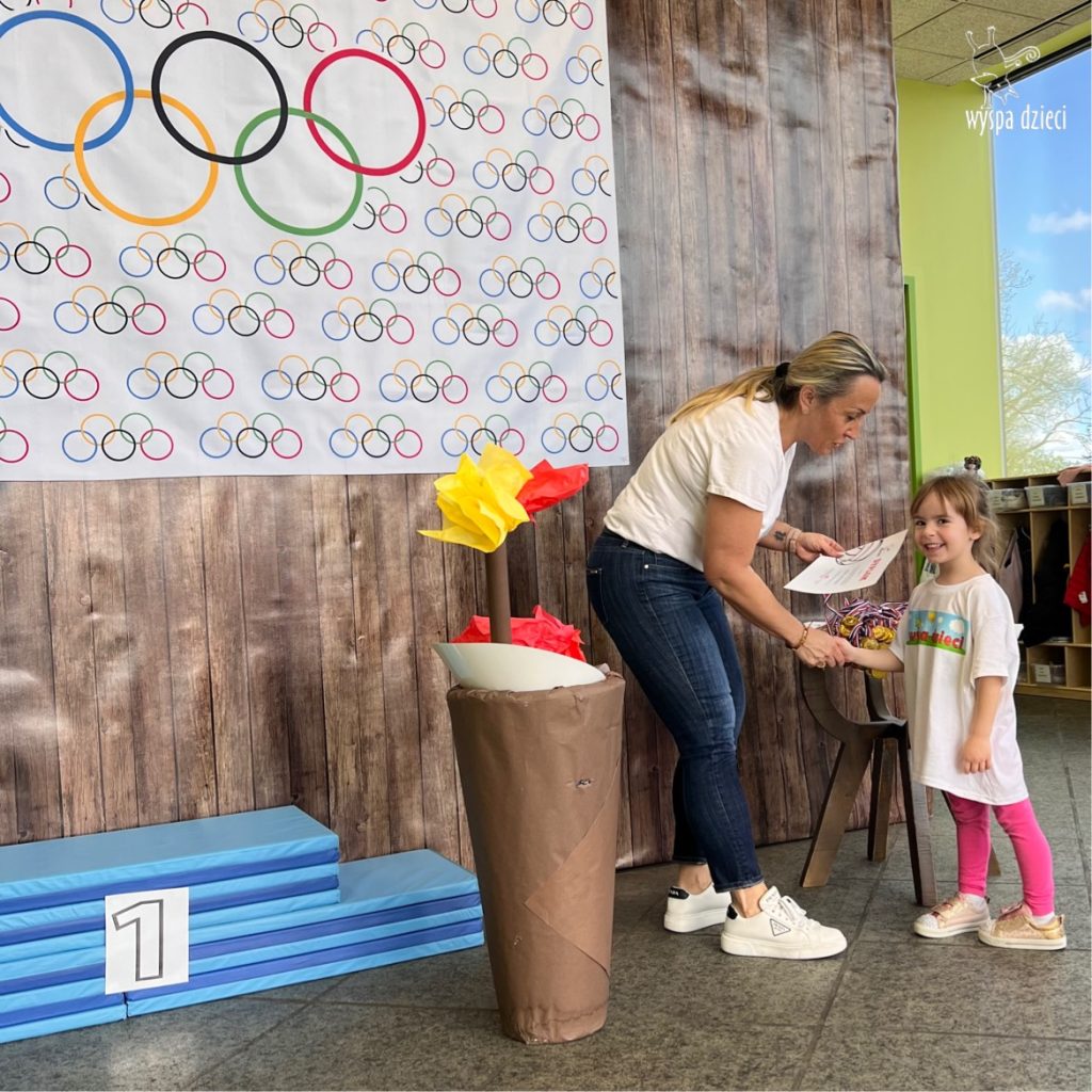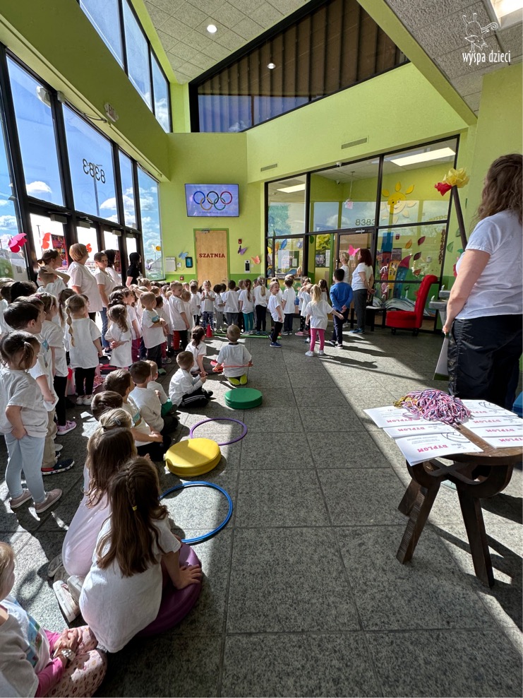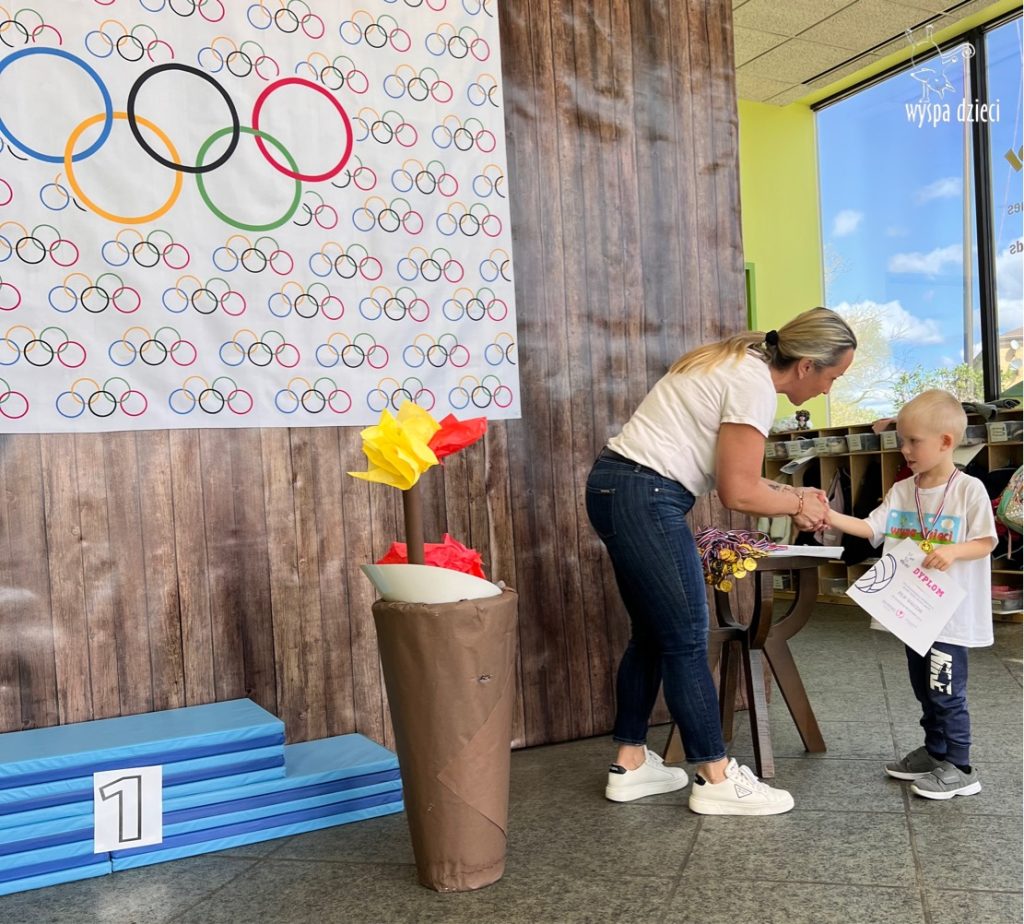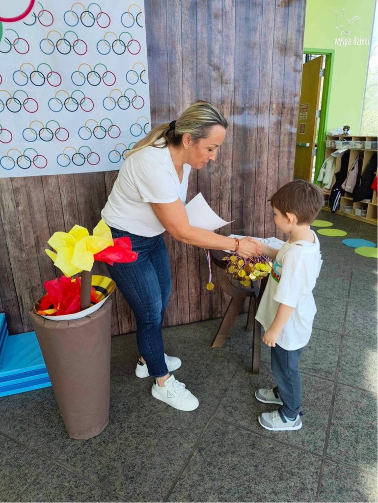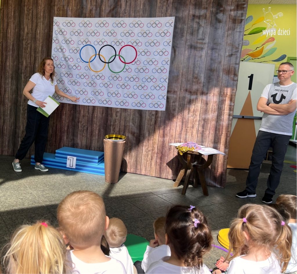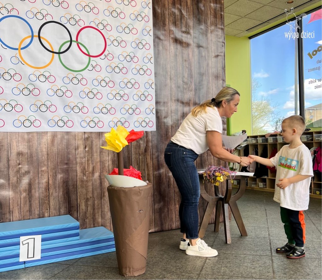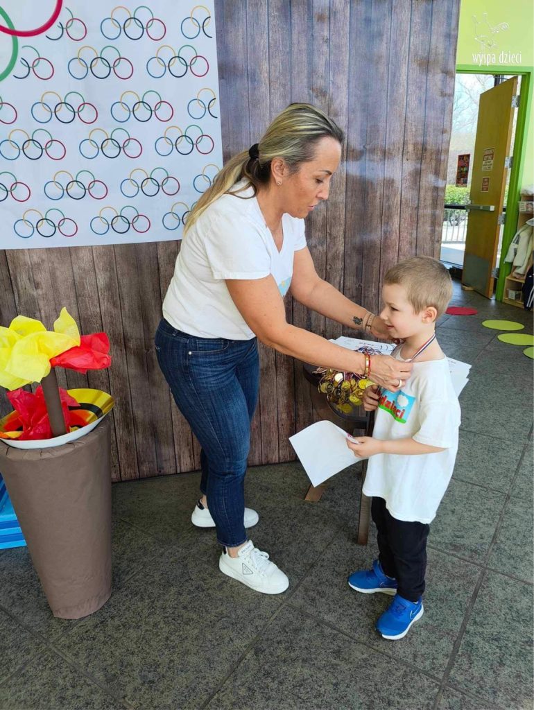 12 kwietna 2024 roku wszystkie przedszkolaki wzięły udział w Trzecich Sportowych Igrzyskach Olimpijskich Wyspy Dzieci River Grove. Wszyscy spotkaliśmy się wspólnie na głównym korytarzu przedszkola. Pan Ewa opowiedziała wszystkim o Igrzyskach Olimpijskich, ich symbolach i o współzawodnictwie „fair play” . Nastepnie Pan Piotr wbiegł z ogniem olimpijskim od którego zapalono nasz znicz olimpijski. Znakiem do rozpoczęcia igrzysk było wysłuchanie przez przedszkolaków Hymnu Olimpijskiego. Wszyscy zostali podzieleni na dwie grupy. Pierwsza grupa to : Misie, Krasnale, Smerfy, oraz Bystrzaki, których konkurencje sportowe rozgrywane były na pierwszym piętrze . Natomiast na drugim piętrze była druga grupa – czyli Poszukiwacze, Wynalazcy oraz Odkrywcy. Wszyscy chętnie wykonywali ćwiczenia przygotowane przez wszystkich nauczycieli. Był maraton, przysiady, pompki, wyskoki w gore,  pilka nozna, rzut do celu, sztafeta, tunel,  i wiele … wiele innych….  . Zabawy i radości było co niemiara, a wszystko w duchu zdrowej i miłej atmosfery rywalizacji. Każdy mógł  spróbować swoich sił w jakiejś dyscyplinie sportowej, a wszystkie dzieci dopingowały sobie nawzajem. Na zakończenie Igrzysk Olimpijskich wszystkim dzieciom zostały wręczone dyplomy oraz medale olimpijskie ! Ten dzień napewno pozostanie w naszej pamięci !  Zapraszamy do galerii zdjęć: