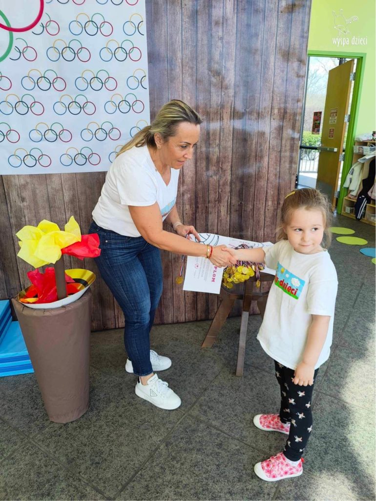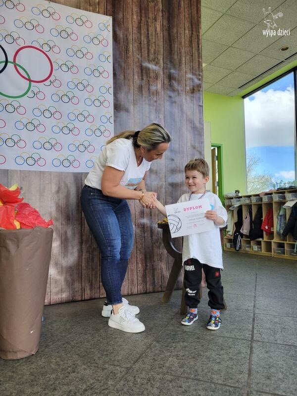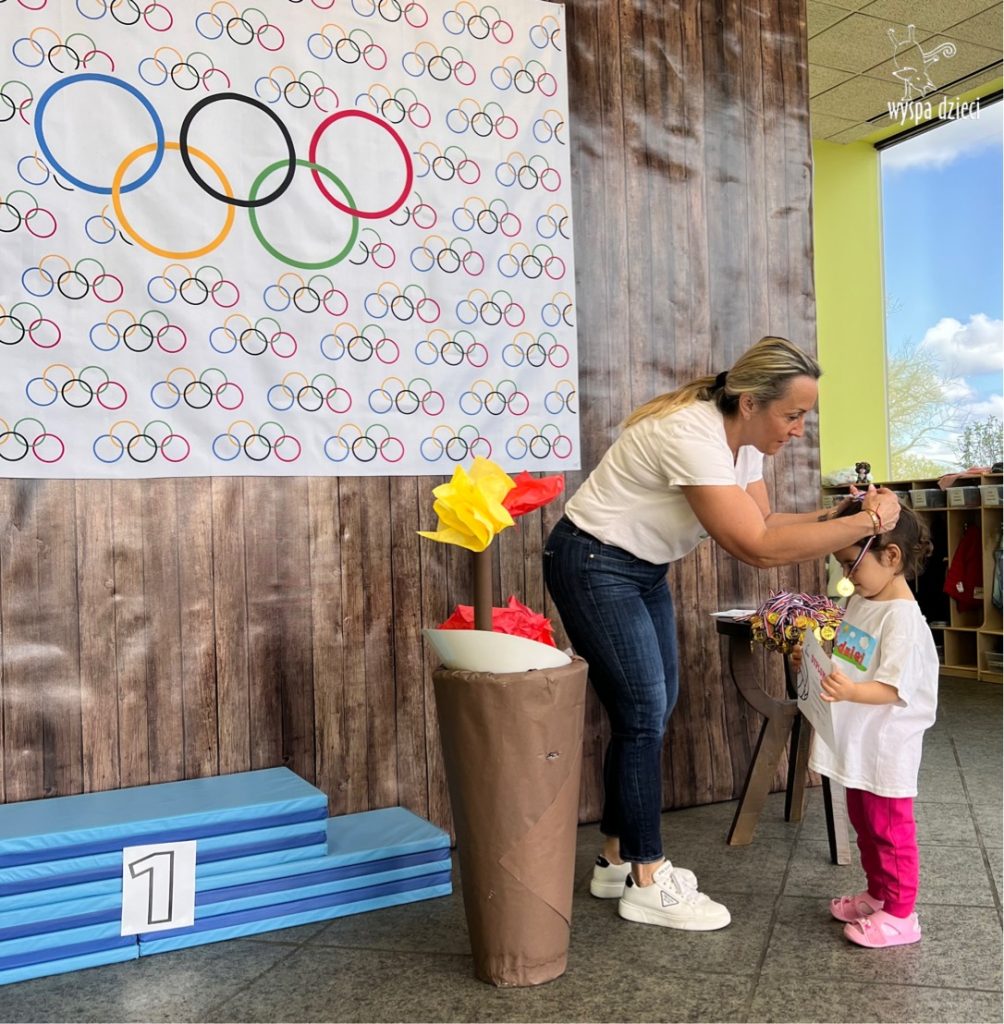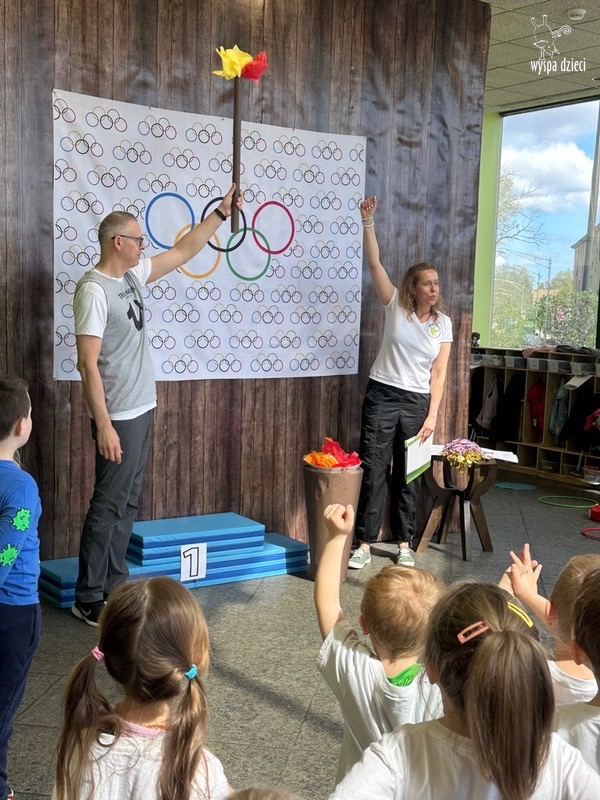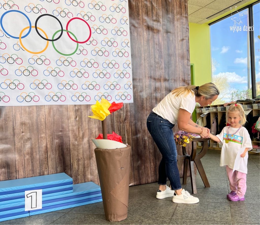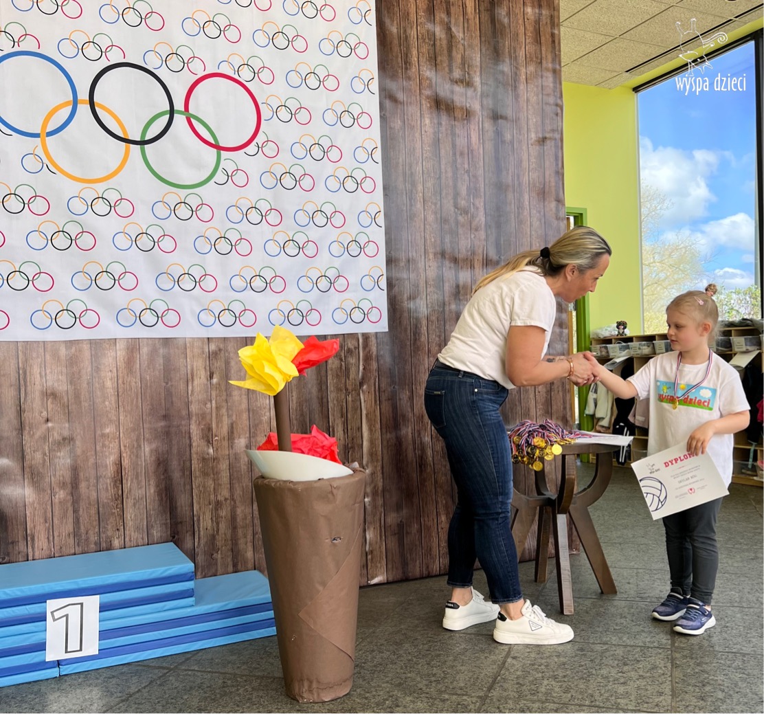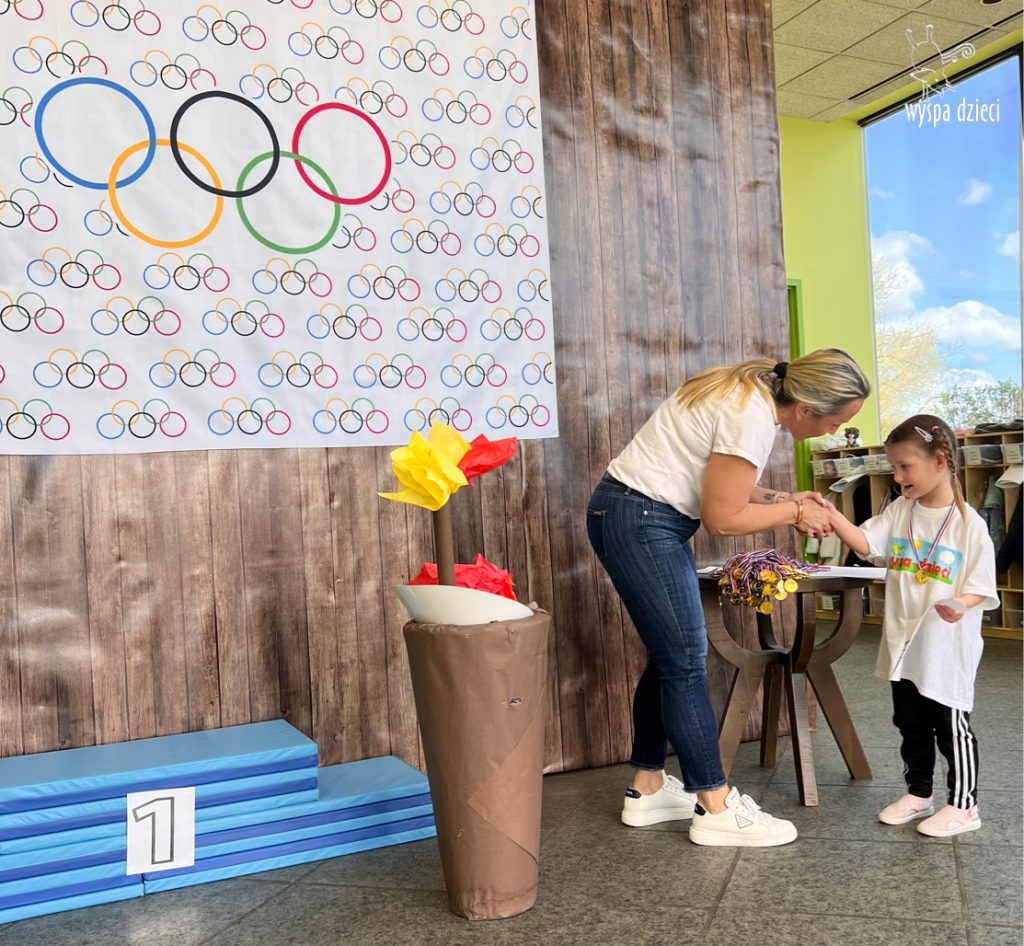 12 kwietna 2024 roku wszystkie przedszkolaki wzięły udział w Trzecich Sportowych Igrzyskach Olimpijskich Wyspy Dzieci River Grove. Wszyscy spotkaliśmy się wspólnie na głównym korytarzu przedszkola. Pan Ewa opowiedziała wszystkim o Igrzyskach Olimpijskich, ich symbolach i o współzawodnictwie „fair play” . Nastepnie Pan Piotr wbiegł z ogniem olimpijskim od którego zapalono nasz znicz olimpijski. Znakiem do rozpoczęcia igrzysk było wysłuchanie przez przedszkolaków Hymnu Olimpijskiego. Wszyscy zostali podzieleni na dwie grupy. Pierwsza grupa to : Misie, Krasnale, Smerfy, oraz Bystrzaki, których konkurencje sportowe rozgrywane były na pierwszym piętrze . Natomiast na drugim piętrze była druga grupa – czyli Poszukiwacze, Wynalazcy oraz Odkrywcy. Wszyscy chętnie wykonywali ćwiczenia przygotowane przez wszystkich nauczycieli. Był maraton, przysiady, pompki, wyskoki w gore,  pilka nozna, rzut do celu, sztafeta, tunel,  i wiele … wiele innych….  . Zabawy i radości było co niemiara, a wszystko w duchu zdrowej i miłej atmosfery rywalizacji. Każdy mógł  spróbować swoich sił w jakiejś dyscyplinie sportowej, a wszystkie dzieci dopingowały sobie nawzajem. Na zakończenie Igrzysk Olimpijskich wszystkim dzieciom zostały wręczone dyplomy oraz medale olimpijskie ! Ten dzień napewno pozostanie w naszej pamięci !  Zapraszamy do galerii zdjęć: