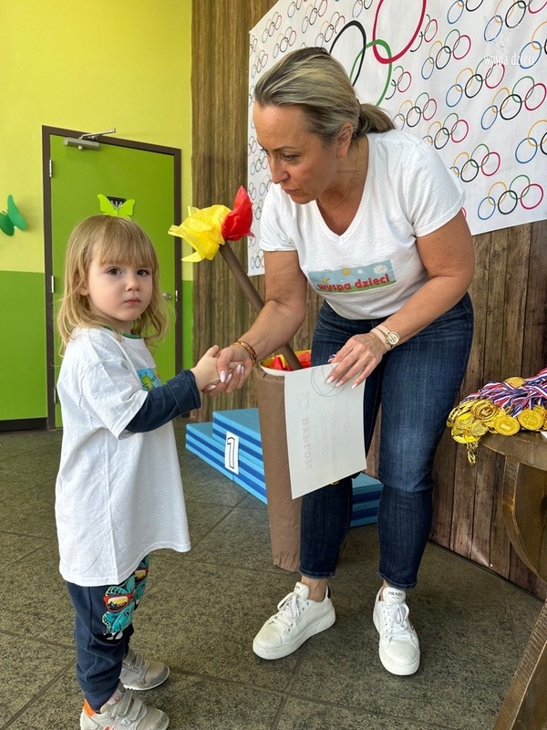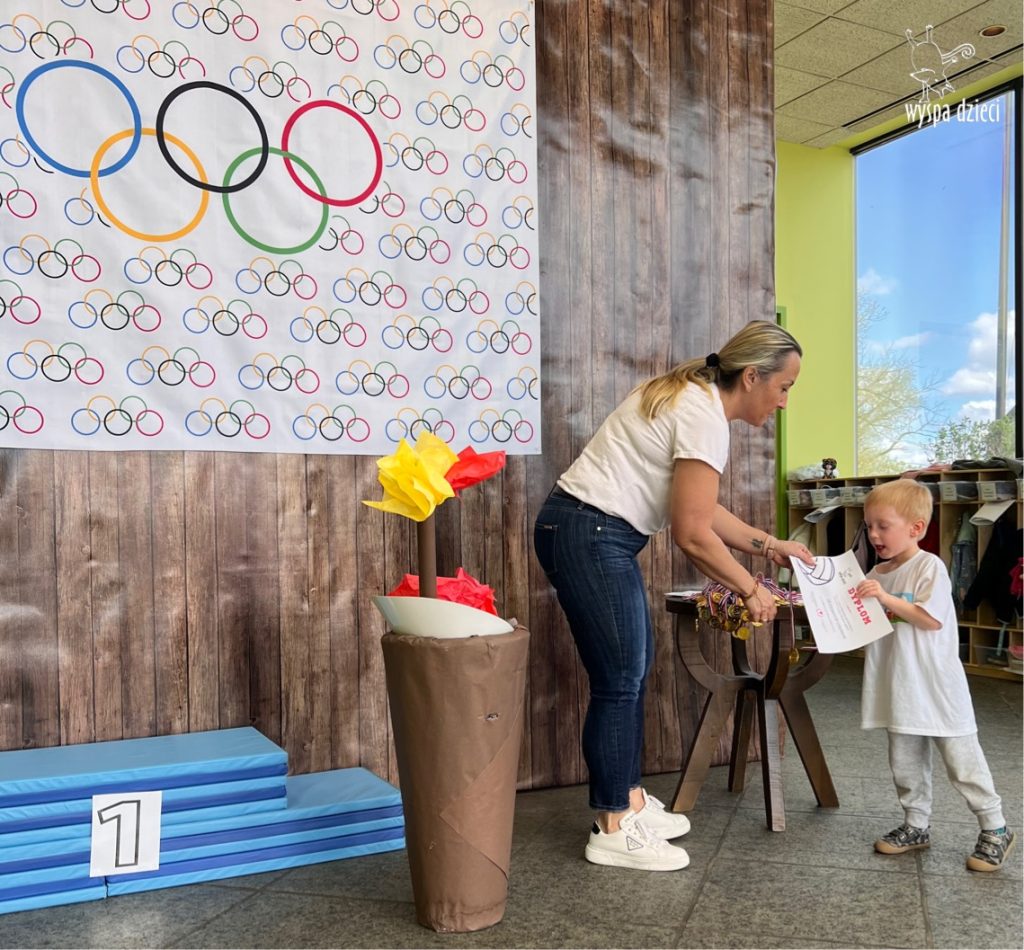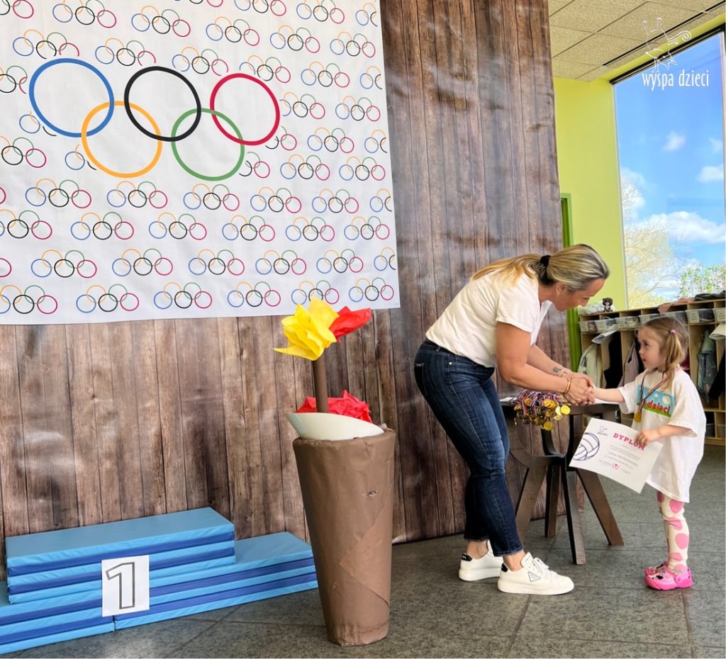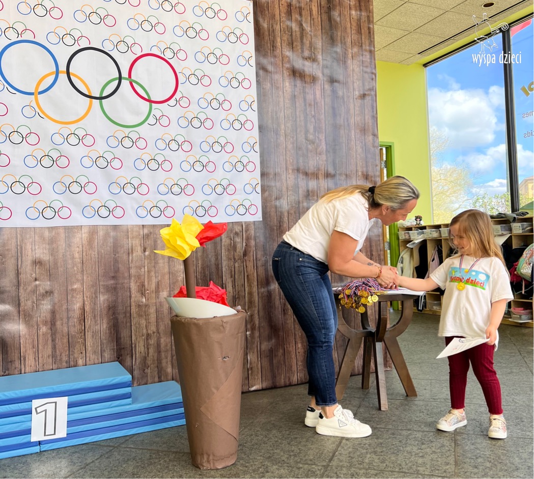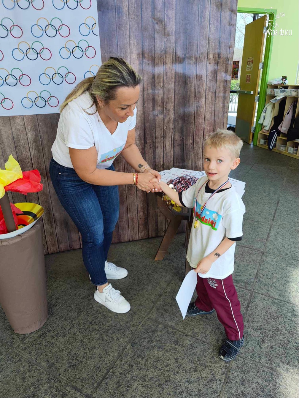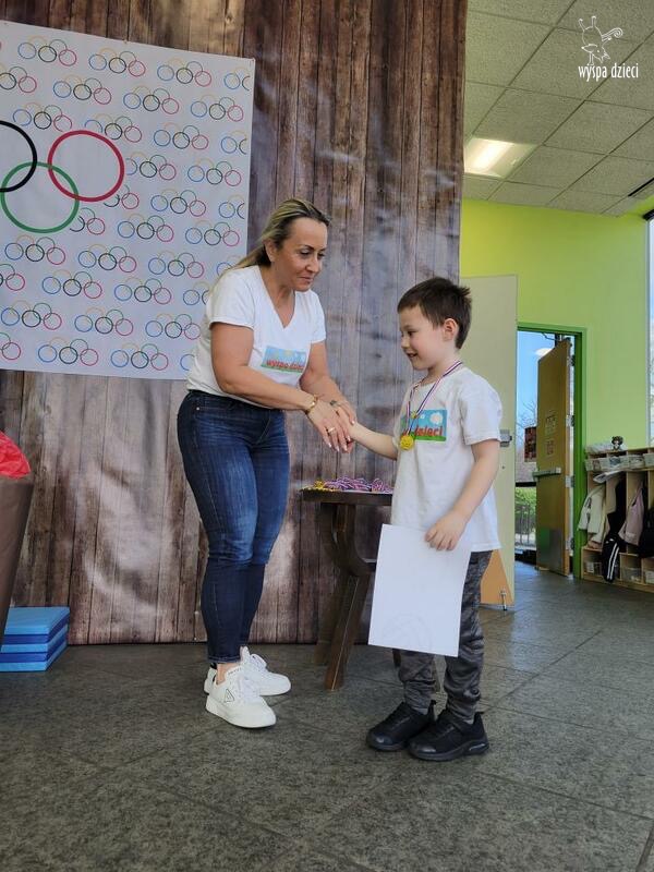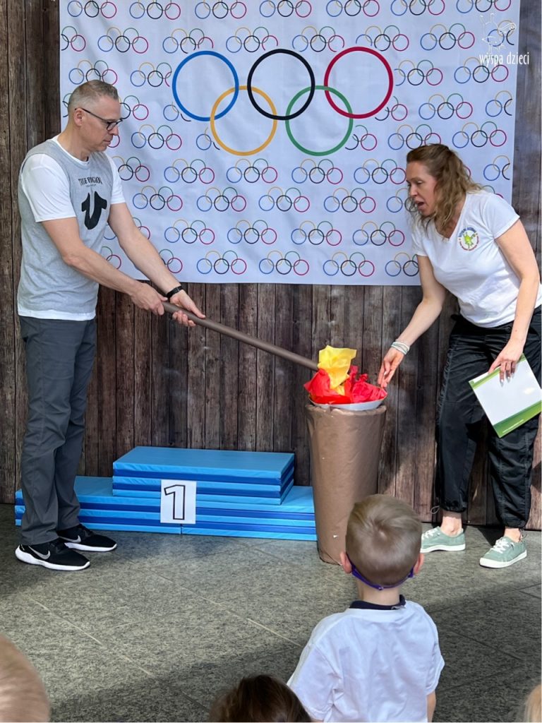 12 kwietna 2024 roku wszystkie przedszkolaki wzięły udział w Trzecich Sportowych Igrzyskach Olimpijskich Wyspy Dzieci River Grove. Wszyscy spotkaliśmy się wspólnie na głównym korytarzu przedszkola. Pan Ewa opowiedziała wszystkim o Igrzyskach Olimpijskich, ich symbolach i o współzawodnictwie „fair play” . Nastepnie Pan Piotr wbiegł z ogniem olimpijskim od którego zapalono nasz znicz olimpijski. Znakiem do rozpoczęcia igrzysk było wysłuchanie przez przedszkolaków Hymnu Olimpijskiego. Wszyscy zostali podzieleni na dwie grupy. Pierwsza grupa to : Misie, Krasnale, Smerfy, oraz Bystrzaki, których konkurencje sportowe rozgrywane były na pierwszym piętrze . Natomiast na drugim piętrze była druga grupa – czyli Poszukiwacze, Wynalazcy oraz Odkrywcy. Wszyscy chętnie wykonywali ćwiczenia przygotowane przez wszystkich nauczycieli. Był maraton, przysiady, pompki, wyskoki w gore,  pilka nozna, rzut do celu, sztafeta, tunel,  i wiele … wiele innych….  . Zabawy i radości było co niemiara, a wszystko w duchu zdrowej i miłej atmosfery rywalizacji. Każdy mógł  spróbować swoich sił w jakiejś dyscyplinie sportowej, a wszystkie dzieci dopingowały sobie nawzajem. Na zakończenie Igrzysk Olimpijskich wszystkim dzieciom zostały wręczone dyplomy oraz medale olimpijskie ! Ten dzień napewno pozostanie w naszej pamięci !  Zapraszamy do galerii zdjęć: