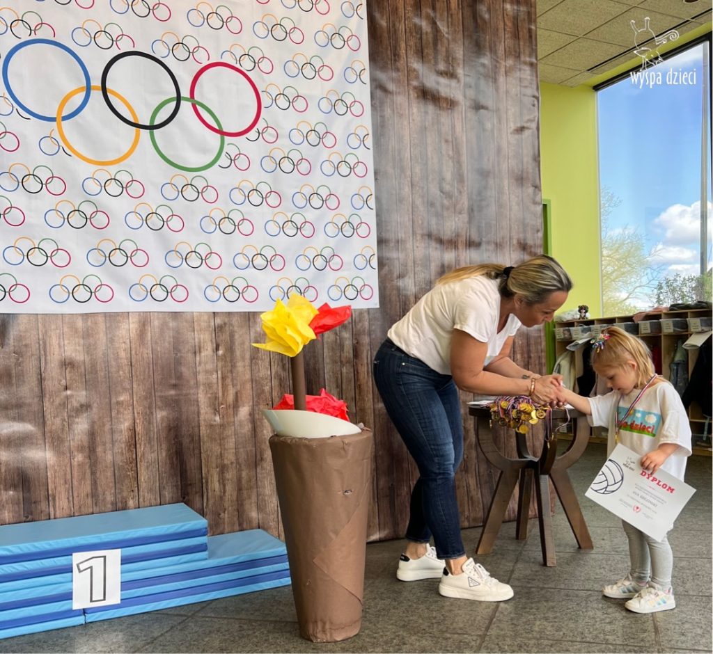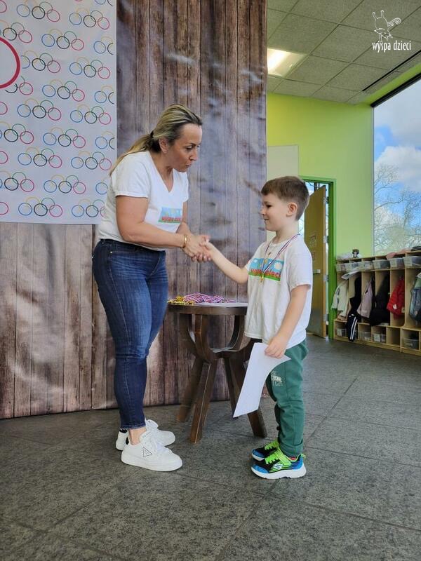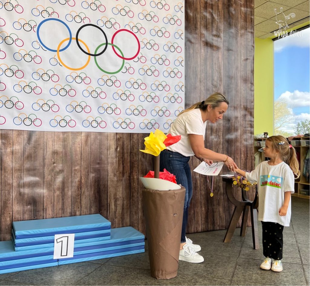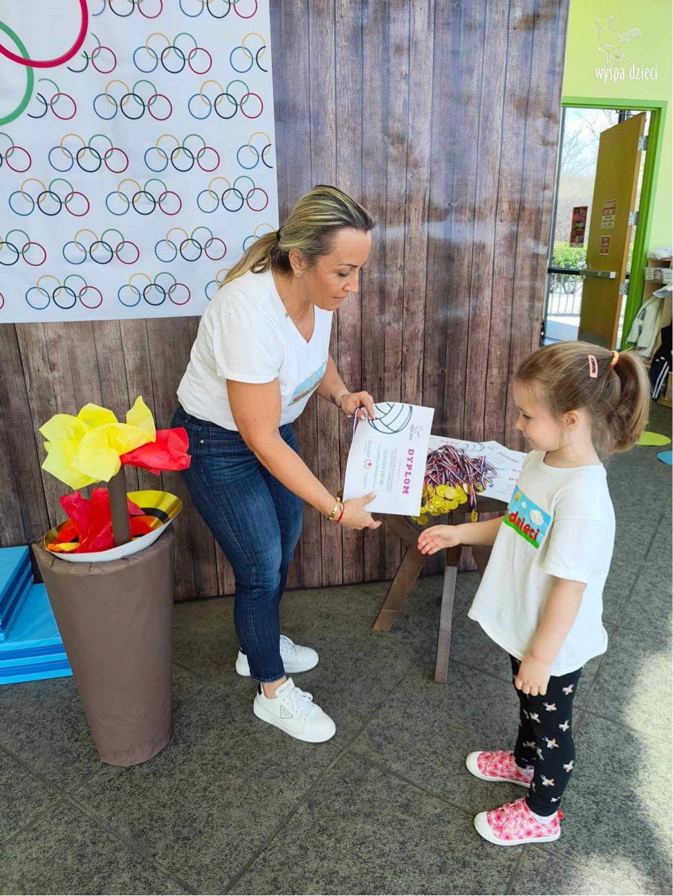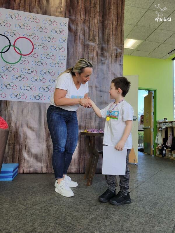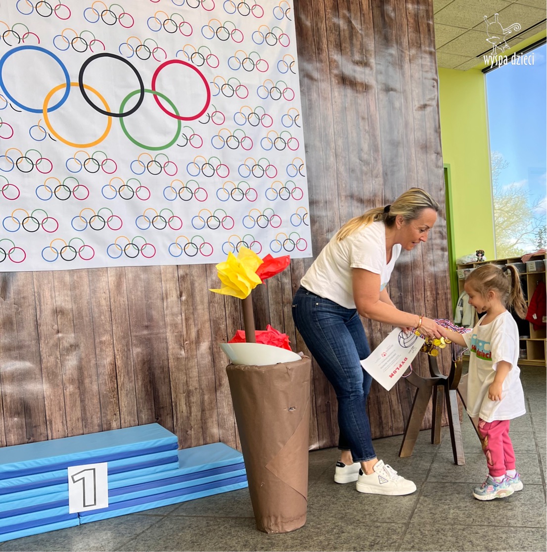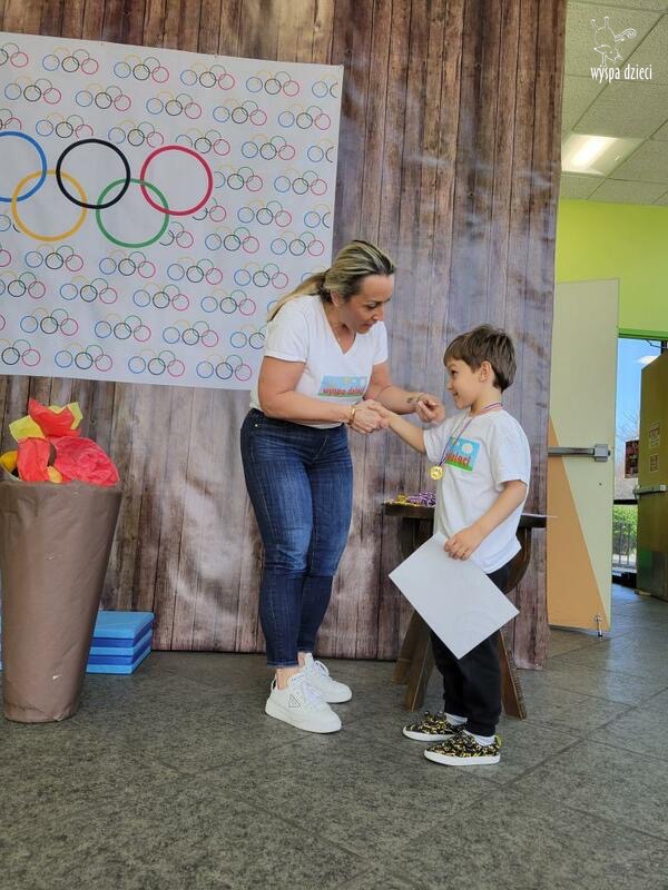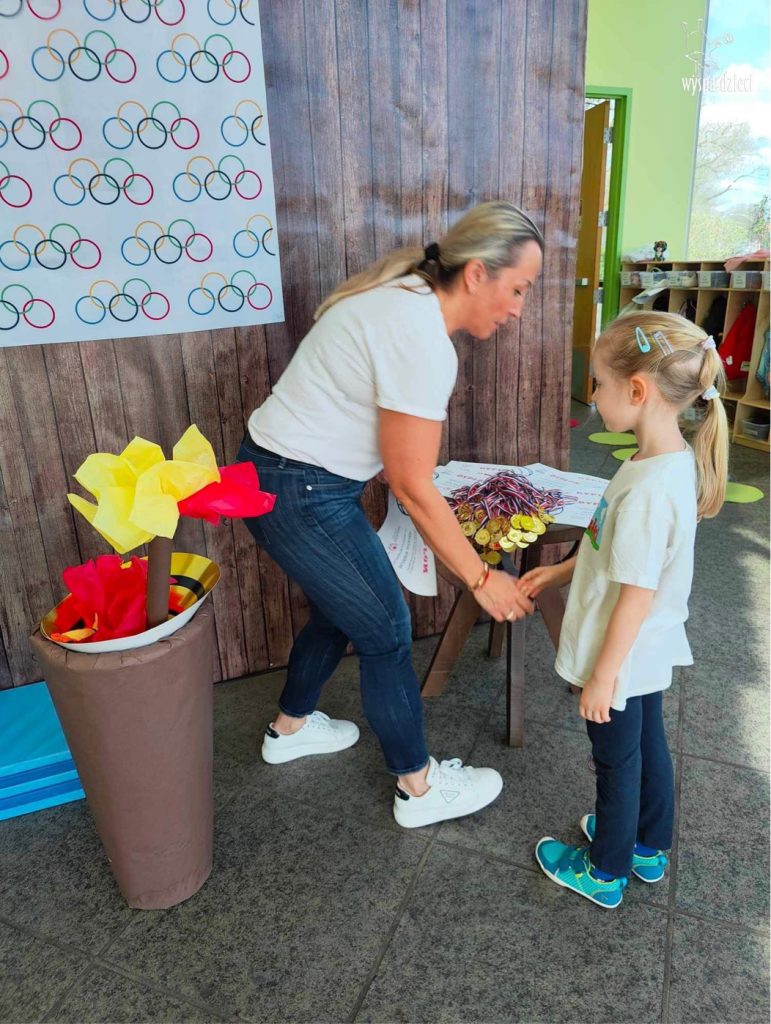 12 kwietna 2024 roku wszystkie przedszkolaki wzięły udział w Trzecich Sportowych Igrzyskach Olimpijskich Wyspy Dzieci River Grove. Wszyscy spotkaliśmy się wspólnie na głównym korytarzu przedszkola. Pan Ewa opowiedziała wszystkim o Igrzyskach Olimpijskich, ich symbolach i o współzawodnictwie „fair play” . Nastepnie Pan Piotr wbiegł z ogniem olimpijskim od którego zapalono nasz znicz olimpijski. Znakiem do rozpoczęcia igrzysk było wysłuchanie przez przedszkolaków Hymnu Olimpijskiego. Wszyscy zostali podzieleni na dwie grupy. Pierwsza grupa to : Misie, Krasnale, Smerfy, oraz Bystrzaki, których konkurencje sportowe rozgrywane były na pierwszym piętrze . Natomiast na drugim piętrze była druga grupa – czyli Poszukiwacze, Wynalazcy oraz Odkrywcy. Wszyscy chętnie wykonywali ćwiczenia przygotowane przez wszystkich nauczycieli. Był maraton, przysiady, pompki, wyskoki w gore,  pilka nozna, rzut do celu, sztafeta, tunel,  i wiele … wiele innych….  . Zabawy i radości było co niemiara, a wszystko w duchu zdrowej i miłej atmosfery rywalizacji. Każdy mógł  spróbować swoich sił w jakiejś dyscyplinie sportowej, a wszystkie dzieci dopingowały sobie nawzajem. Na zakończenie Igrzysk Olimpijskich wszystkim dzieciom zostały wręczone dyplomy oraz medale olimpijskie ! Ten dzień napewno pozostanie w naszej pamięci !  Zapraszamy do galerii zdjęć: