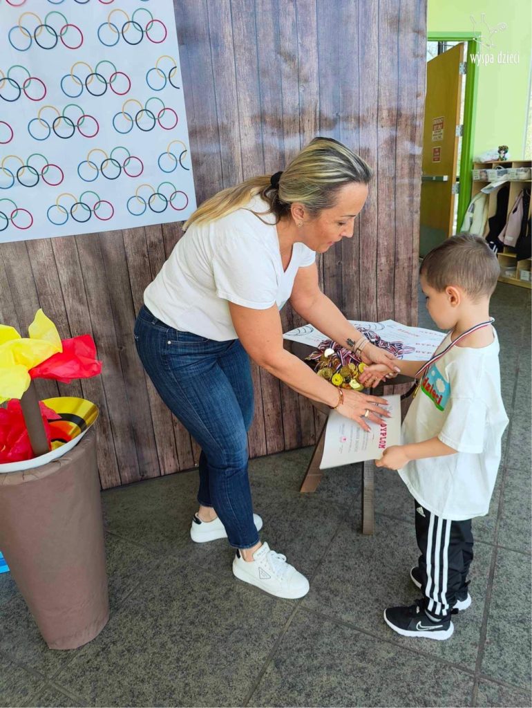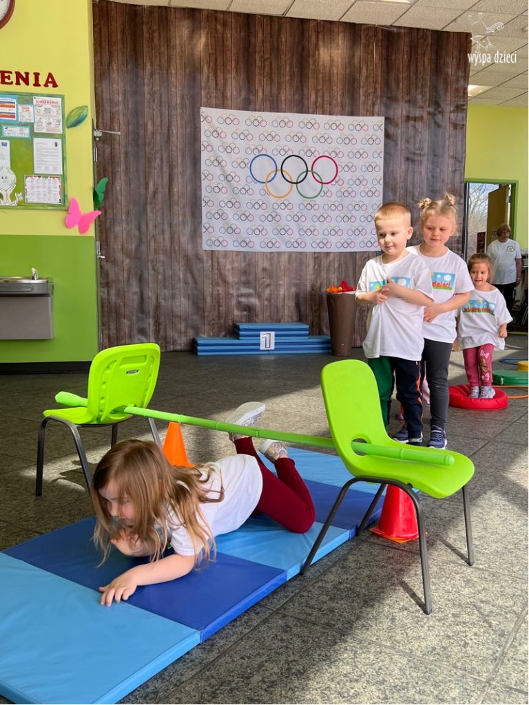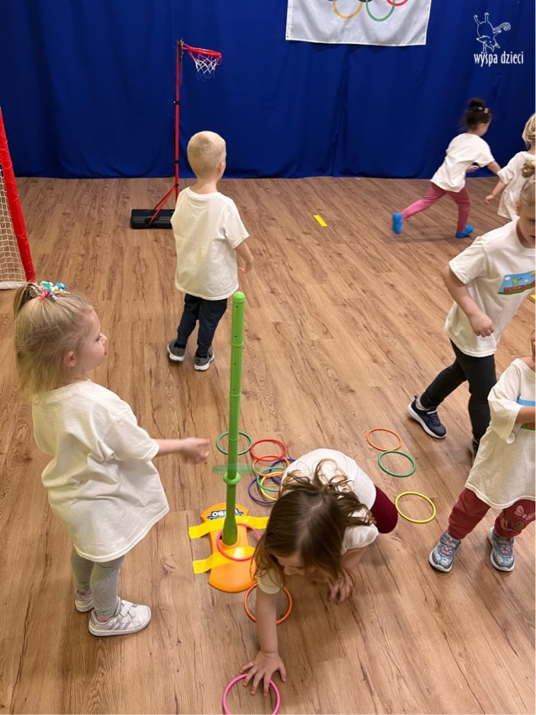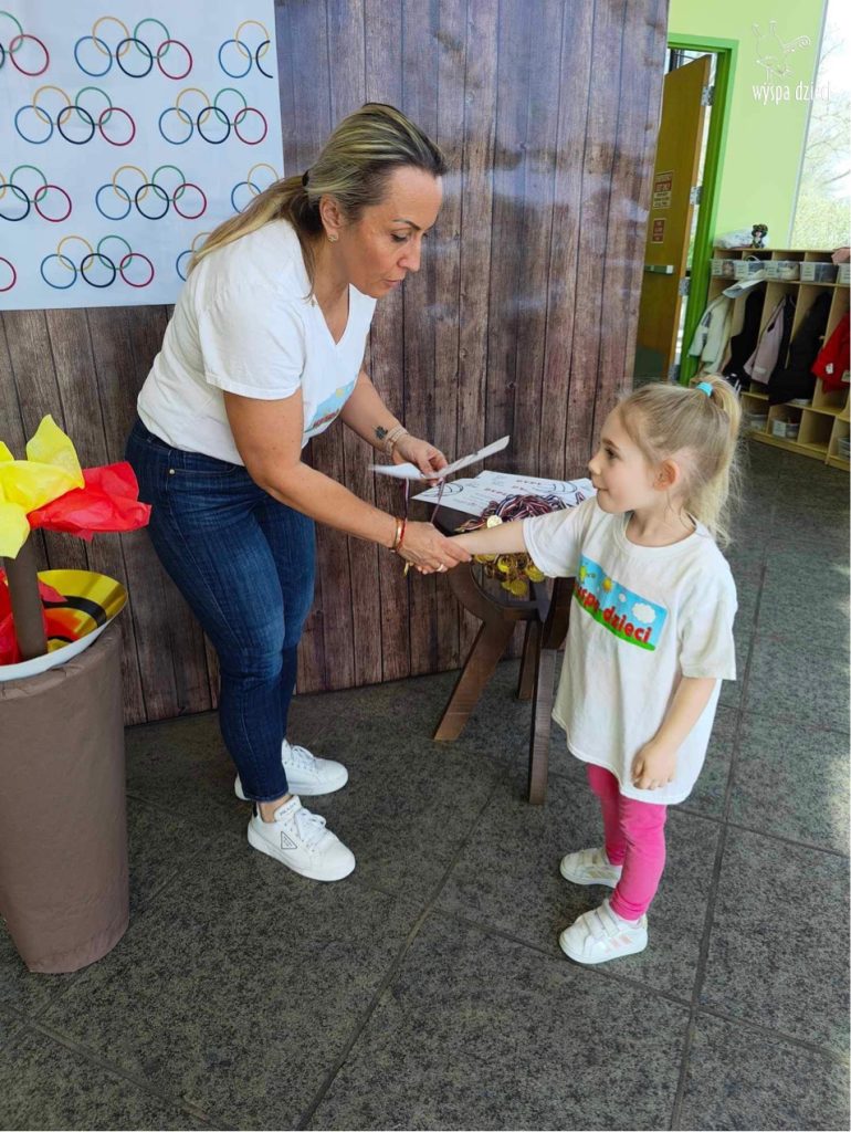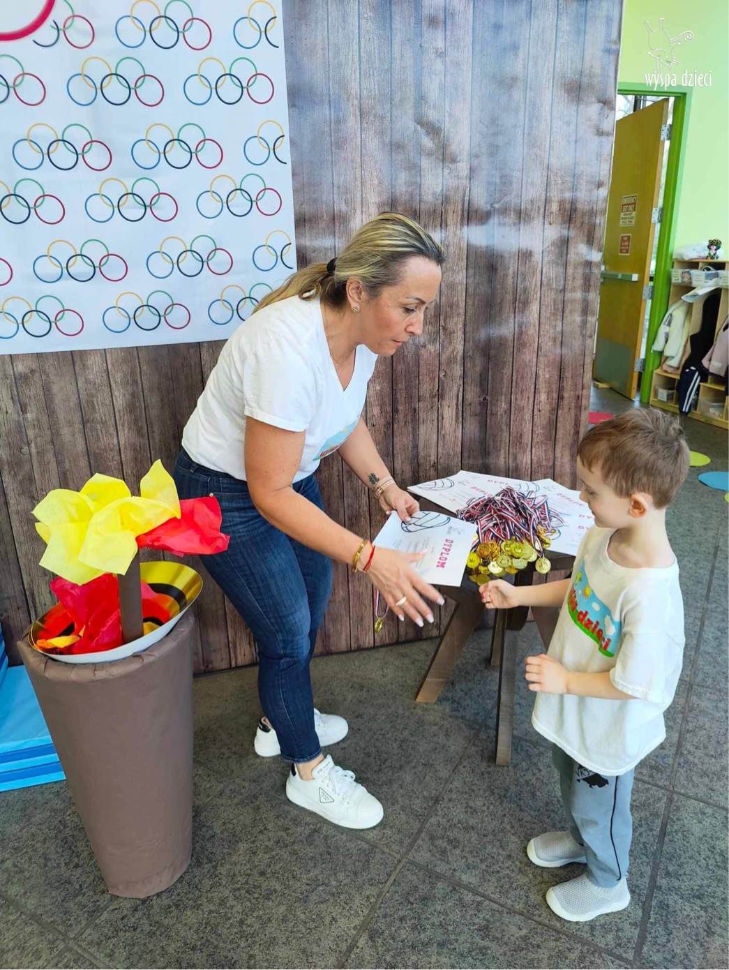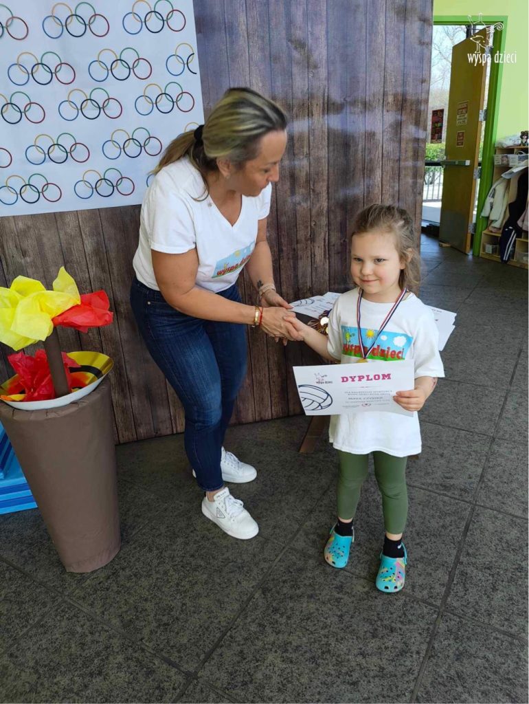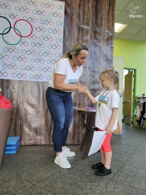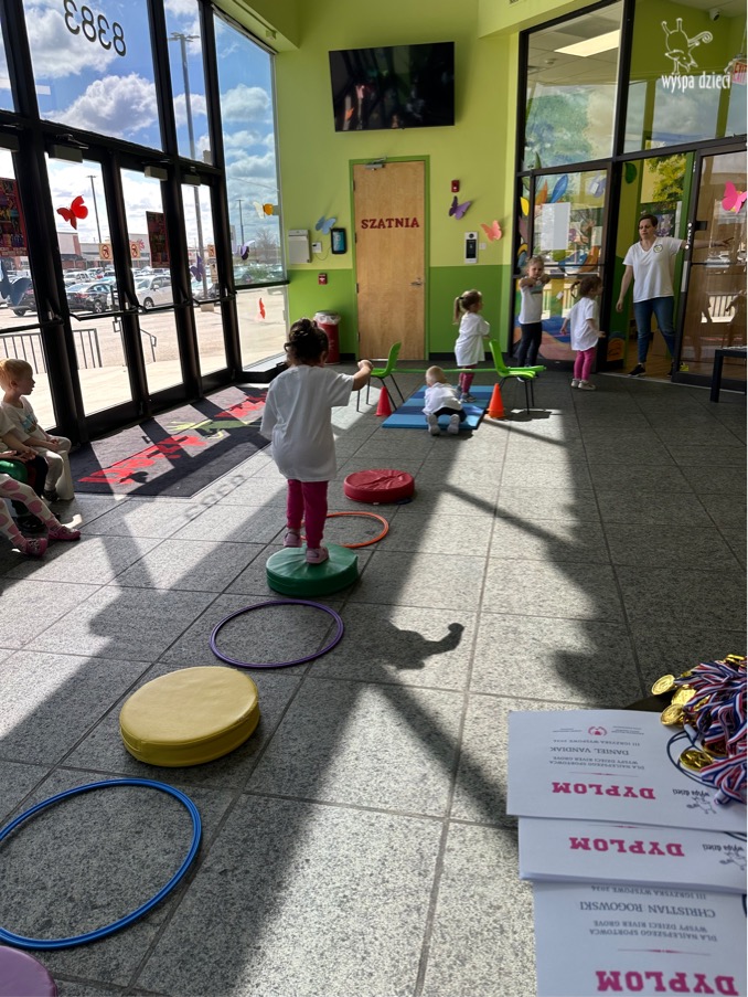 12 kwietna 2024 roku wszystkie przedszkolaki wzięły udział w Trzecich Sportowych Igrzyskach Olimpijskich Wyspy Dzieci River Grove. Wszyscy spotkaliśmy się wspólnie na głównym korytarzu przedszkola. Pan Ewa opowiedziała wszystkim o Igrzyskach Olimpijskich, ich symbolach i o współzawodnictwie „fair play” . Nastepnie Pan Piotr wbiegł z ogniem olimpijskim od którego zapalono nasz znicz olimpijski. Znakiem do rozpoczęcia igrzysk było wysłuchanie przez przedszkolaków Hymnu Olimpijskiego. Wszyscy zostali podzieleni na dwie grupy. Pierwsza grupa to : Misie, Krasnale, Smerfy, oraz Bystrzaki, których konkurencje sportowe rozgrywane były na pierwszym piętrze . Natomiast na drugim piętrze była druga grupa – czyli Poszukiwacze, Wynalazcy oraz Odkrywcy. Wszyscy chętnie wykonywali ćwiczenia przygotowane przez wszystkich nauczycieli. Był maraton, przysiady, pompki, wyskoki w gore,  pilka nozna, rzut do celu, sztafeta, tunel,  i wiele … wiele innych….  . Zabawy i radości było co niemiara, a wszystko w duchu zdrowej i miłej atmosfery rywalizacji. Każdy mógł  spróbować swoich sił w jakiejś dyscyplinie sportowej, a wszystkie dzieci dopingowały sobie nawzajem. Na zakończenie Igrzysk Olimpijskich wszystkim dzieciom zostały wręczone dyplomy oraz medale olimpijskie ! Ten dzień napewno pozostanie w naszej pamięci !  Zapraszamy do galerii zdjęć:
