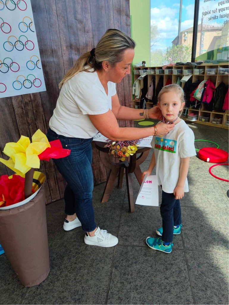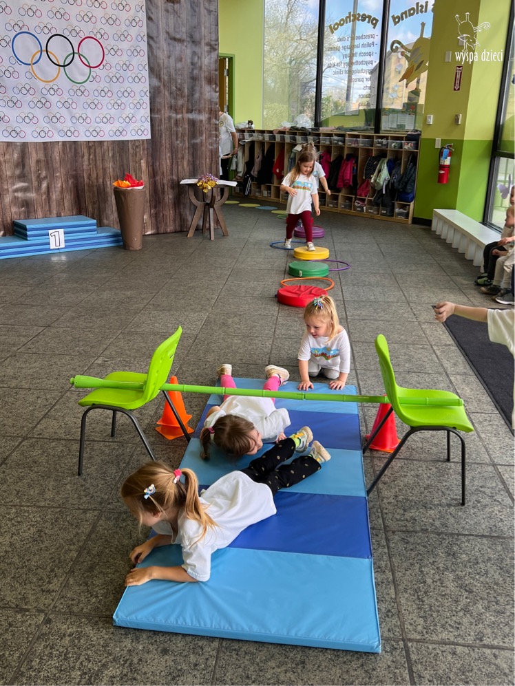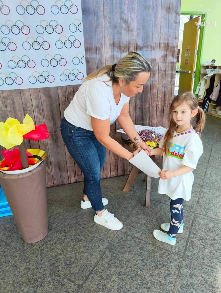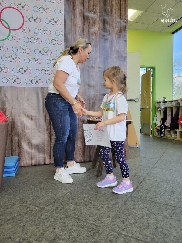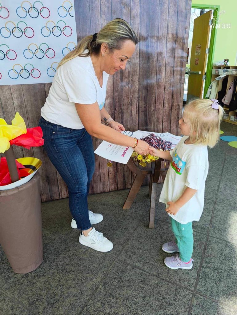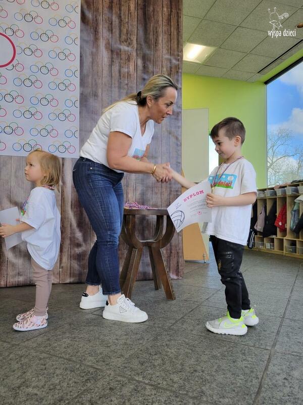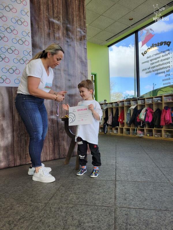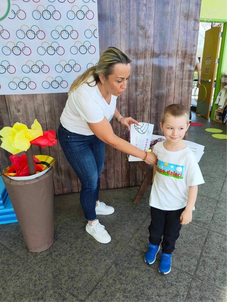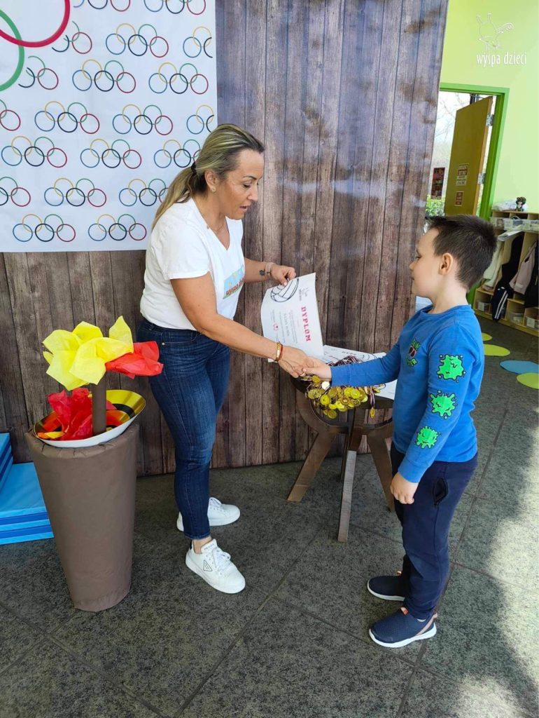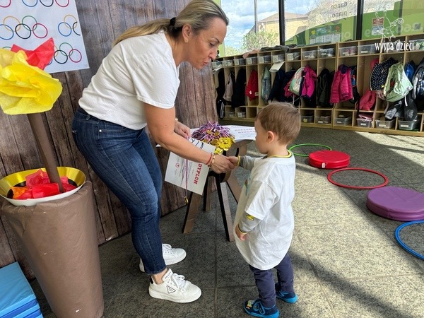12 kwietna 2024 roku wszystkie przedszkolaki wzięły udział w Trzecich Sportowych Igrzyskach Olimpijskich Wyspy Dzieci River Grove. Wszyscy spotkaliśmy się wspólnie na głównym korytarzu przedszkola. Pan Ewa opowiedziała wszystkim o Igrzyskach Olimpijskich, ich symbolach i o współzawodnictwie „fair play” . Nastepnie Pan Piotr wbiegł z ogniem olimpijskim od którego zapalono nasz znicz olimpijski. Znakiem do rozpoczęcia igrzysk było wysłuchanie przez przedszkolaków Hymnu Olimpijskiego. Wszyscy zostali podzieleni na dwie grupy. Pierwsza grupa to : Misie, Krasnale, Smerfy, oraz Bystrzaki, których konkurencje sportowe rozgrywane były na pierwszym piętrze . Natomiast na drugim piętrze była druga grupa – czyli Poszukiwacze, Wynalazcy oraz Odkrywcy. Wszyscy chętnie wykonywali ćwiczenia przygotowane przez wszystkich nauczycieli. Był maraton, przysiady, pompki, wyskoki w gore,  pilka nozna, rzut do celu, sztafeta, tunel,  i wiele … wiele innych….  . Zabawy i radości było co niemiara, a wszystko w duchu zdrowej i miłej atmosfery rywalizacji. Każdy mógł  spróbować swoich sił w jakiejś dyscyplinie sportowej, a wszystkie dzieci dopingowały sobie nawzajem. Na zakończenie Igrzysk Olimpijskich wszystkim dzieciom zostały wręczone dyplomy oraz medale olimpijskie ! Ten dzień napewno pozostanie w naszej pamięci !  Zapraszamy do galerii zdjęć: