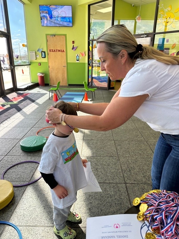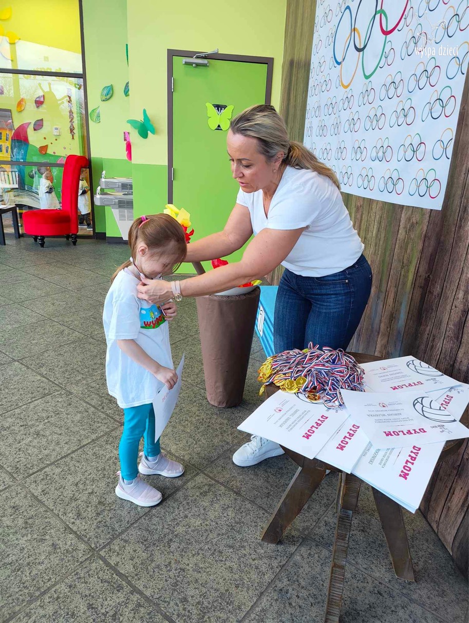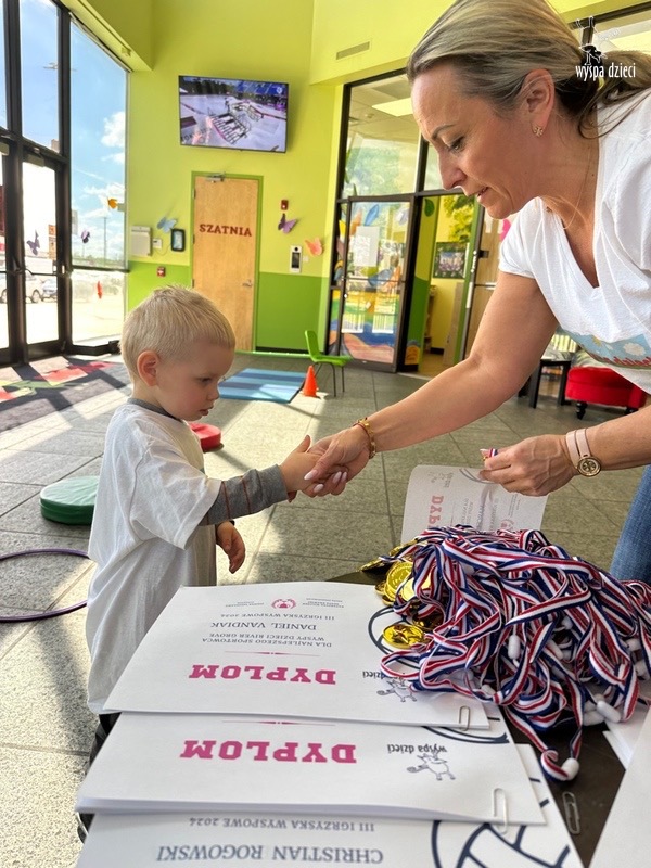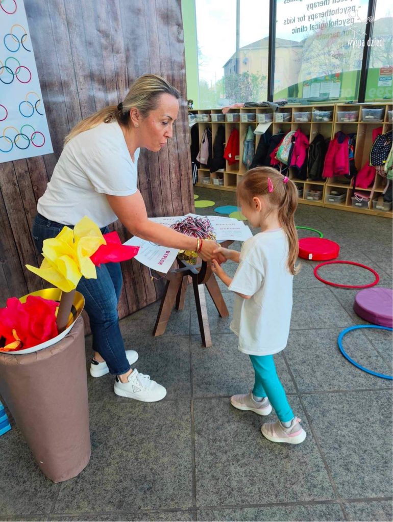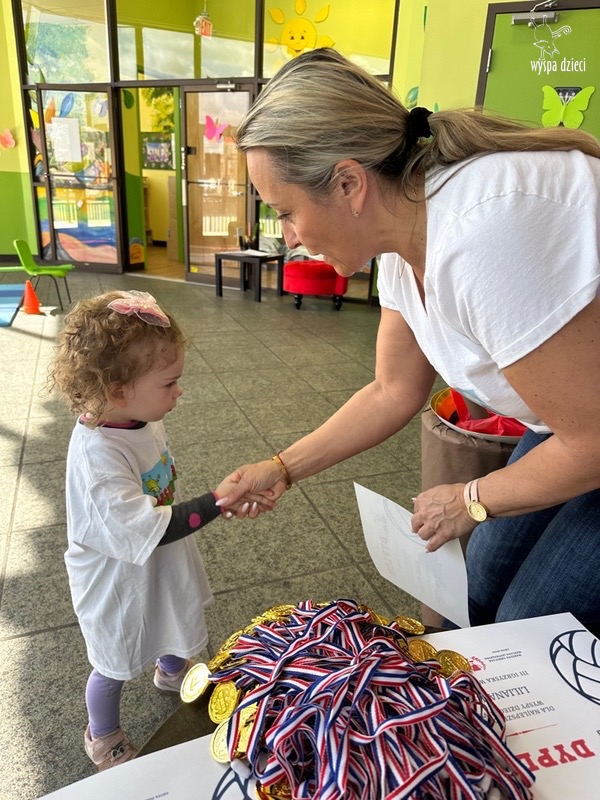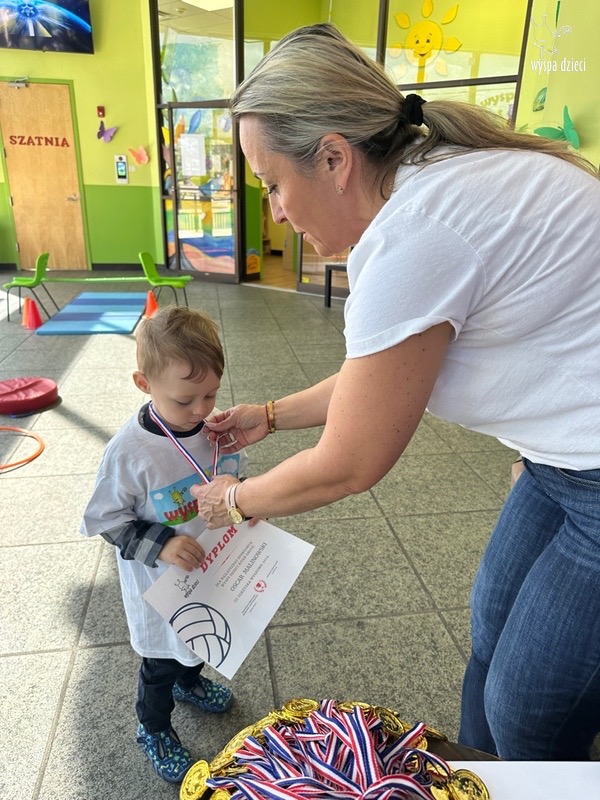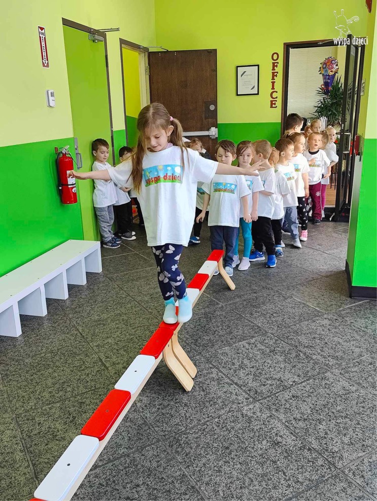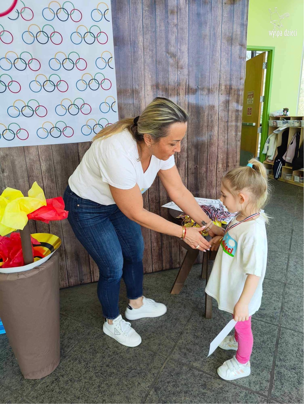 12 kwietna 2024 roku wszystkie przedszkolaki wzięły udział w Trzecich Sportowych Igrzyskach Olimpijskich Wyspy Dzieci River Grove. Wszyscy spotkaliśmy się wspólnie na głównym korytarzu przedszkola. Pan Ewa opowiedziała wszystkim o Igrzyskach Olimpijskich, ich symbolach i o współzawodnictwie „fair play” . Nastepnie Pan Piotr wbiegł z ogniem olimpijskim od którego zapalono nasz znicz olimpijski. Znakiem do rozpoczęcia igrzysk było wysłuchanie przez przedszkolaków Hymnu Olimpijskiego. Wszyscy zostali podzieleni na dwie grupy. Pierwsza grupa to : Misie, Krasnale, Smerfy, oraz Bystrzaki, których konkurencje sportowe rozgrywane były na pierwszym piętrze . Natomiast na drugim piętrze była druga grupa – czyli Poszukiwacze, Wynalazcy oraz Odkrywcy. Wszyscy chętnie wykonywali ćwiczenia przygotowane przez wszystkich nauczycieli. Był maraton, przysiady, pompki, wyskoki w gore,  pilka nozna, rzut do celu, sztafeta, tunel,  i wiele … wiele innych….  . Zabawy i radości było co niemiara, a wszystko w duchu zdrowej i miłej atmosfery rywalizacji. Każdy mógł  spróbować swoich sił w jakiejś dyscyplinie sportowej, a wszystkie dzieci dopingowały sobie nawzajem. Na zakończenie Igrzysk Olimpijskich wszystkim dzieciom zostały wręczone dyplomy oraz medale olimpijskie ! Ten dzień napewno pozostanie w naszej pamięci !  Zapraszamy do galerii zdjęć: