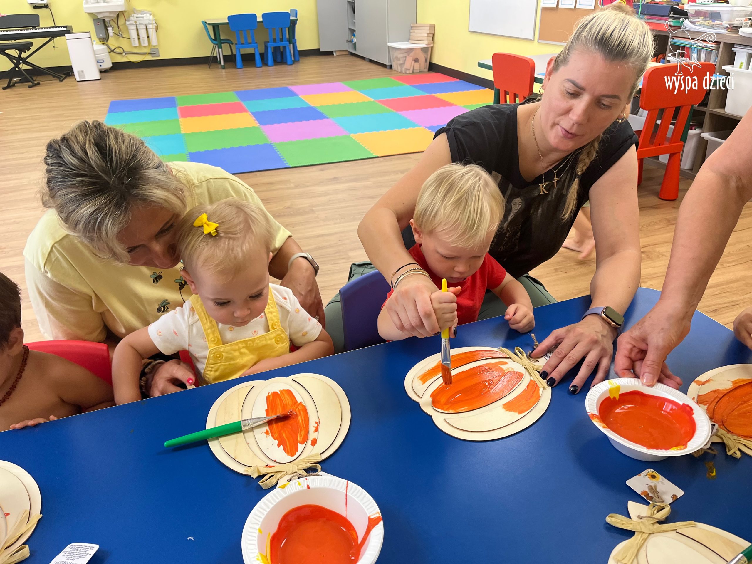Jesienne zajęcia w Krainie Zmysłów to czas na wspòlna zabawę między innymi z malowaniem.Dzieci wspòlnie z rodzicami wykonały projekty plastyczne: