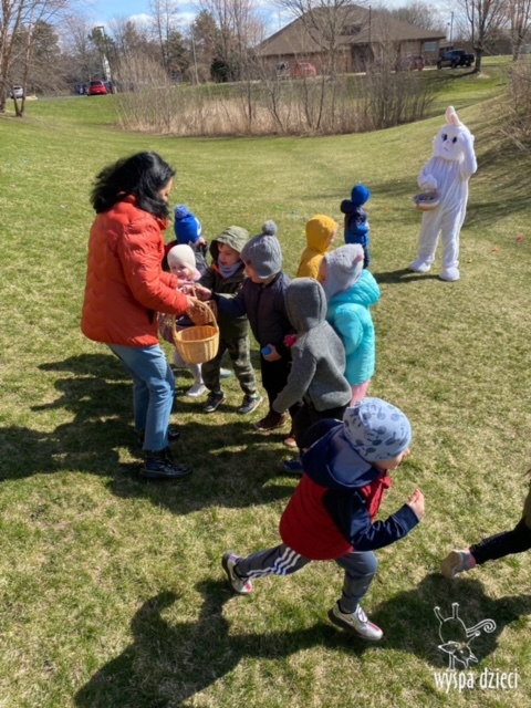 W tym tygodniu maluchy na Wyspie Dzieci przygotowywują się do niezwykle radosnych świąt – Wielkanocy! Malowanie jajek, zdobienie świątecznych koszyczków, wyklejanie puszystego baranka – takie było zajęcie naszych przedszkolaków w ostatnich dniach;) Dzieci są już gotowe do Wielkanocy, teraz pozostaje tylko czekać na…. – na niezwykłego gościa – wielkanocnego zajączka! Kic, kic … przykicał także na Wyspę Dzieci w Algonquin. Zajączek jest jedną z najmilszych tradycji wielkanocnych. I w tym roku wywołał na twarzach maluchów wiele uśmiechu;) Ten wielkanocny, biały pluszak przyniósł dla przedszkolaków mnóstwo kolorowych jajek. Zadanie nie było jednak takie łatwe, ponieważ maluchy musiały odnaleźć jajeczka, które schował zajączek. Nasze dzieci nie miały jednak z tym najmniejszego problemu… a nagroda była słodka, ponieważ w jajkach znalazły pyszne cukiereczki… mniam, mniam.. dziękujemy zajączku!