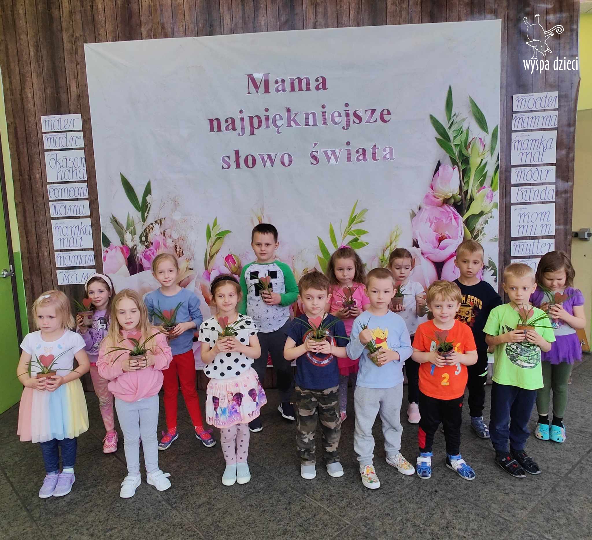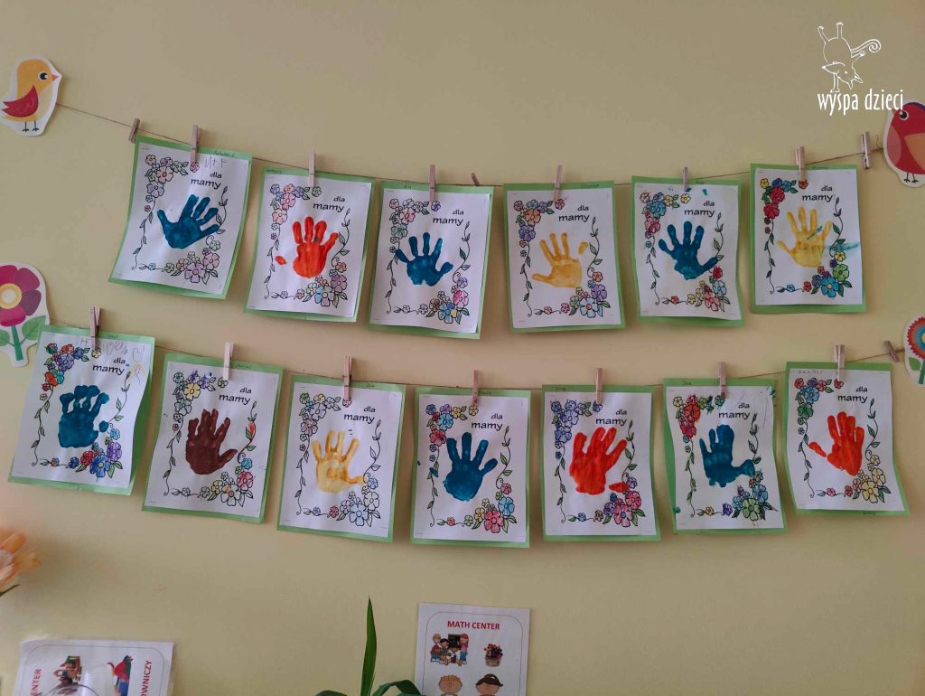 Grupa Bystrzaków przez cały tydzień przygotowywała się aby uczcić ważne dla wszystich święto – Dzień Mamy. Dzieci uczyły się piosenki na Dzień Mamy “Jesteś mamo skarbem mym”jak również zamieniły się w ogrodników, sadząc roślinki w doniczkach, aby dać je swoim mamom. Bystrzaki codziennie tworzyły piękne prace związane z Dniem mamy, miedzy innymi kartki, laurki, rysowały portrety swoich mam, odciskały rączki na pamiątkę i malowały napis KOCHAM CIĘ MAMO. Zdjęcia wszystkich mam i ich wizerunki były omawiane codziennie. Dzieci opowiadały co robią ich mamy oraz w jaki sposób przekazuja swoją miłość.