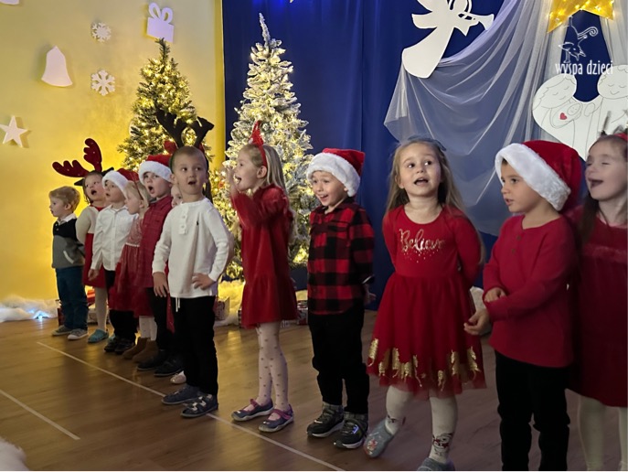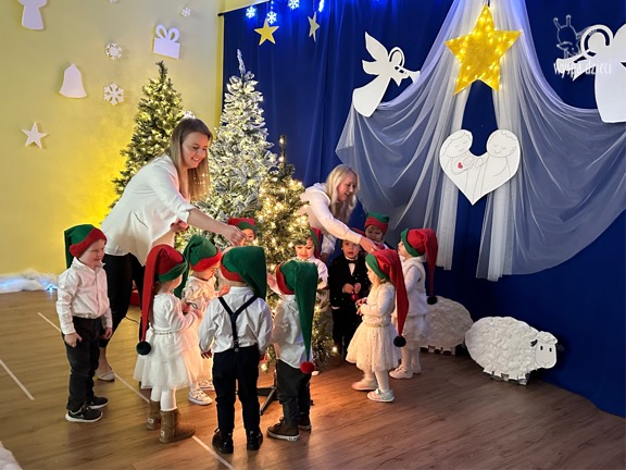 W naszym przedszkolu to również wyjątkowy okres. 15 grudnia 2023 roku w Wyspie Dzieci River Grove, w pięknej bożonarodzeniowej scenerii przygotowanej przez naszych nauczycieli, dzieci wprowadziły nas w magiczną atmosferę Świąt Bożego Narodzenia. Każda grupa przygotowała inny program artystyczny dla swoich rodziców i zaproszonych gości. A program był bardzo różnorodny ; była historia Narodzenia Jezuska, wiele znanych piosenek, kolęd, wierszy i opowieści w języku polskim oraz angielskim oraz gra na instrumentach . Niektóre grupy na koniec podarowały rodzicom własnoręcznie zrobione prezenty świąteczne.