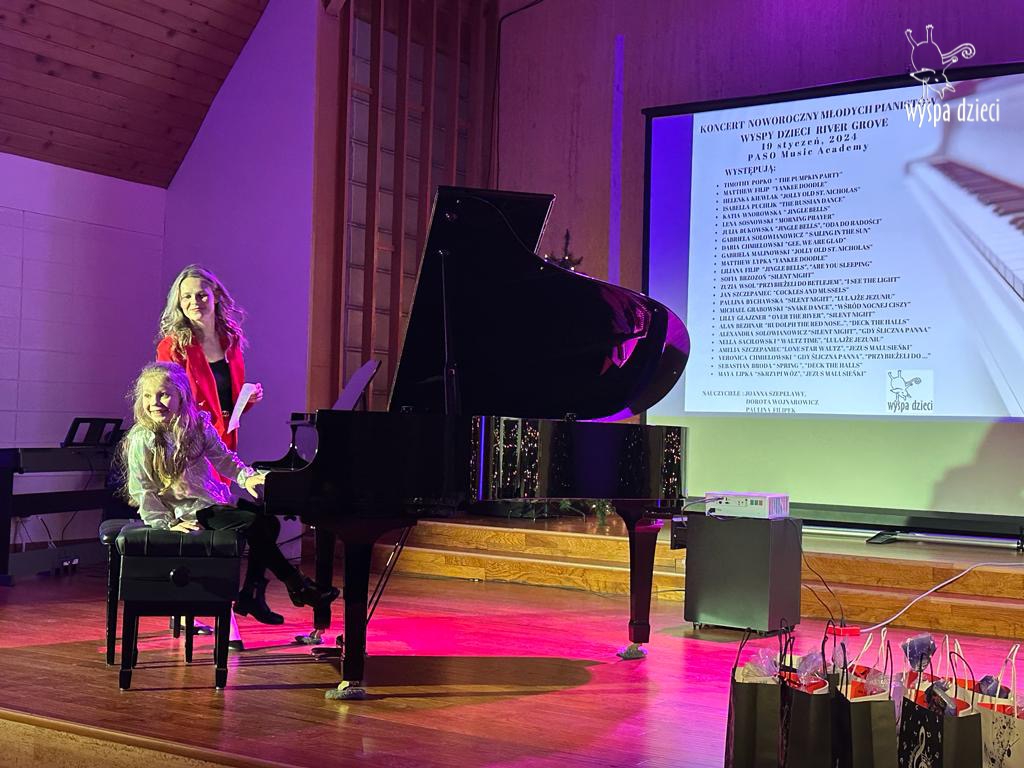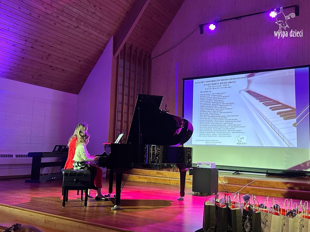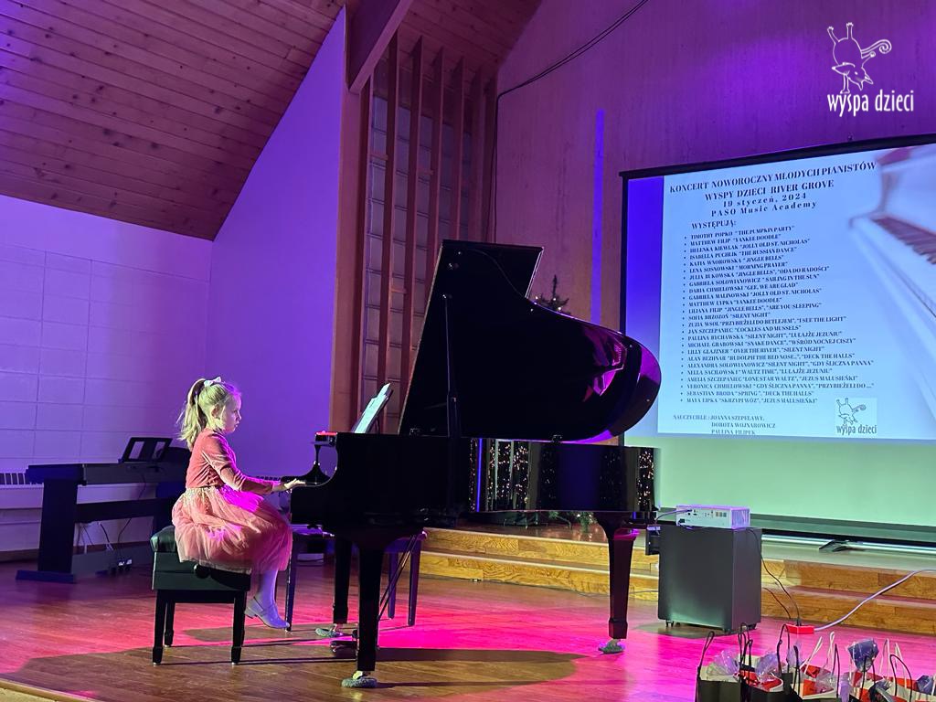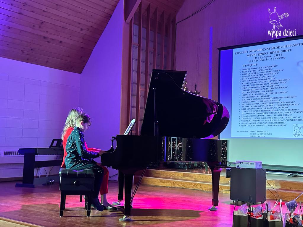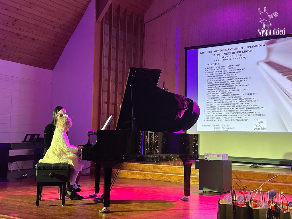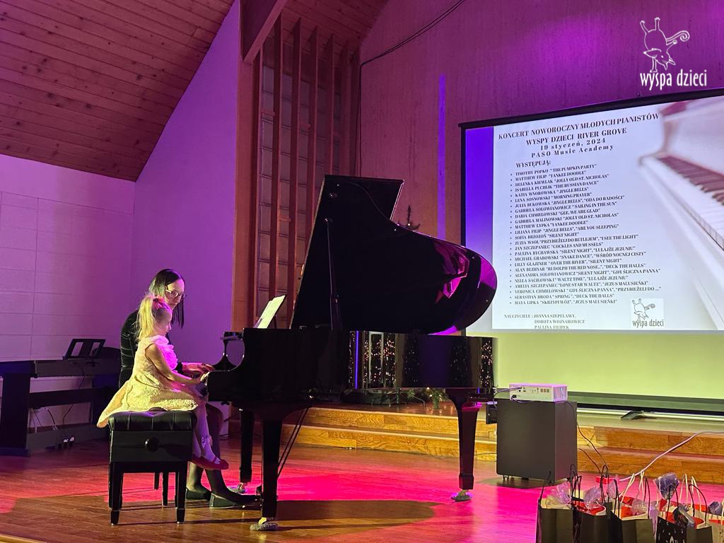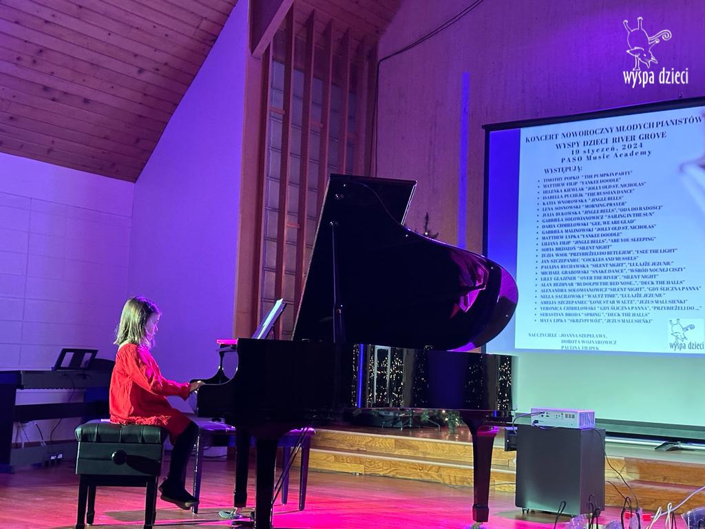 19 stycznia 2024 roku odbyl się koncert noworoczny naszych młodych pianistów Wyspy Dzieci z River Grove. Są to pianiści w wieku od 4 do 10 lat Koncert odbył się w Sali Koncertowej Szkoły Muzycznej PASO. Dzieci miały możliwość zagrania na wspaniałym instrumencie a widownia była wypełniona po brzegi. Popis naszych pianistow oglądali i słuchali również właściciele Wyspy Dzieci – Pani Monika Nawrot oraz Pan Krzysztof Szczepaniec. Dziękuje pięknie Pani Dorocie Wojnarowicz oraz Pani Paulinie Filipek za przygotowanie swoich pianistow. Dziekujemy za goscine Barbara Bilszta Niewrzol , Wojciech Niewrzol oraz za pomoc w organizacji koncertu Annie Ejsmont.