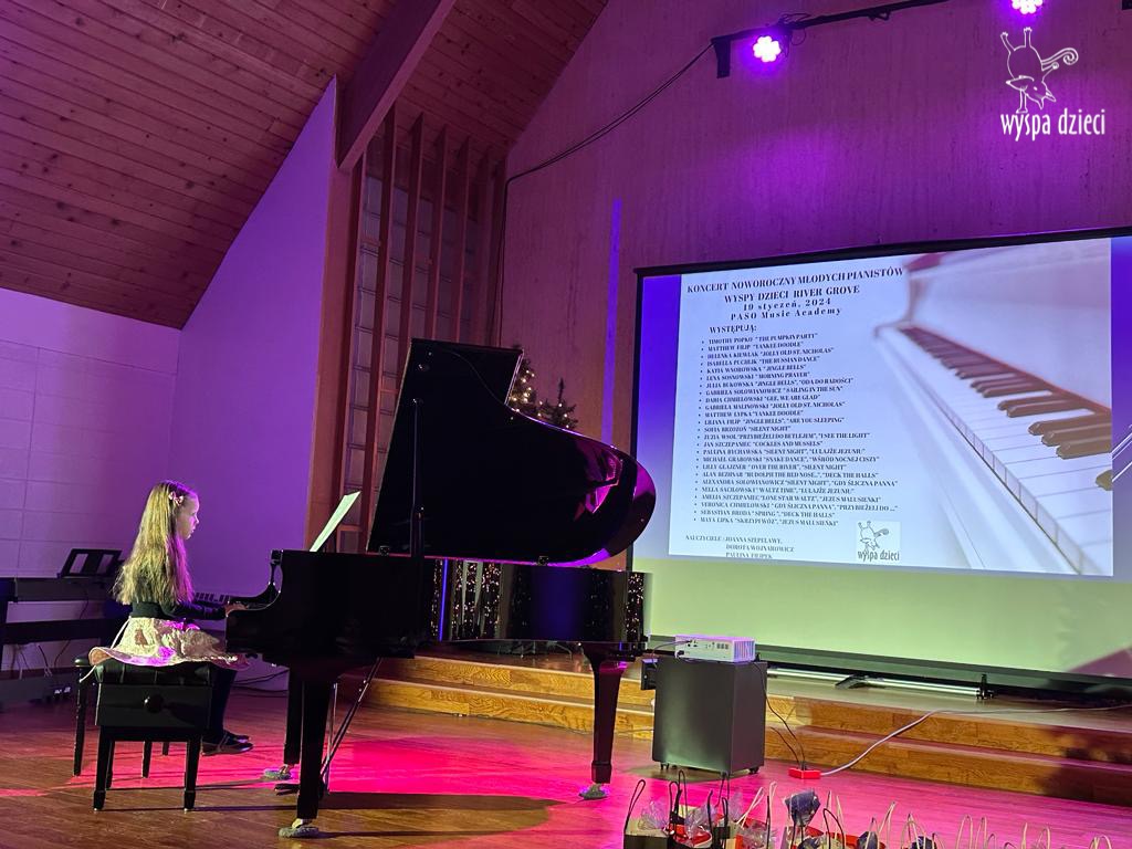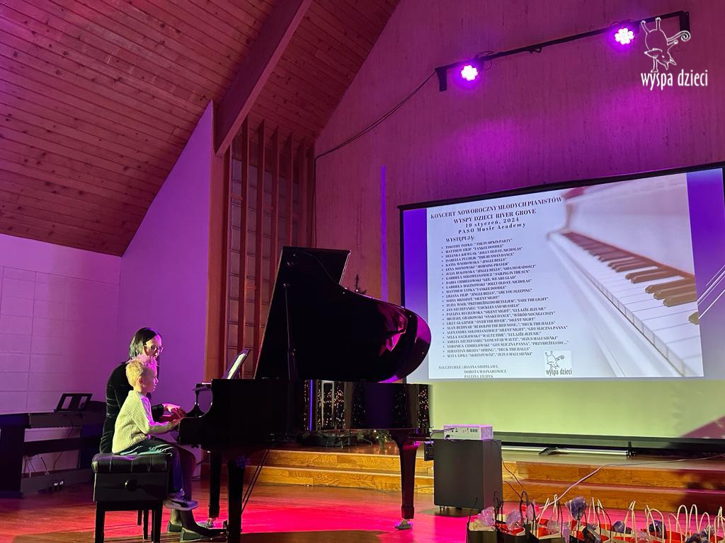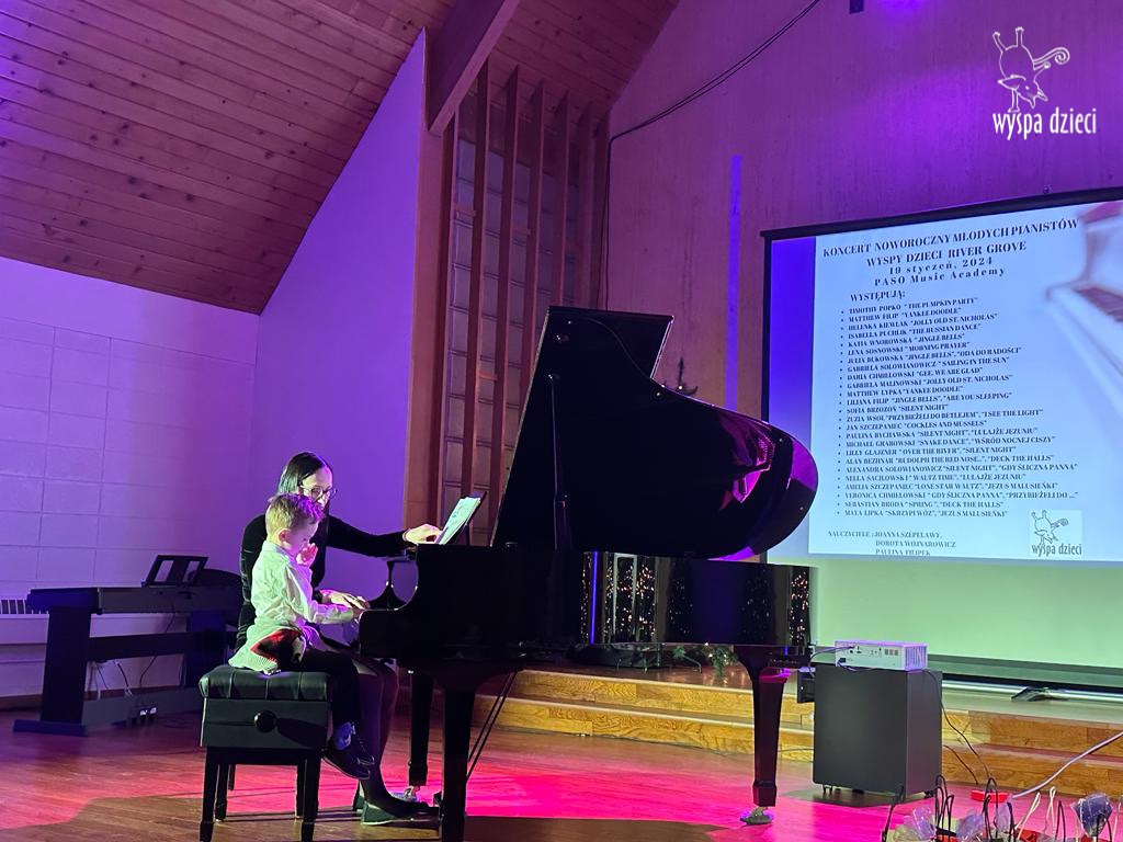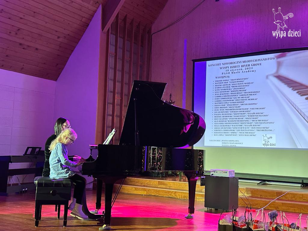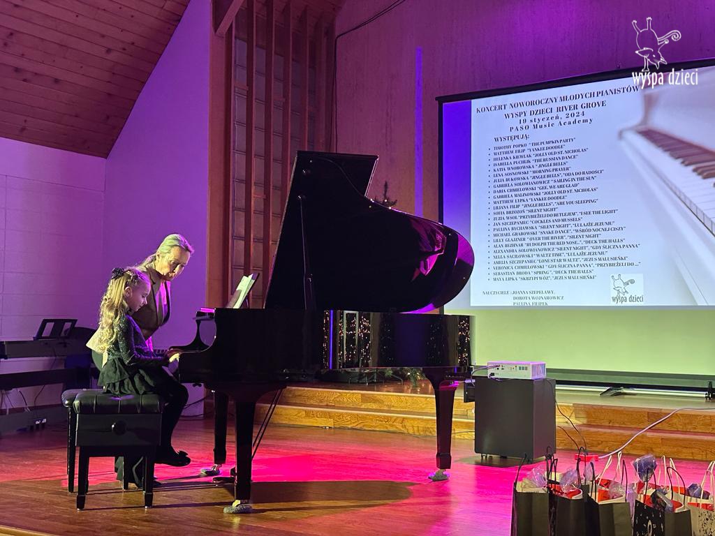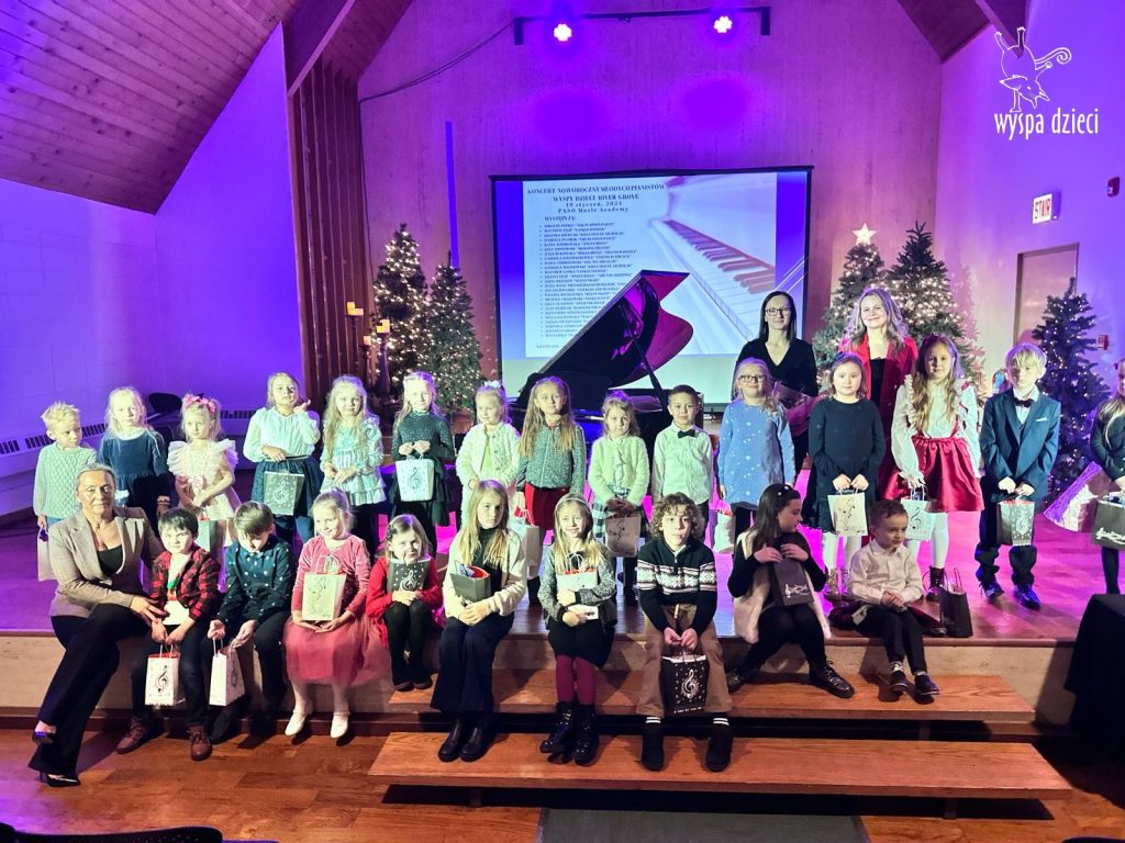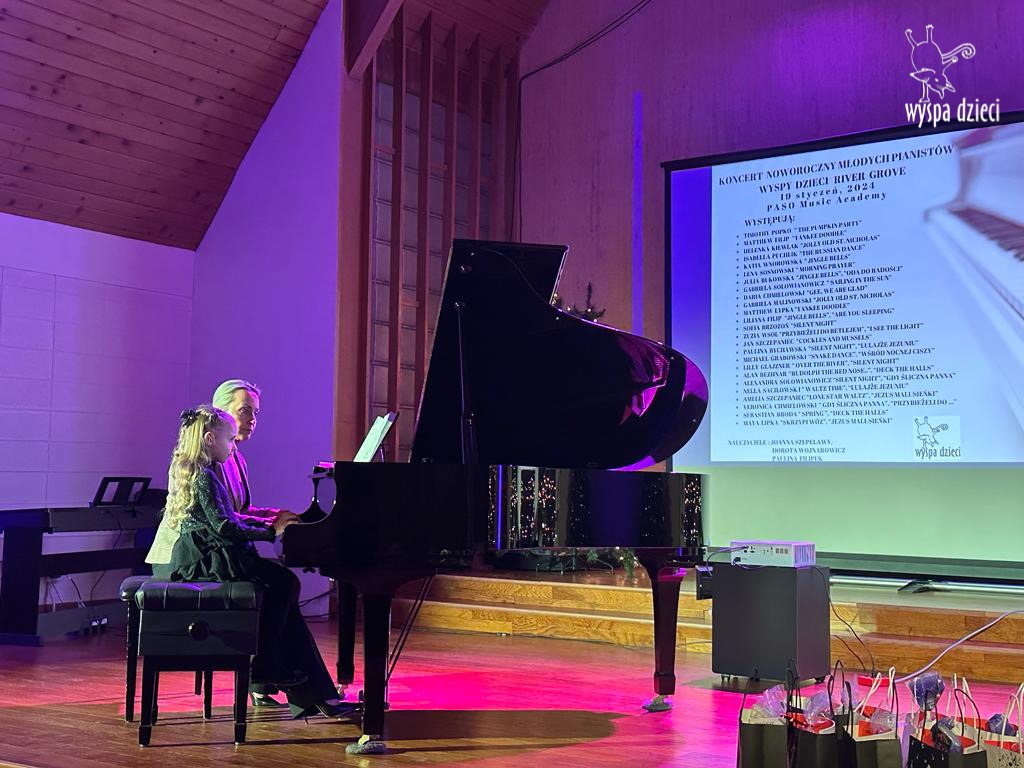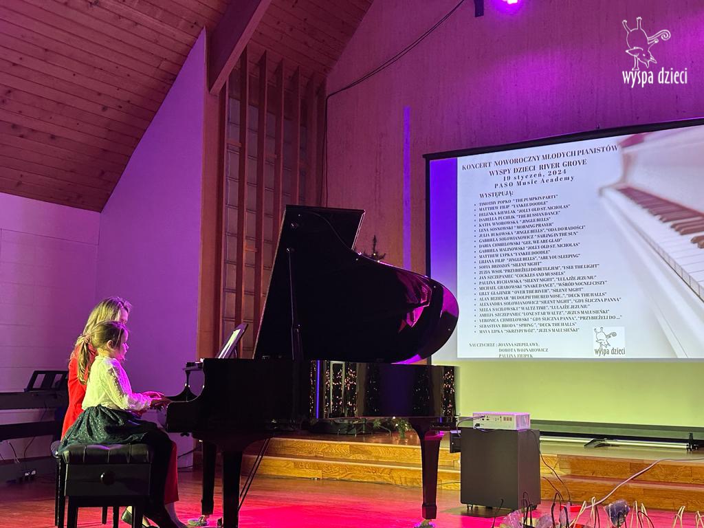 19 stycznia 2024 roku odbyl się koncert noworoczny naszych młodych pianistów Wyspy Dzieci z River Grove. Są to pianiści w wieku od 4 do 10 lat Koncert odbył się w Sali Koncertowej Szkoły Muzycznej PASO. Dzieci miały możliwość zagrania na wspaniałym instrumencie a widownia była wypełniona po brzegi. Popis naszych pianistow oglądali i słuchali również właściciele Wyspy Dzieci – Pani Monika Nawrot oraz Pan Krzysztof Szczepaniec. Dziękuje pięknie Pani Dorocie Wojnarowicz oraz Pani Paulinie Filipek za przygotowanie swoich pianistow. Dziekujemy za goscine Barbara Bilszta Niewrzol , Wojciech Niewrzol oraz za pomoc w organizacji koncertu Annie Ejsmont.