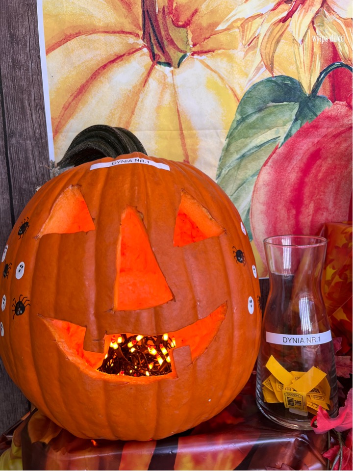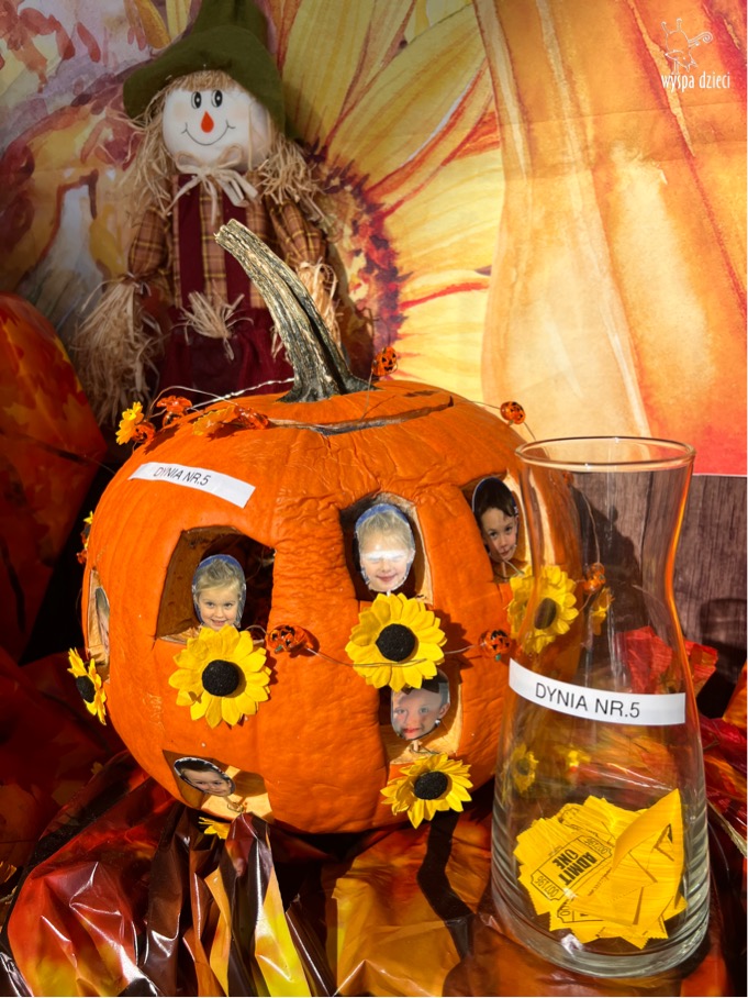 SIEDEM PIĘKNIE UDEKOROWANYCH DYNI ( bo tyle mamy grup) pojawiło się 31 października w czwartek, w głównym korytarzu Wyspy Dzieci River Grove. Dynie były przygotowywane w każdej grupie przez dzieci i nauczycieli. Tym razem to RODZICE byli jurorami !!!!! . Na każde dziecko przypadały 2 głosy do odebrania od nauczyciela dyżurnego . Po odebraniu głosów rodzice wrzucali je do pojemnika przy wybranej dyni. Wygrała ta dynia, która otrzymała największą liczbę głosów !