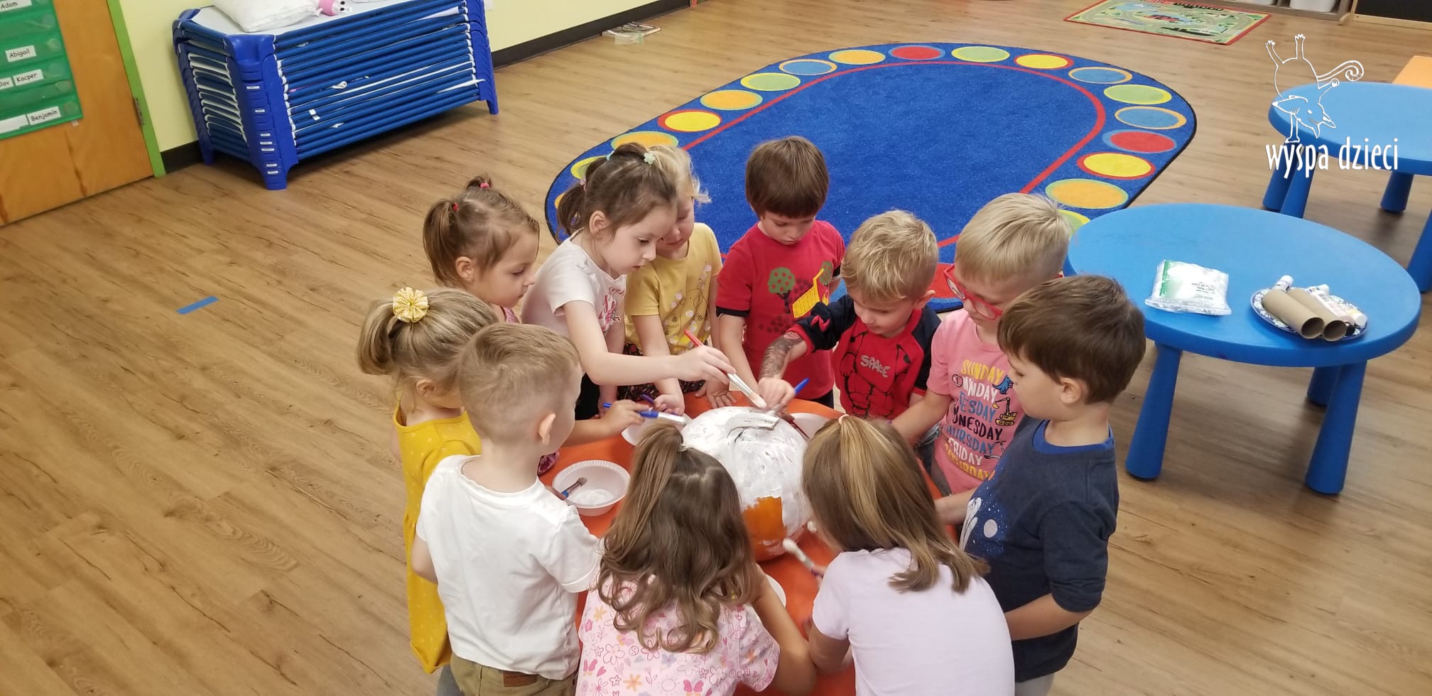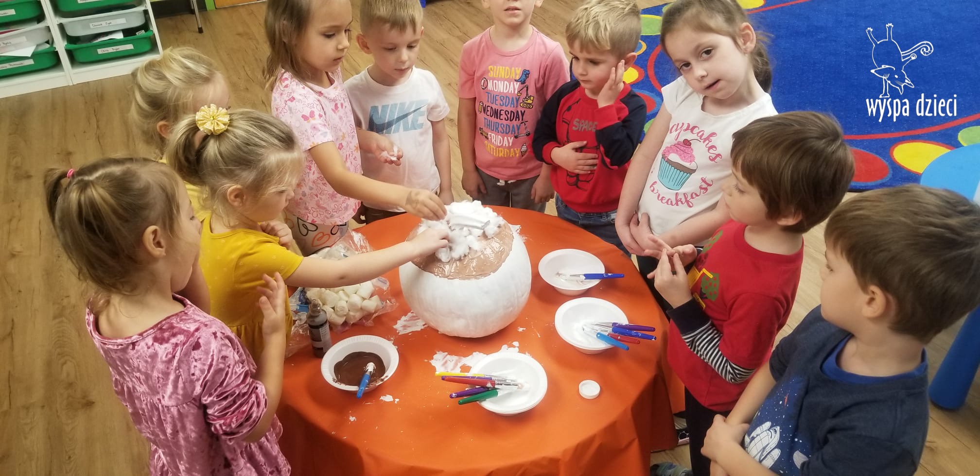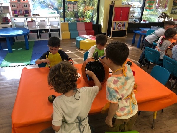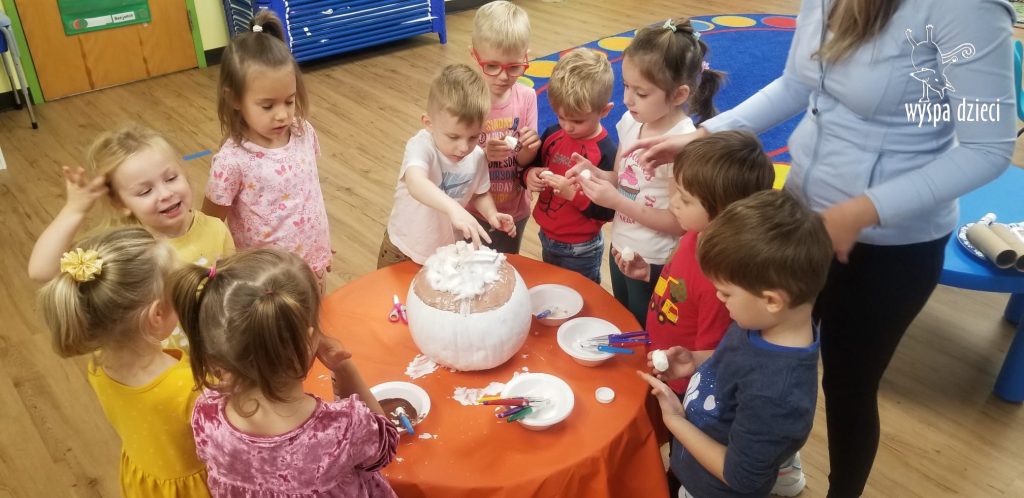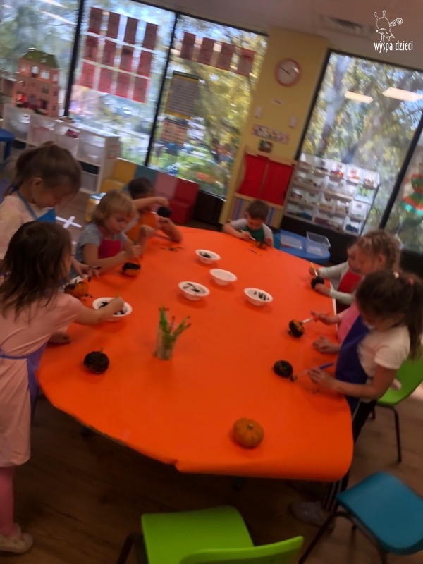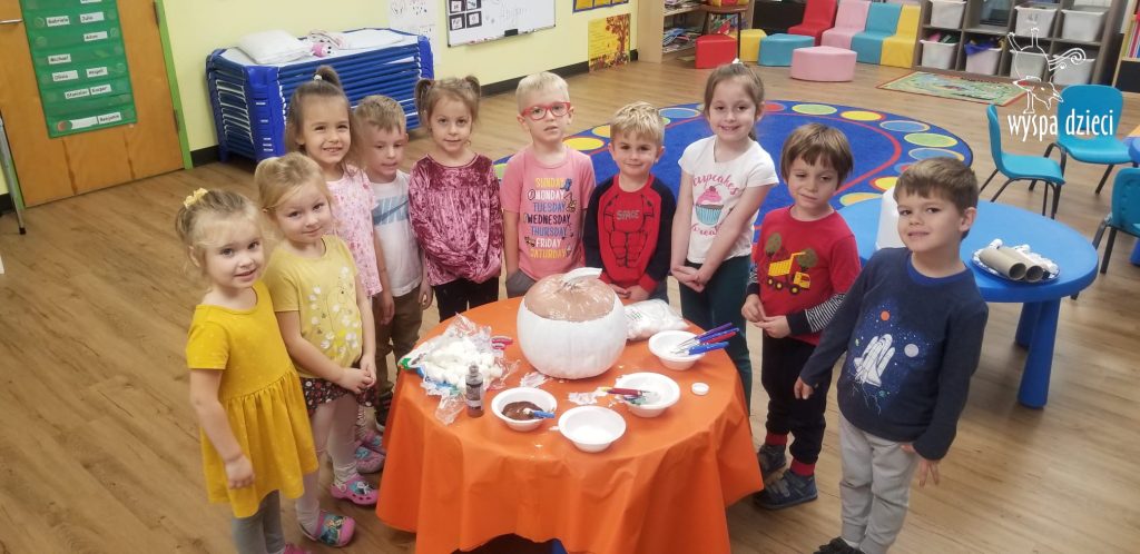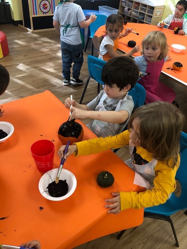 SIEDEM PIĘKNIE UDEKOROWANYCH DYNI ( bo tyle mamy grup) pojawiło się w czwartek, w głównym korytarzu przedszkola. Tym razem to RODZICE byli jurorami, kupując los za $1 i oddając swój głos na najpiękniejszą ich zdaniem dynię. W dniu 10/30/23, czyli w poniedziałek, każda dynia znalazła swojego właściciela poprzez losowanie jednego nazwiska z pojemnika przy każdej z dyni. Osoby wylosowane będę mogły zabrać dynie do domu. Przeliczyliśmy również wszystkie losy, a za zebrane pieniążki nauczycielki zakupią słodkie niespodzianki na bal przebierańców, który odbędzie się 31 października . Zostaną również zakupione książeczki dla każdej grupy.