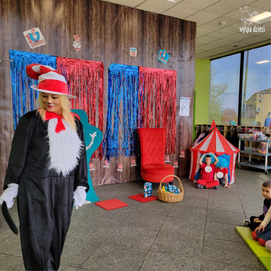 W naszej Wyspie Dzieci w River Grove zagoscil Cat in the Hat, czyli Kot Prot. Zabaw, śmiechu, figlów było bez liku. Z tej okazji nasi milusińscy słuchali również historii o Kocie Procie i jego pomocnikach.