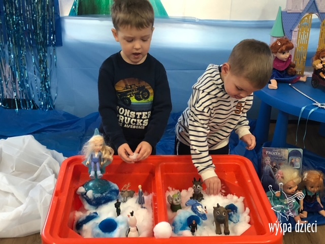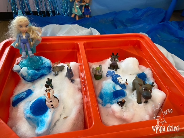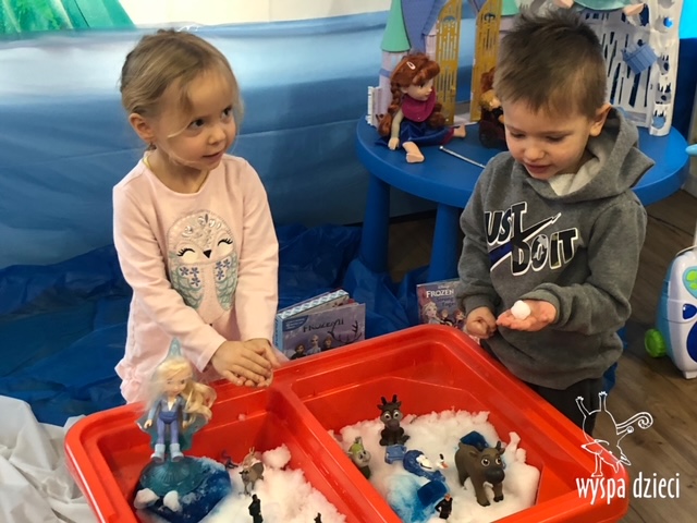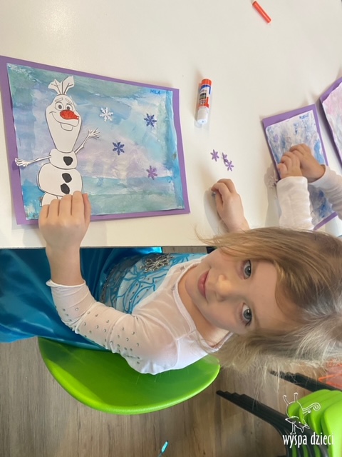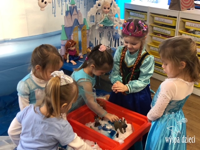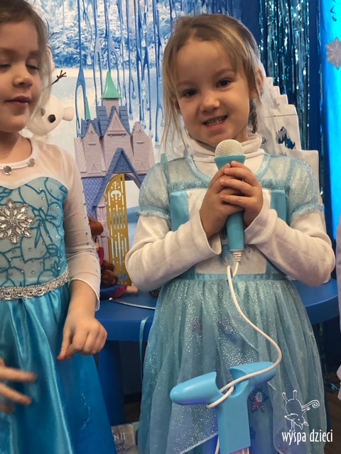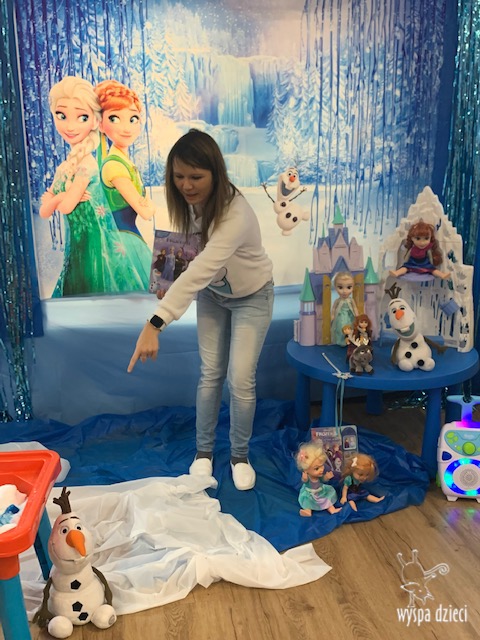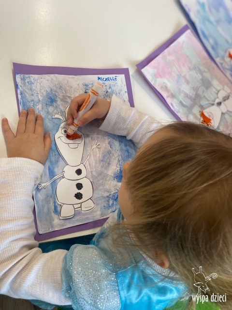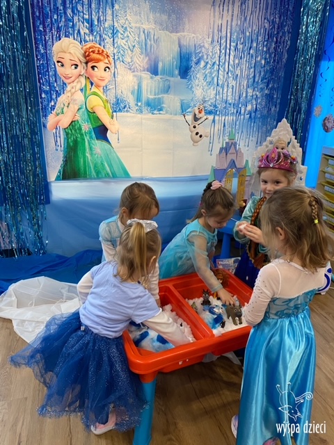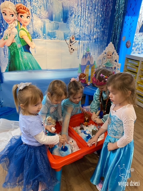 Dziewczynki miały okazję zaśpiewać jakże znaną wszytkim piosenkę “Mam tę moc”, później nadszedł czas na zabawy sensoryczne w krainie lodu, maluchy wykonały też piękne prace plastyczne.