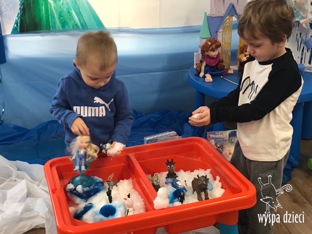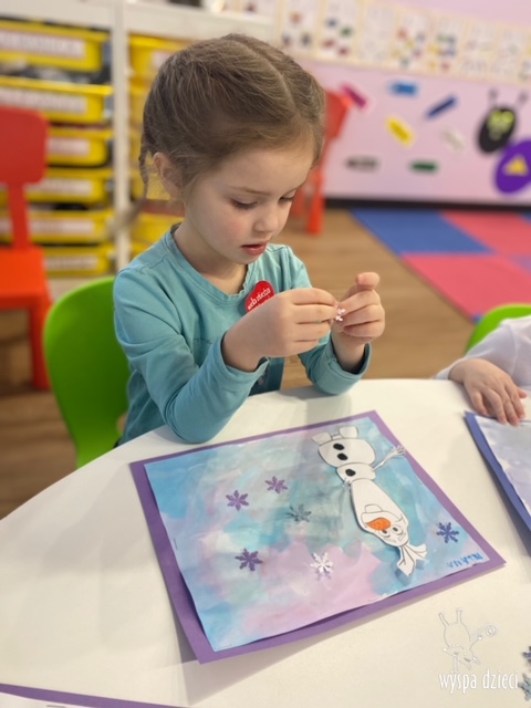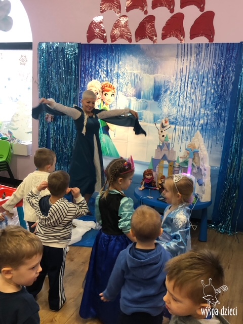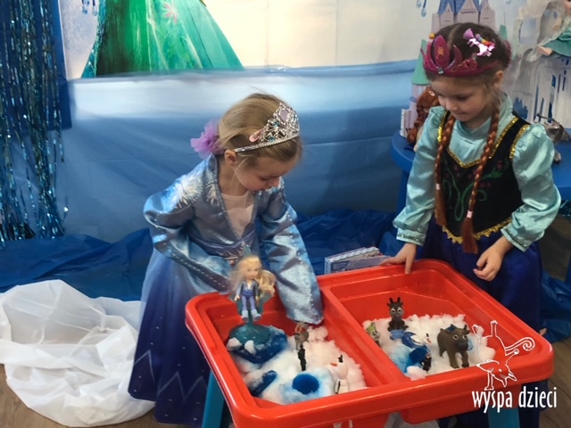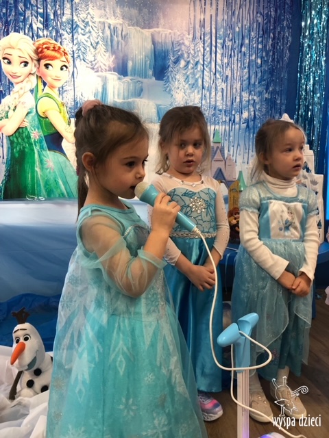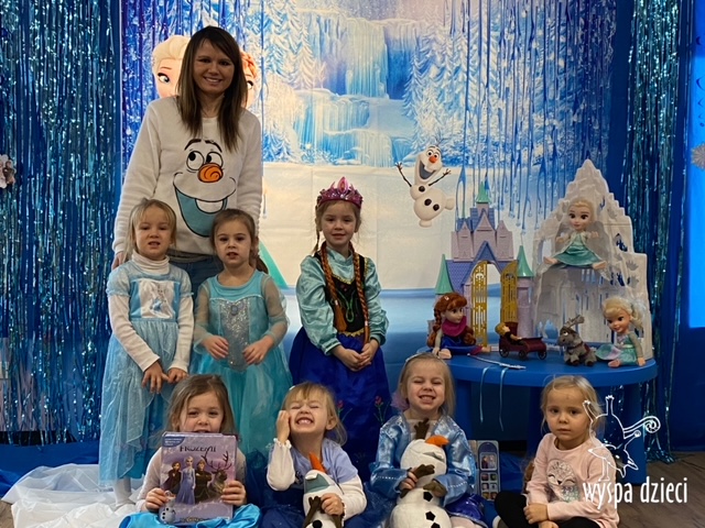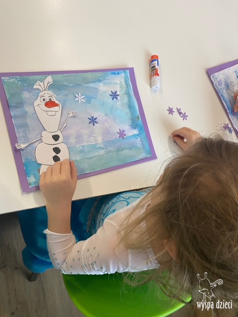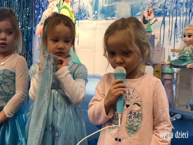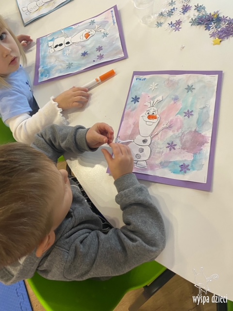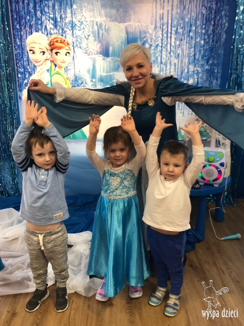 Dziewczynki miały okazję zaśpiewać jakże znaną wszytkim piosenkę “Mam tę moc”, później nadszedł czas na zabawy sensoryczne w krainie lodu, maluchy wykonały też piękne prace plastyczne.