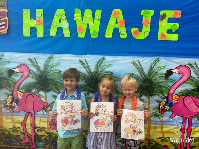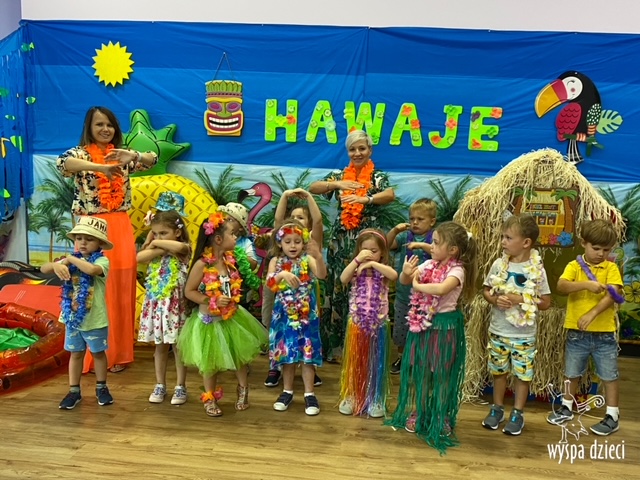 Czy można wymarzyć sobie piękniejsze wakacje niż wakacje na gorącaych Hawajach? – zdecydowanie nie! Przekonały się o tym Krasnale na Wyspie Dzieci w Algonquin, które w tym tygodniu wybrały się w podróż na tą piękną wyspę. Dzieci ubrane w kolorowe, hawajskie stroje tańczyły w rytm hawajskiej muzyki, piły pyszny punch, pływały wśród pięknych raf koralowych – spotkały tam nawet baby sharka przed którym musiały szybko uciekać! Maluchy poznały różnorodną faune i florę tej wyspy, a także mogły zobaczyć wybuch hawajskiego wulkanu. Krasnoludki wykonywały też prace plastyczne o tematyce hawajskiej. To była długa , ale niezapomniana podróż… na pewno na bardzo długo zostanie w pamięci naszych Krasnoludków!