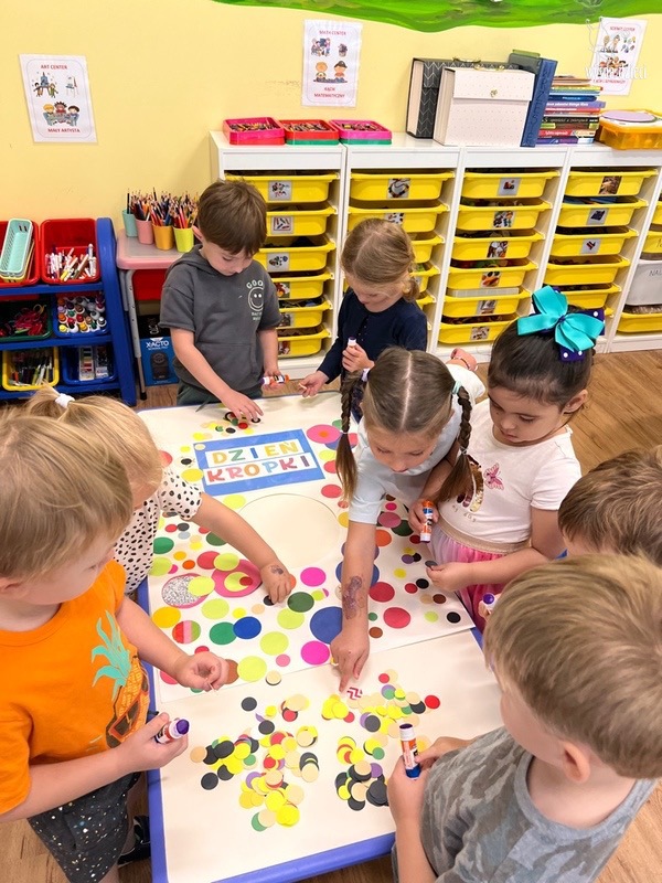 16 września 2024 roku przedszkolaki z Wyspy Dzieci River Grove włączyły się w obchody Międzynarodowego Dnia Kropki. Dzieci przyszły ubrane do przedszkola w kropkowych strojach. Tego dnia wszystko kręciło się wokół kropek dużych, małych, średnich … 🔴🟢🔵🟡