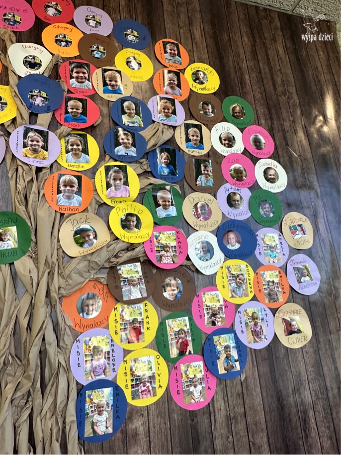 Nauczyciele przygotowali w grupach specjalne projekty związane z tym świętem. Natomiast naszym głównym projektem w tym dniu, było wykonanie drzewa z kropek. Każda kropka to jeden przedszkolak. Po wykonaniu takich kropek, grupy spotykały się w głównym korytarzu i z minuty na minutę rosło nasze Kropkowe Drzewo Wyspy Dzieci River Grove ❤️❤️❤️