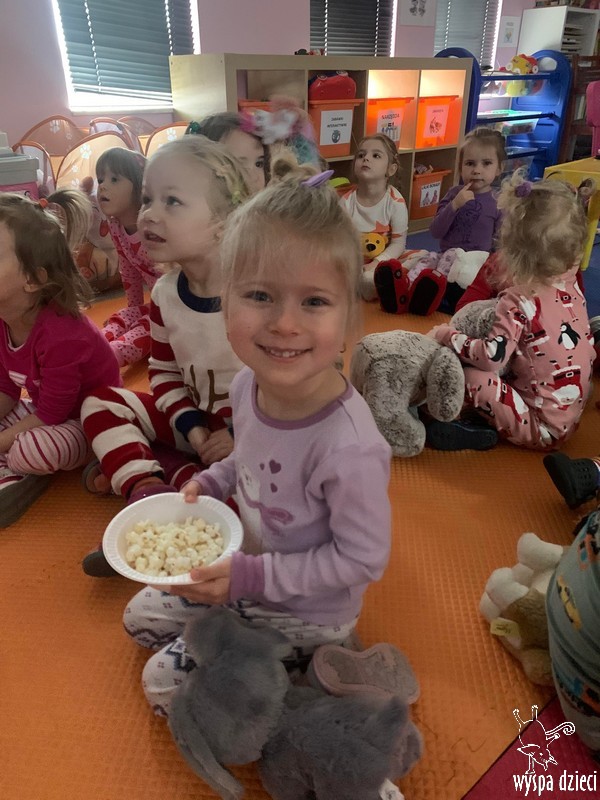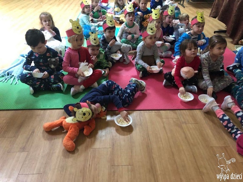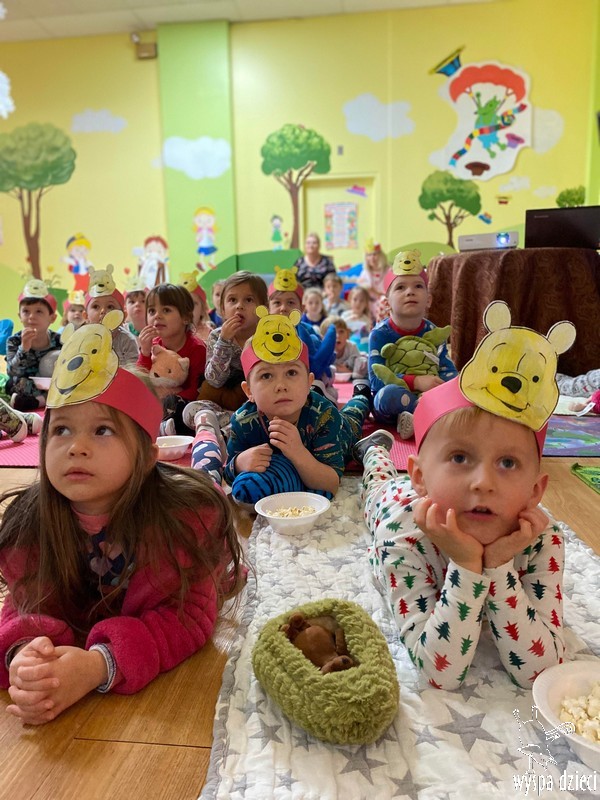 Jak co roku w styczniu nasze przedszkolaki wspólnie świętowały urodziny Kubusia Puchatka. W ciągu tygodnia dzieci mogły poznać bajkowe życie Kubusia i jego przyjaciół. A jego urodziny uczciliśmy w piżamowym akcencie, wspólnie oglądając jego przygody i zajadając się pysznym popkornem. I jak się okazuje, piżamowy to chyba najważniejszy dzień dla dzieci w przedszkolu a Miś Puchatek to znakomity nauczyciel i przyjaciel dzieci.