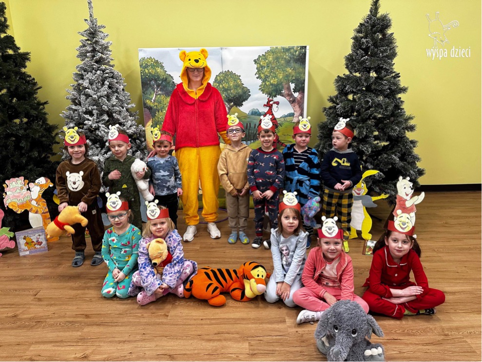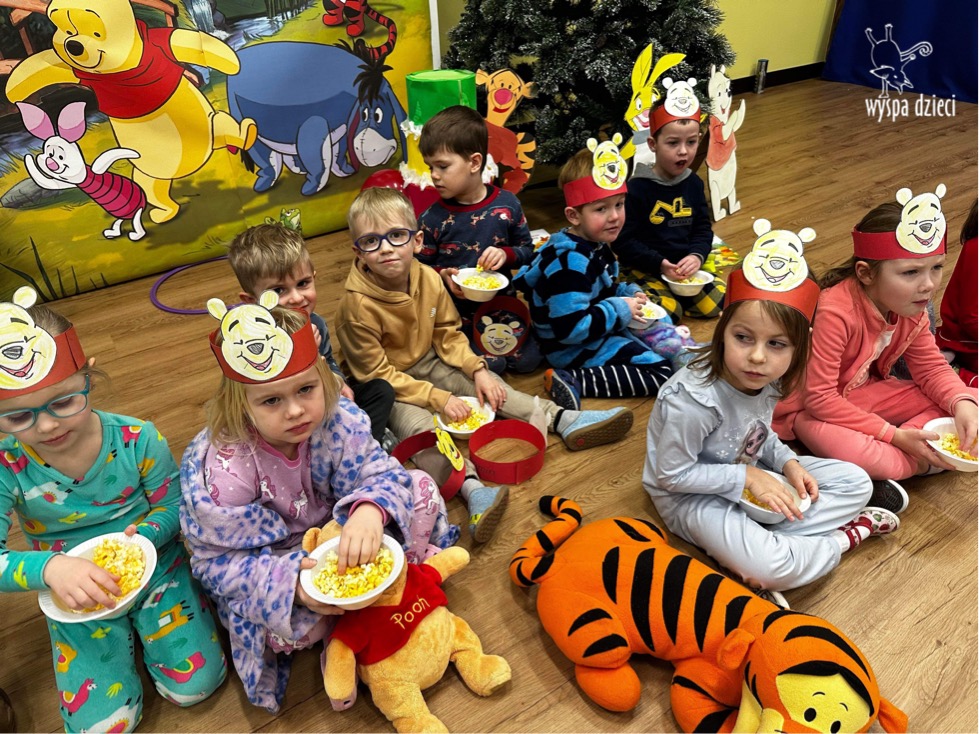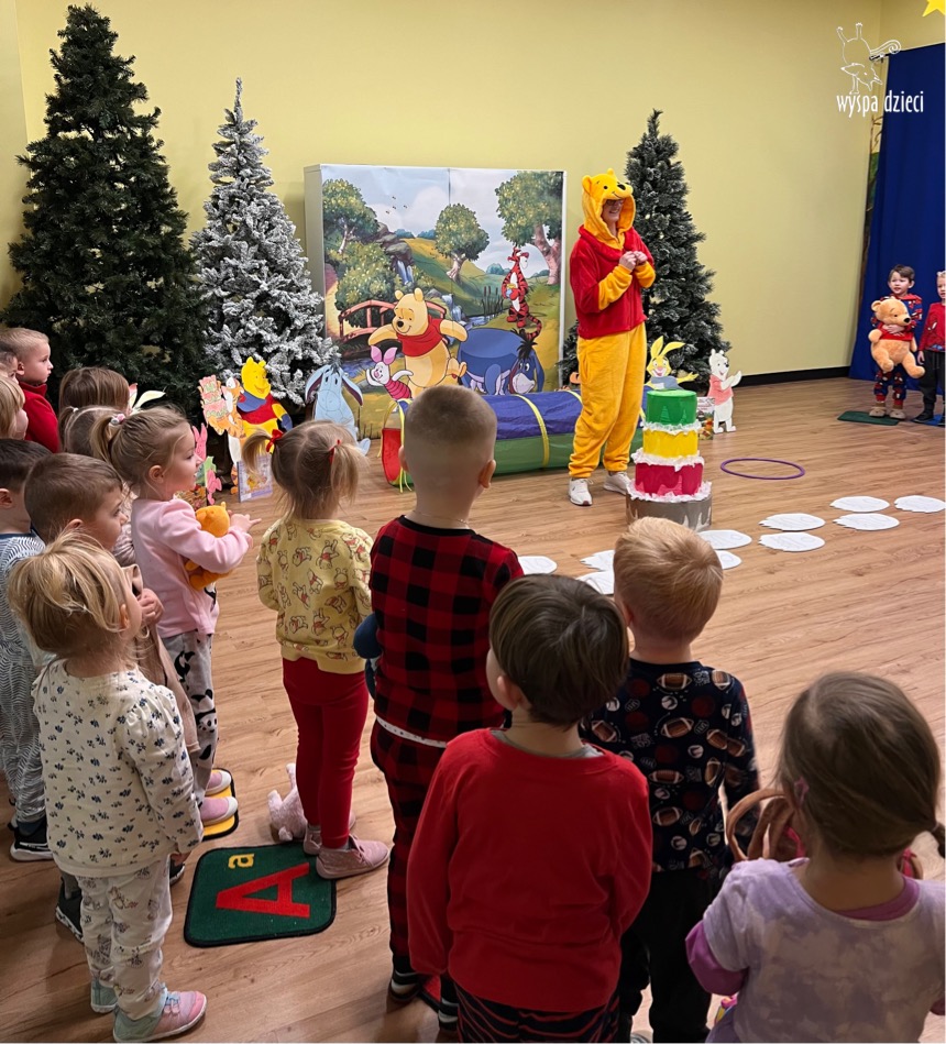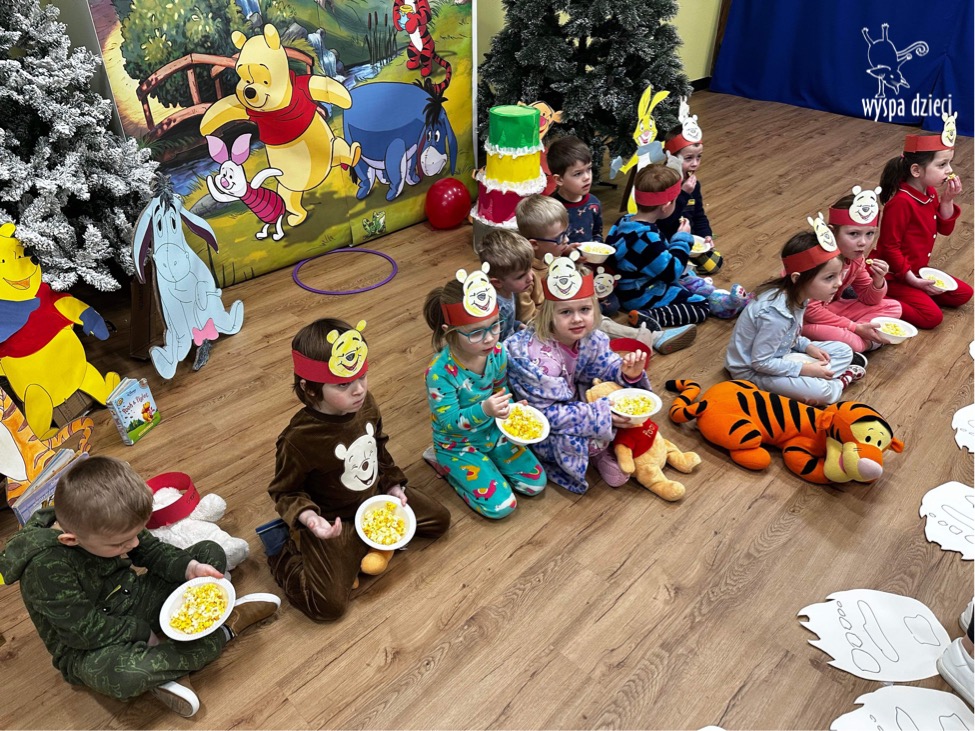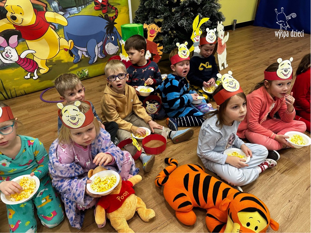 W naszym przedszkolu w Wyspie Dzieci River Grove, jak co roku postanowiliśmy uczcić to sympatyczne święto. Dzień ten był doskonałą okazją do przypomnienia przygód Kubusia Puchatka. Dzieci rozwiązywały zagadki, oglądały przygody zwierząt ze Stumilowego Lasu. W tym dniu dzieci mogłyrównież przyjść do przedszkola ubrane w piżdżamki ze swoimi przytulankami. Dużo przedszkolaków przyniosło maskotki z wizerunkiem Kubusia Puchatka i jego przyjaciół. Na koniec wszyscy razem oglądaliśmy „Przygody Kubusia Puchatka”. Na przedszkolaków czekała jeszcze jedna niespodzianka ? A mianowicie był to pyszniutki POPCORN. Czuliśmy się jak na prawdziwym seansie filmowym !!!!