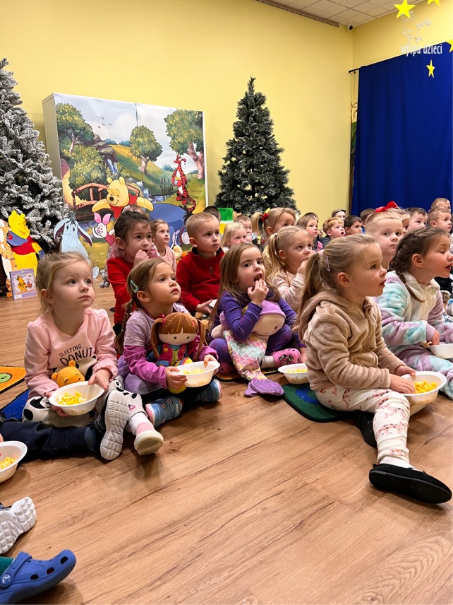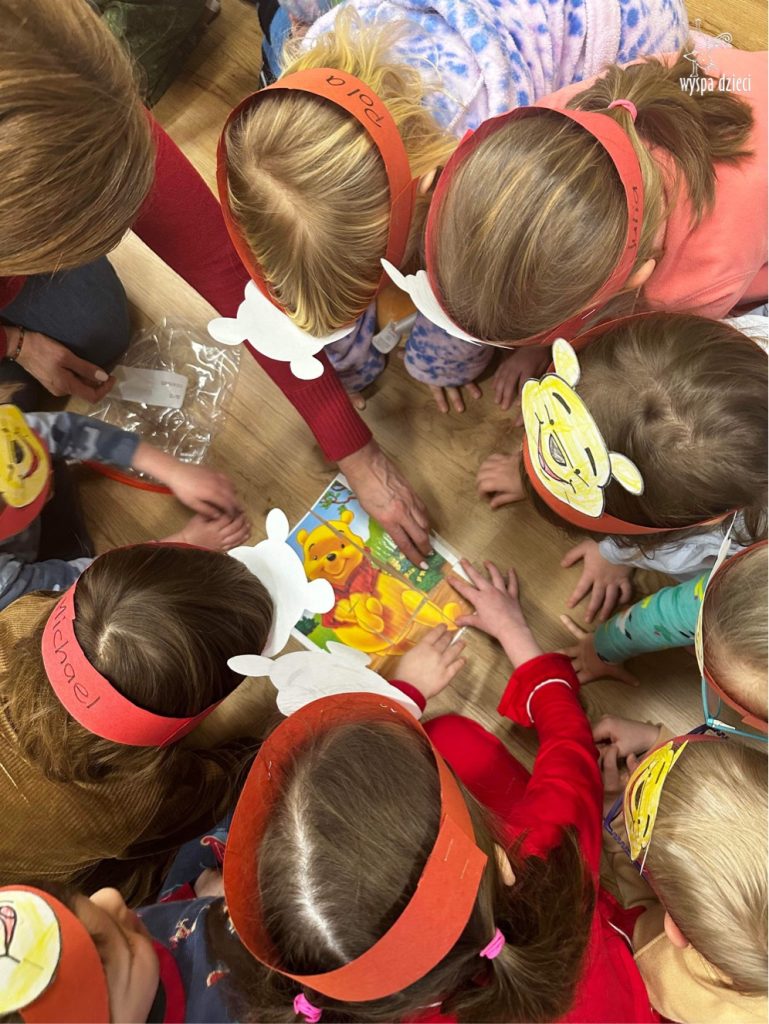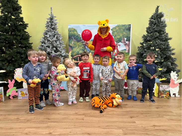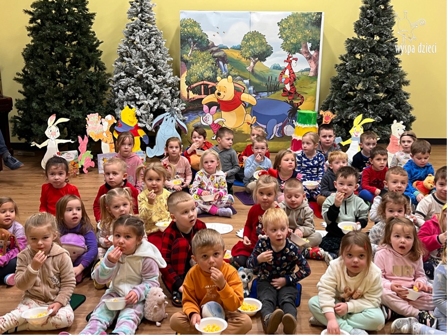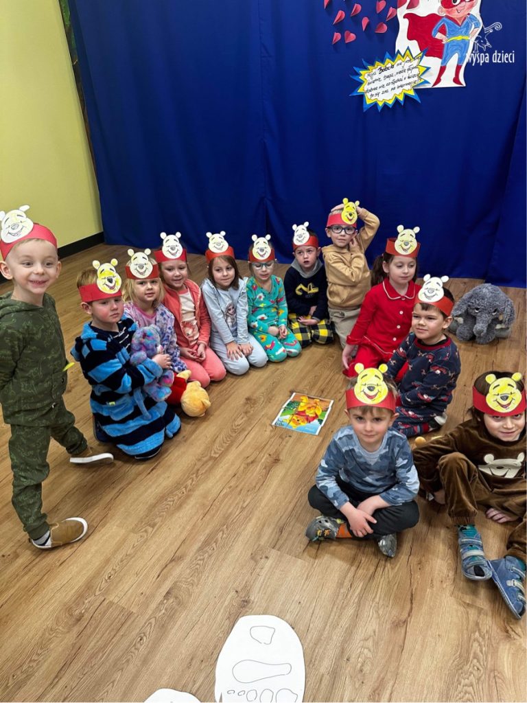W naszym przedszkolu w Wyspie Dzieci River Grove, jak co roku postanowiliśmy uczcić to sympatyczne święto. Dzień ten był doskonałą okazją do przypomnienia przygód Kubusia Puchatka. Dzieci rozwiązywały zagadki, oglądały przygody zwierząt ze Stumilowego Lasu. W tym dniu dzieci mogłyrównież przyjść do przedszkola ubrane w piżdżamki ze swoimi przytulankami. Dużo przedszkolaków przyniosło maskotki z wizerunkiem Kubusia Puchatka i jego przyjaciół. Na koniec wszyscy razem oglądaliśmy „Przygody Kubusia Puchatka”. Na przedszkolaków czekała jeszcze jedna niespodzianka ? A mianowicie był to pyszniutki POPCORN. Czuliśmy się jak na prawdziwym seansie filmowym !!!!