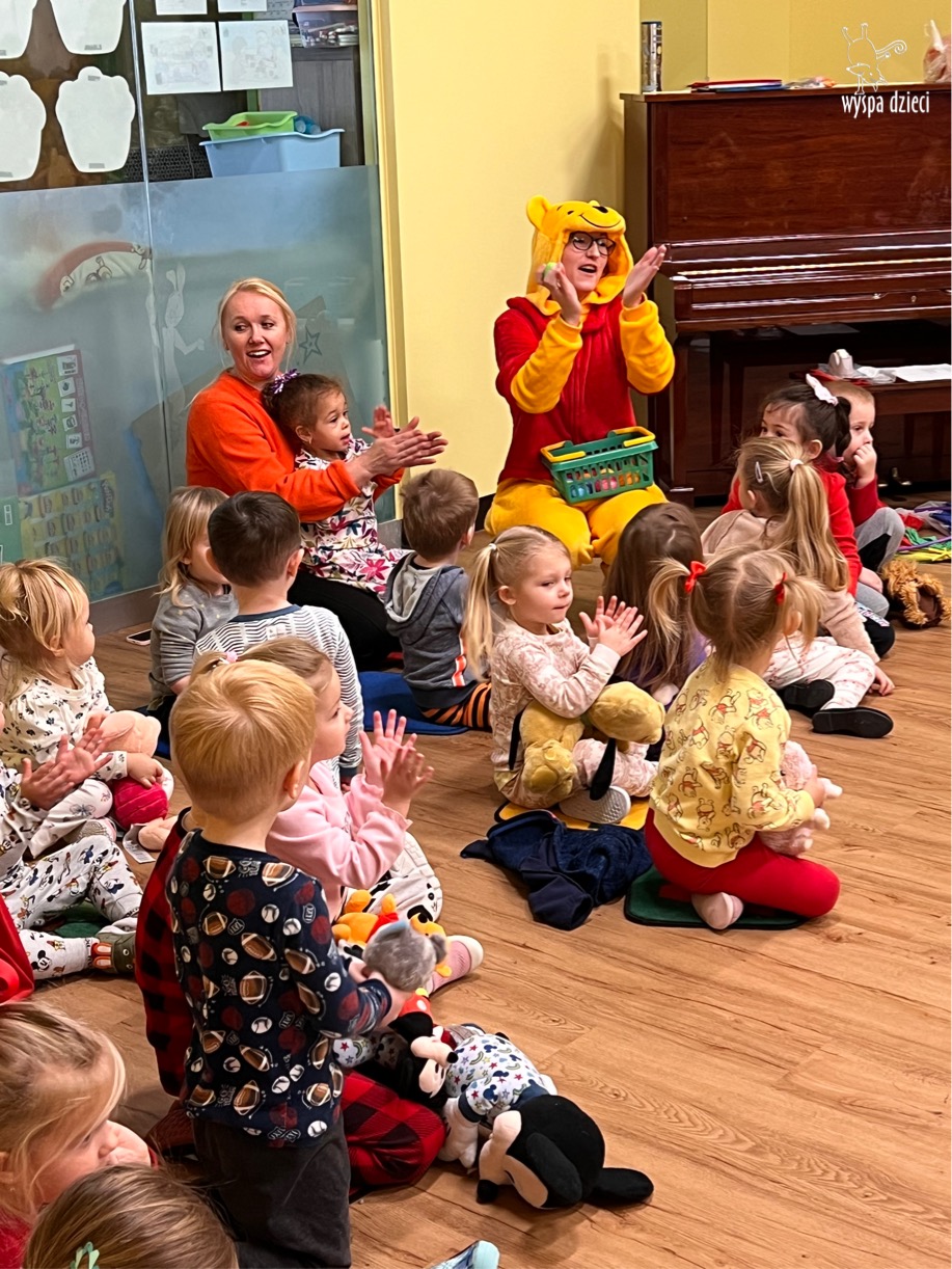 W naszym przedszkolu w Wyspie Dzieci River Grove, jak co roku postanowiliśmy uczcić to sympatyczne święto. Dzień ten był doskonałą okazją do przypomnienia przygód Kubusia Puchatka. Dzieci rozwiązywały zagadki, oglądały przygody zwierząt ze Stumilowego Lasu. W tym dniu dzieci mogłyrównież przyjść do przedszkola ubrane w piżdżamki ze swoimi przytulankami. Dużo przedszkolaków przyniosło maskotki z wizerunkiem Kubusia Puchatka i jego przyjaciół. Na koniec wszyscy razem oglądaliśmy „Przygody Kubusia Puchatka”. Na przedszkolaków czekała jeszcze jedna niespodzianka ? A mianowicie był to pyszniutki POPCORN. Czuliśmy się jak na prawdziwym seansie filmowym !!!!