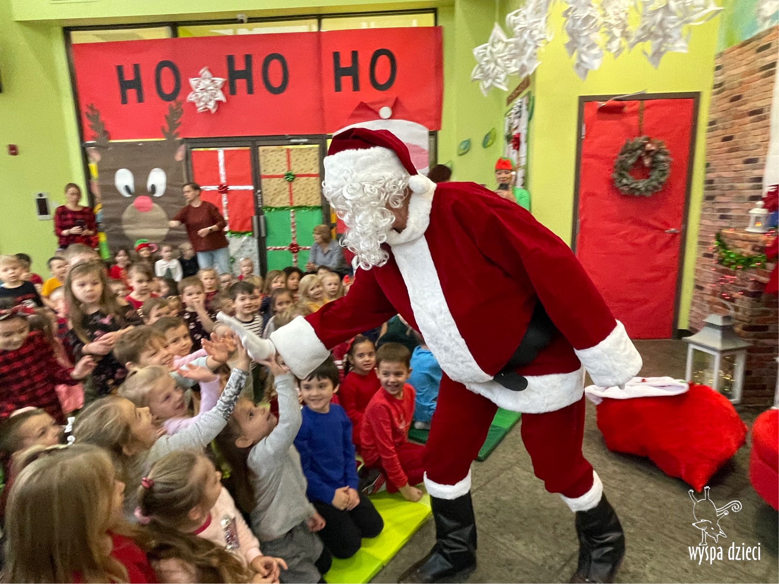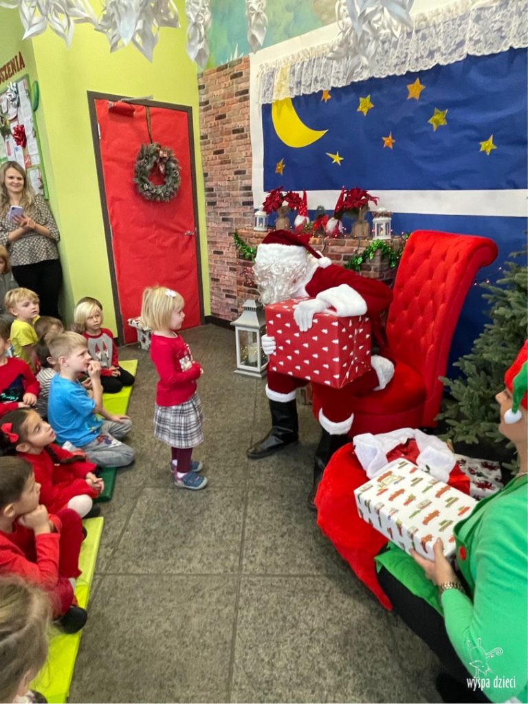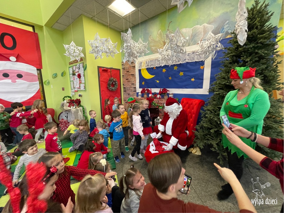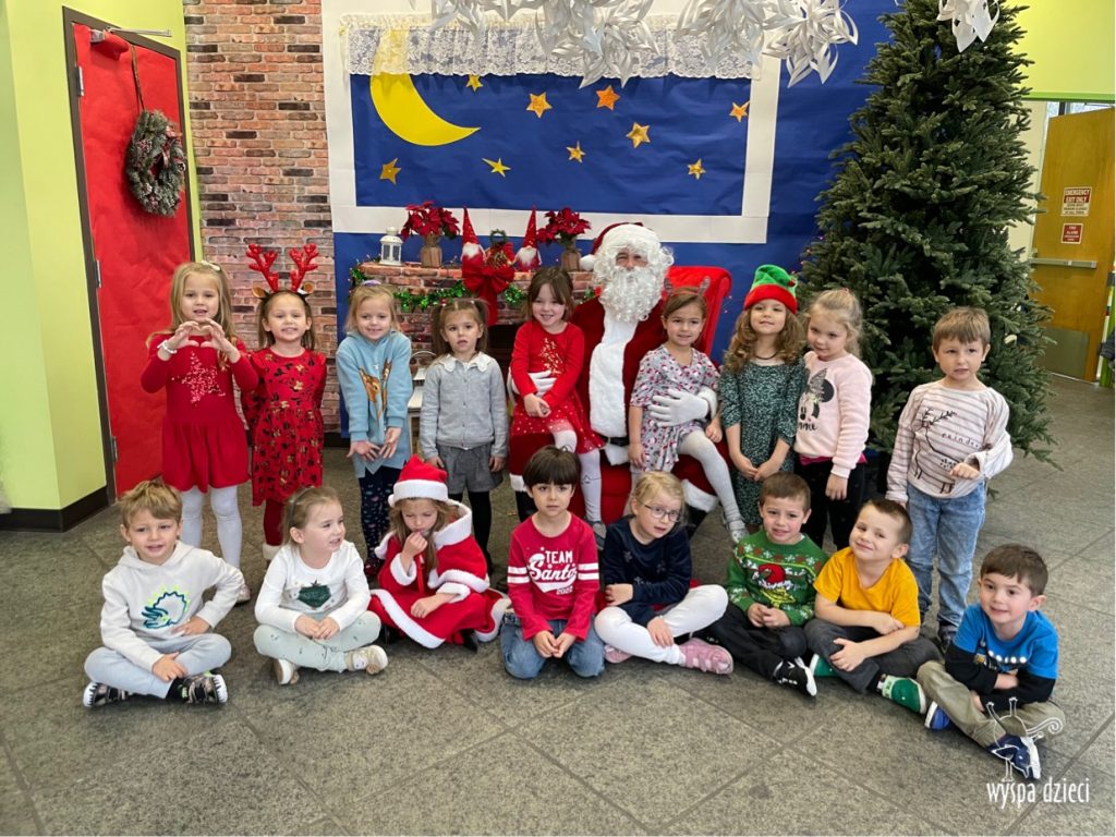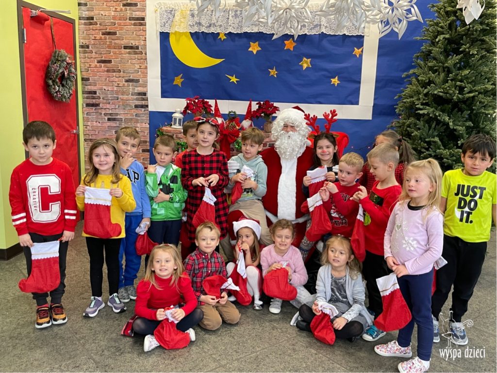 W naszej Wyspie dla Mikołaja od rana były przygotowane ciasteczka i mleczko. Już od rana dzieci wypatrywały Go przez okna przedszkola. I proszę sobie wyobrazić ze Mikołaj skusił się na te smakołyki i pojawił się w naszej Wyspie. Ho, ho, ho, czy tutaj jest Wyspa Dzieci ? Tak przywitał przedszkolaki nasz gość – Święty Mikołaj. Przybył z workami pełnymi prezentów. A pod choinka zostawił mnóstwo prezentów – zabawek do naszych klas. Podziękowaliśmy Mikołajowi za wizytę piosenką – ” Mikołaj jedzie samochodem”. Na koniec wszystkie dzieci zrobiły sobie pamiątkowe grupowe zdjęcia z Mikołajem.