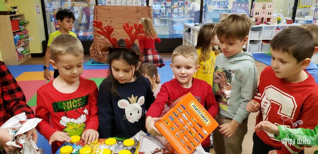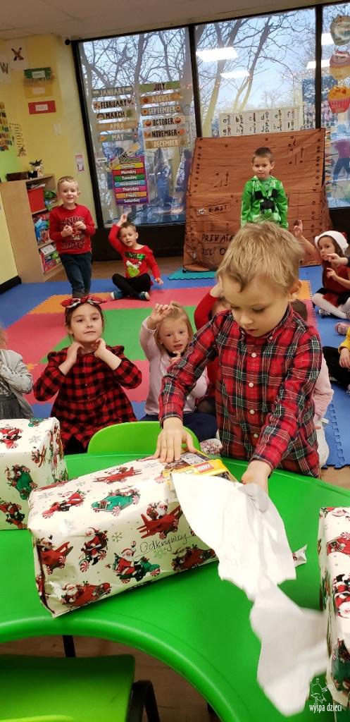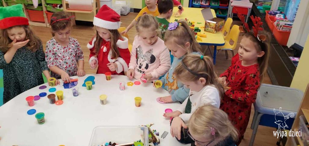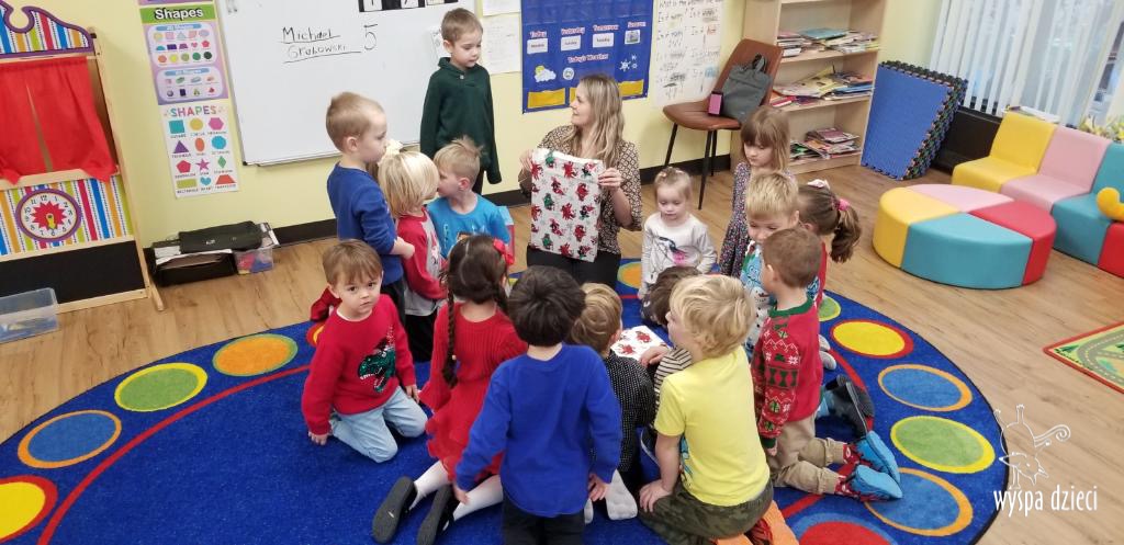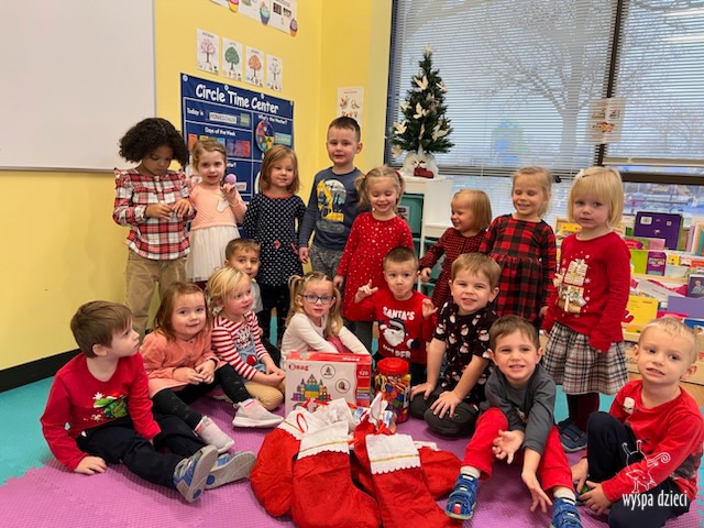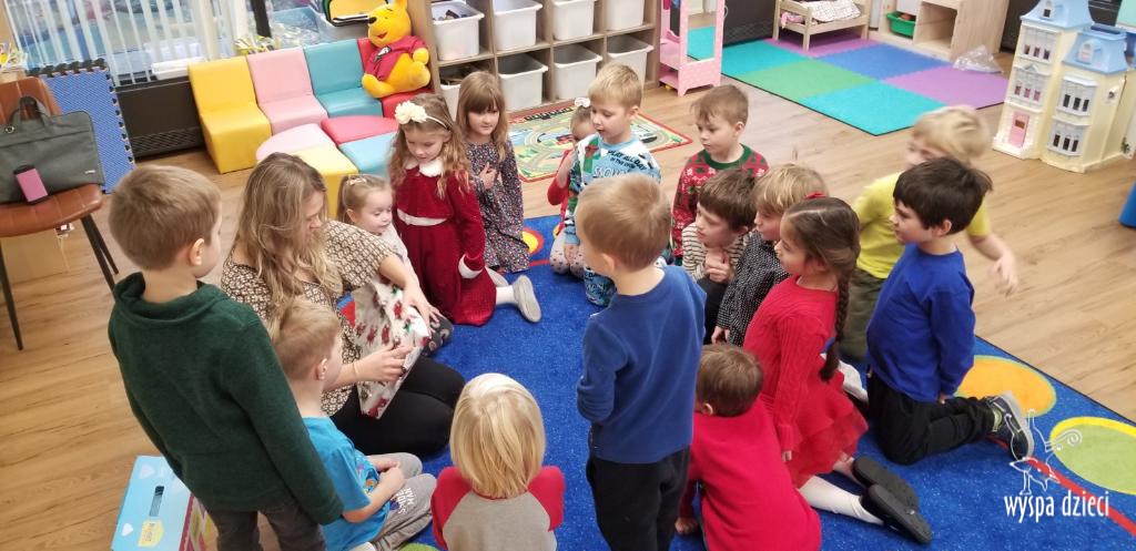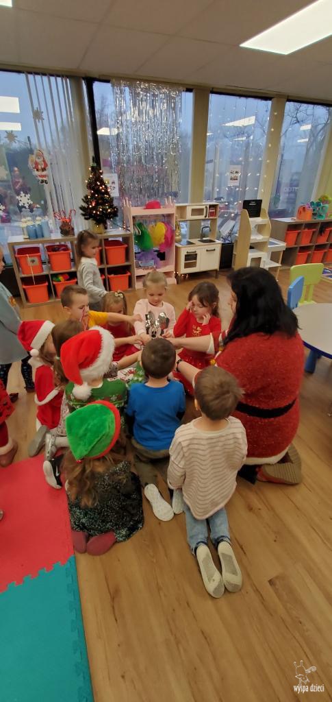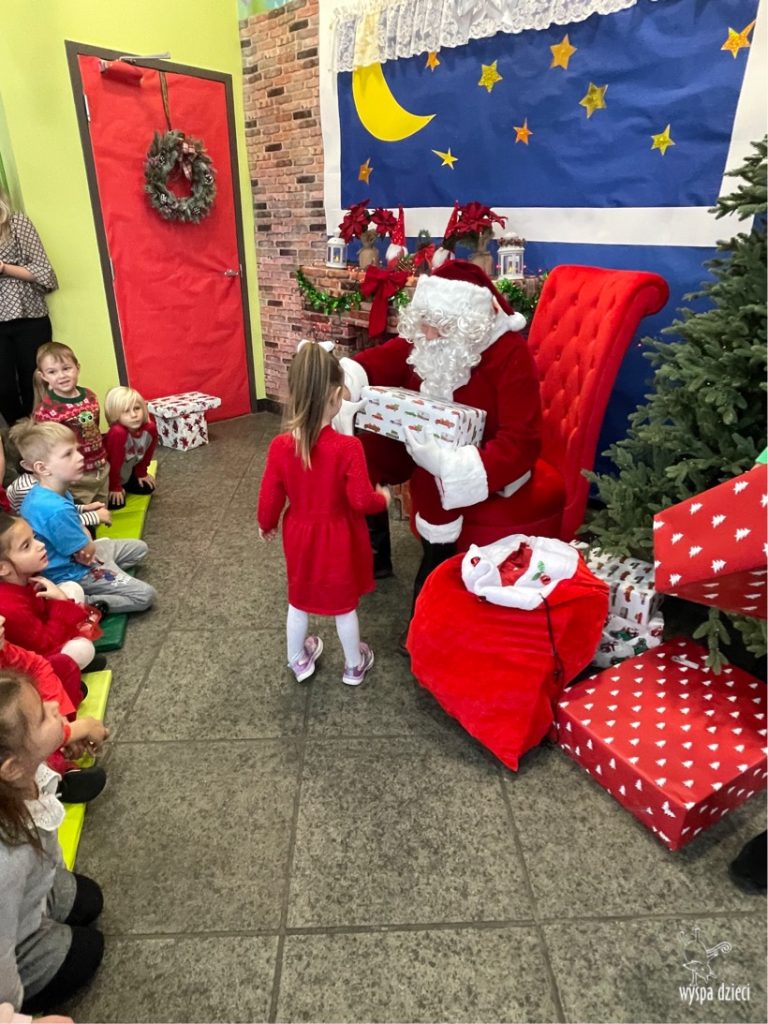 W naszej Wyspie dla Mikołaja od rana były przygotowane ciasteczka i mleczko. Już od rana dzieci wypatrywały Go przez okna przedszkola. I proszę sobie wyobrazić ze Mikołaj skusił się na te smakołyki i pojawił się w naszej Wyspie. Ho, ho, ho, czy tutaj jest Wyspa Dzieci ? Tak przywitał przedszkolaki nasz gość – Święty Mikołaj. Przybył z workami pełnymi prezentów. A pod choinka zostawił mnóstwo prezentów – zabawek do naszych klas. Podziękowaliśmy Mikołajowi za wizytę piosenką – ” Mikołaj jedzie samochodem”. Na koniec wszystkie dzieci zrobiły sobie pamiątkowe grupowe zdjęcia z Mikołajem.