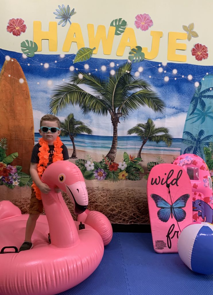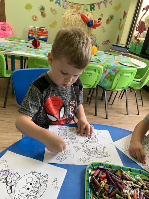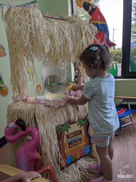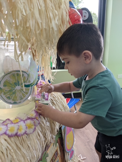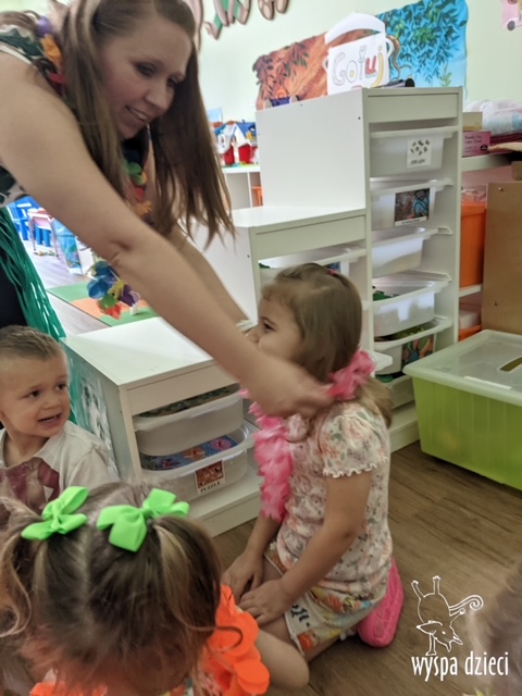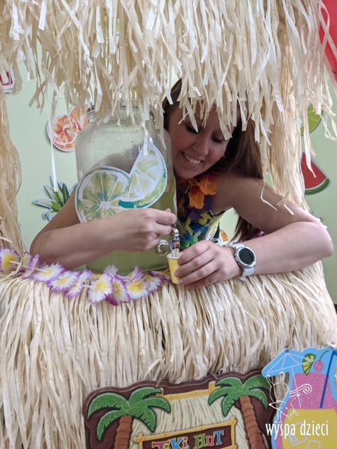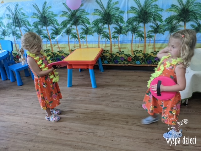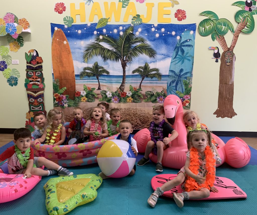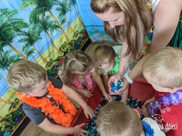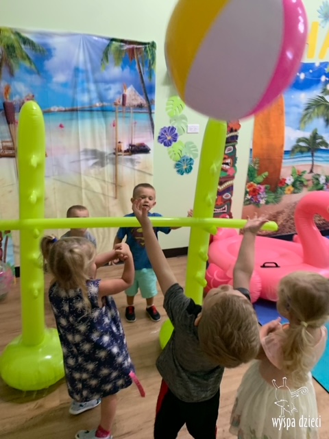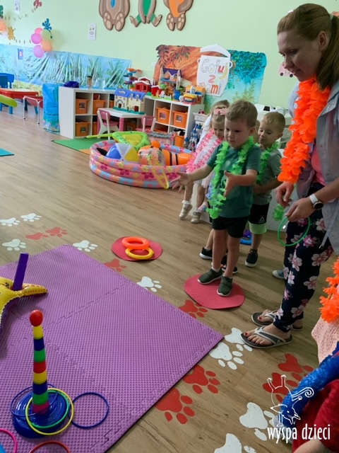 Misie wybrały się na wakacyjną przygodę na Hawaje. Podczas całego tygodnia mogły nauczyć sie różnych ciekawych rzeczy o Hawajach, uczyły się tańca hawajskiego jak również w jaki sposób Hawajczycy się witają. Ponadto czas ten upłynął na świetnie zabawie. Misiaczki pograły w siatkówkę plażowa, próbowały trafiać do celu kółeczkami, poszukiwały muszelek ukrytych w ryżu oraz rybek w małym oceanie 🙂 a po wspaniałej przygodzie znalazły czas na odpoczynek podczas którego zajadały się pysznym arbuzem i popijały lemoniadę 🙂