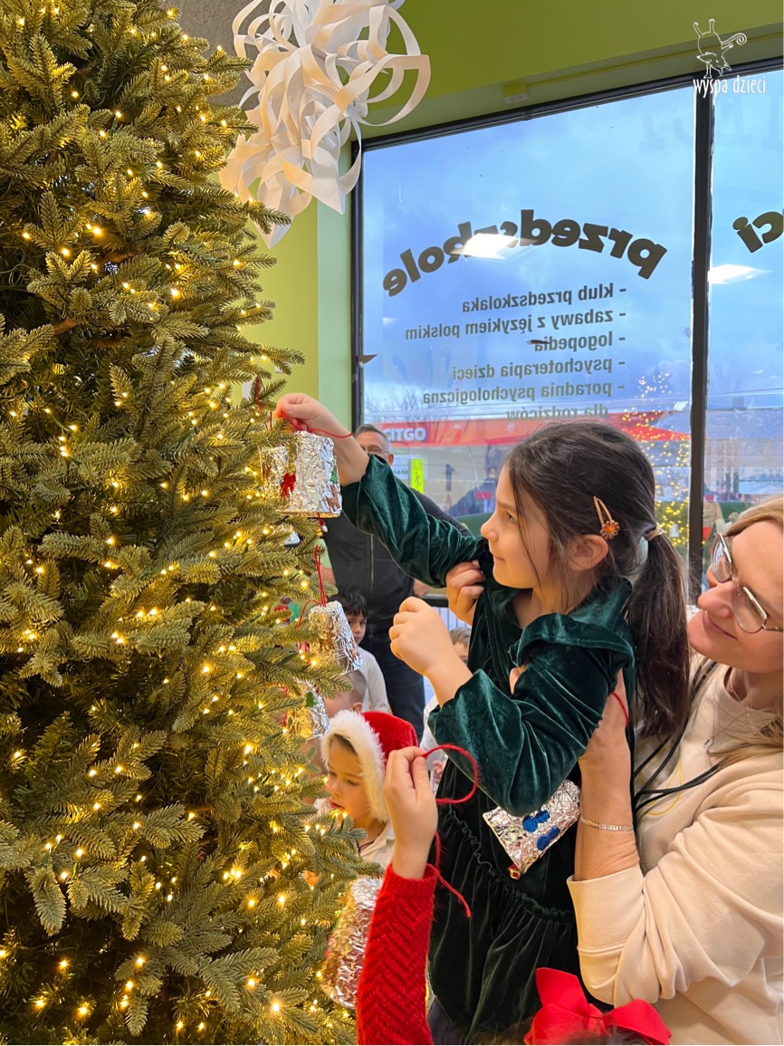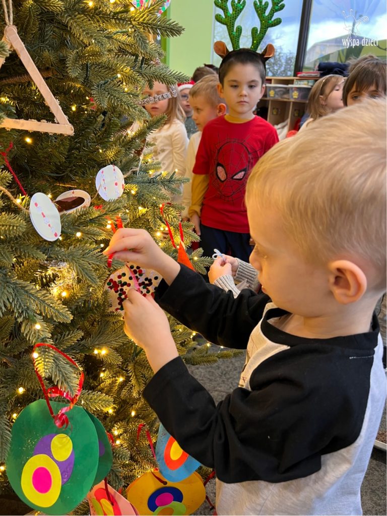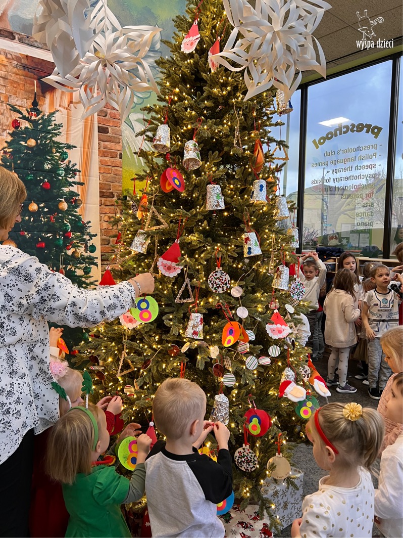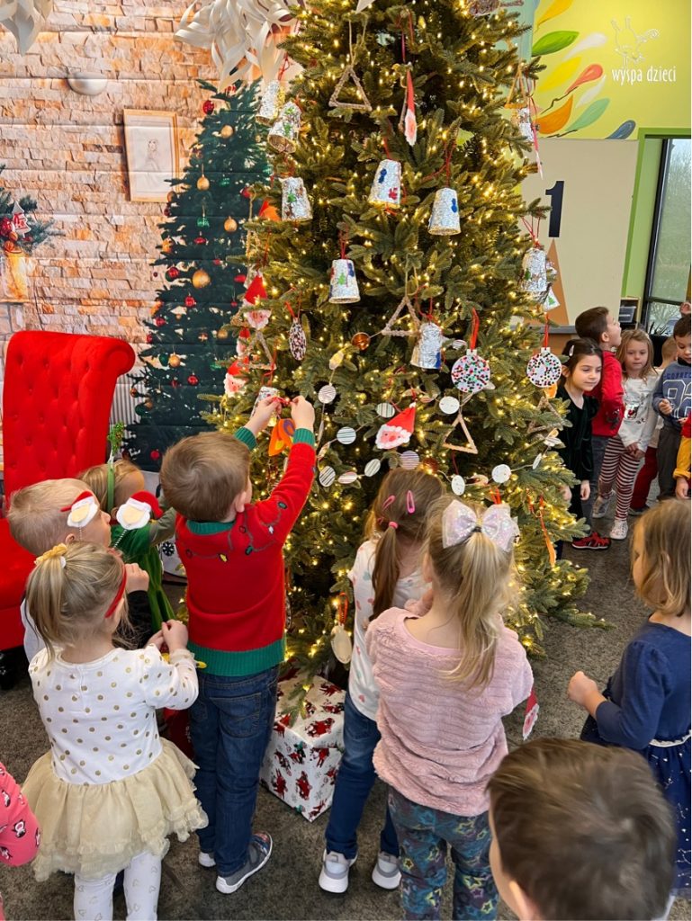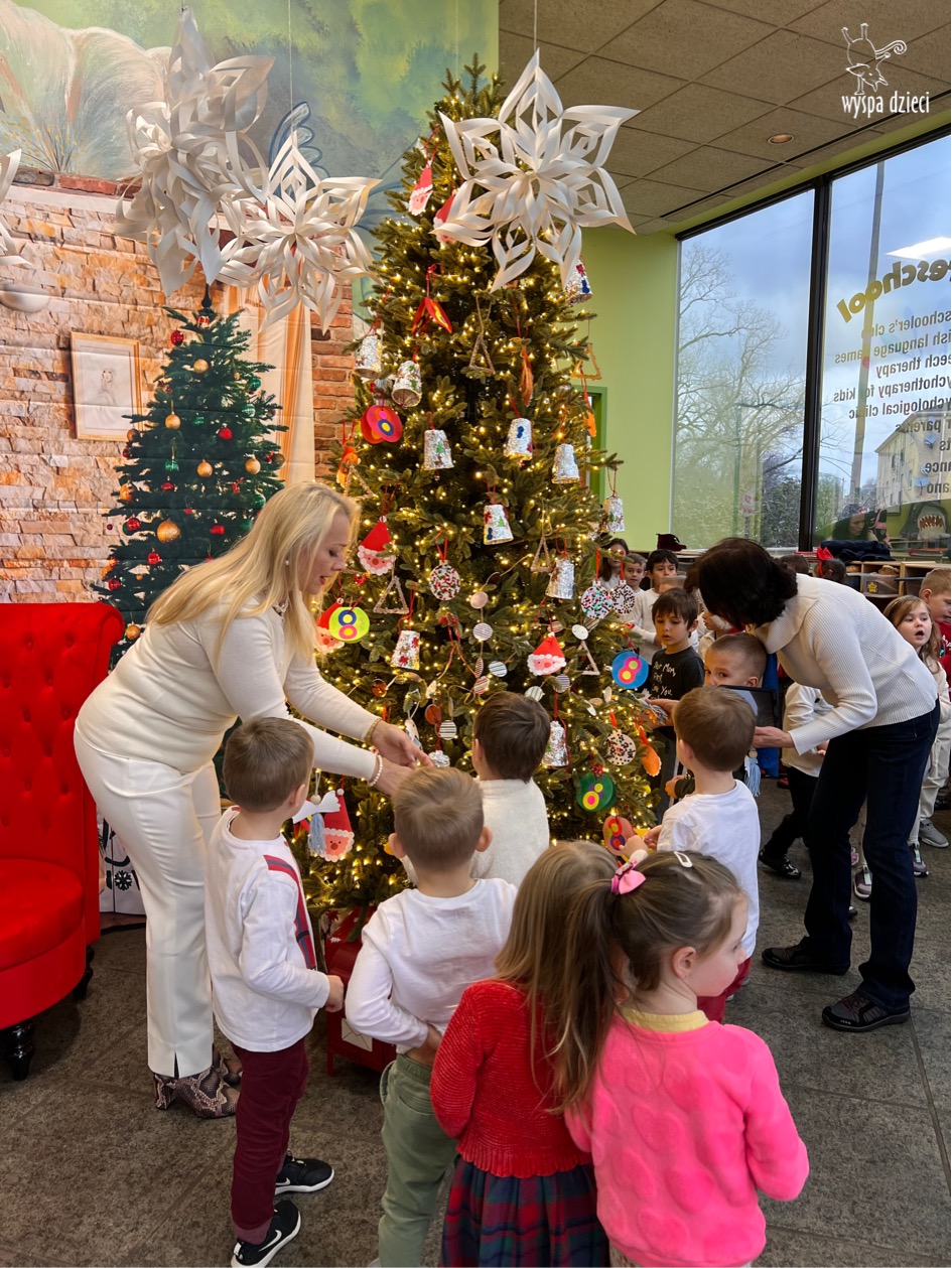 Dnia 12 grudnia (poniedziałek), nadszedł upragniony przez dzieci czas wspólnego ozdabiania choinki na naszym głównym korytarzu w Wyspie Dzieci River Grove.