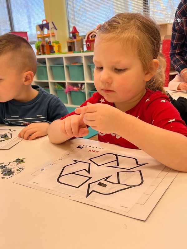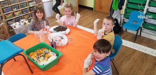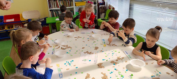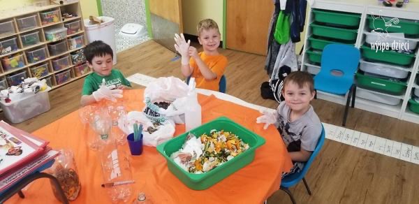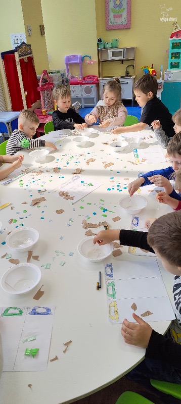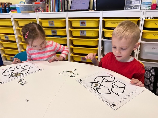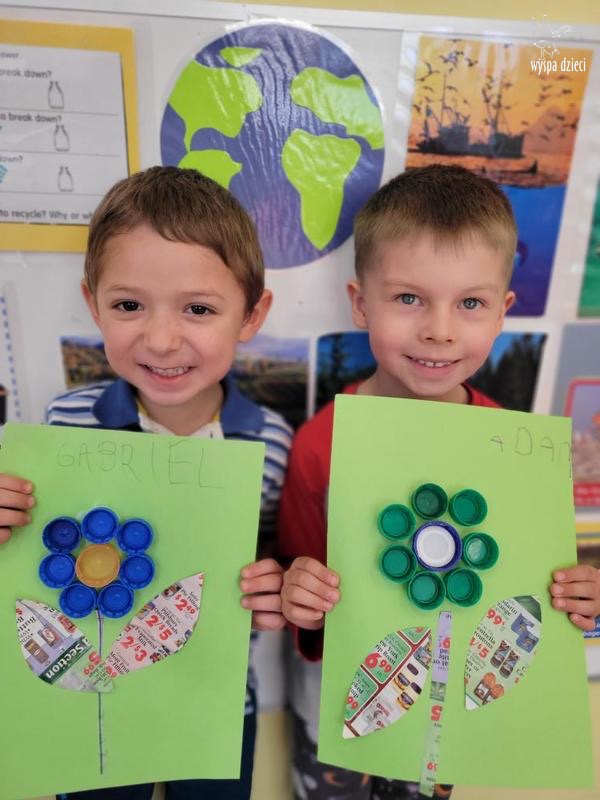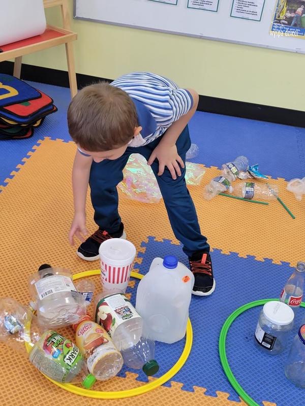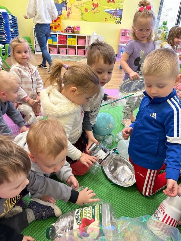 Odpady w postaci zużytych gazet, nakrętek, plastikowych kubków, worków itp. posłużyły dzieciom do zabawy, nauki i wykonania przeróżnych prac.