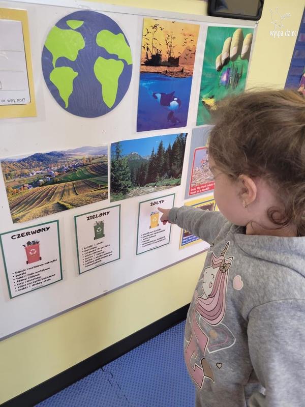 Dzieci w swoich grupach wraz z nauczycielami zastanawiali się, jak chronić naszą planetę, czyli jak o nią dbać. Jedna z takich czynnosci jest segregacja śmieci o której to nasze przedszkolaki dużo nauczyły się podczas zajęć. Ochrona środowiska to nie tylko recykling, ale szereg innych zachowań, które trzeba wyrobić w dzieciach już od najmłodszych lat, nie tylko po to, aby nam żyło się lepiej, ale i po to, aby nasi potomkowie mieli okazję żyć na takiej Ziemi, na jaką zasługują.