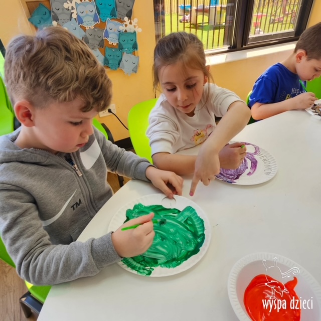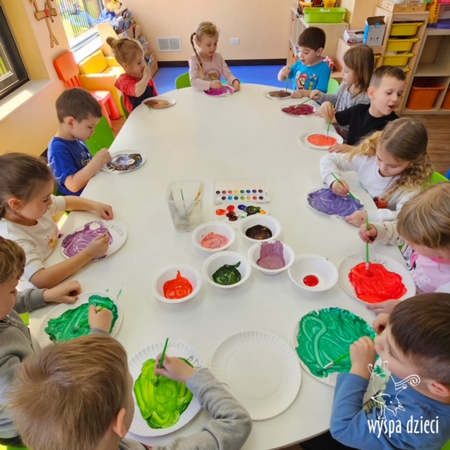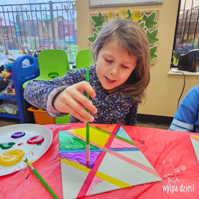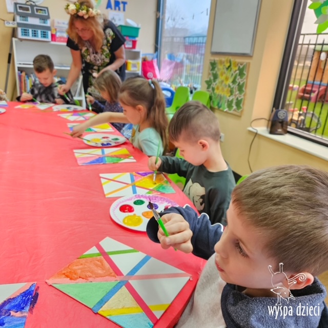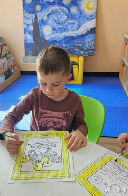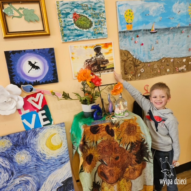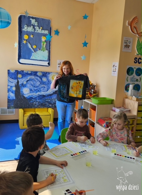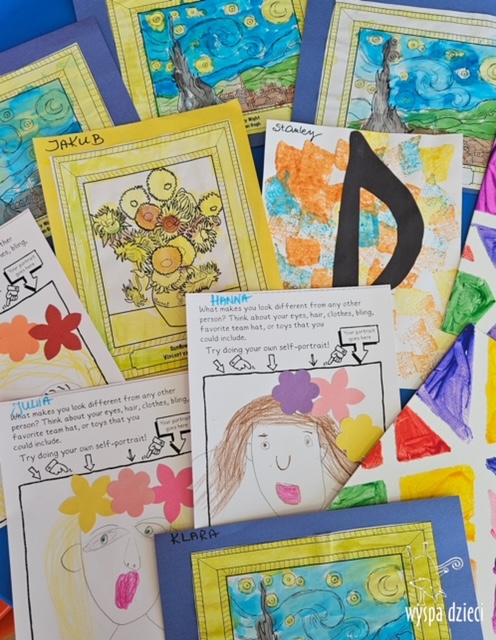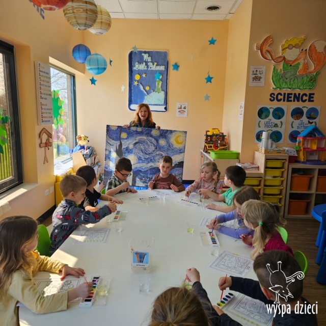 Zainspirowani  “Gwiaździstą nocą” uczniowie Pre-K uczyli się mieszać kolory, stworzyli własne palety malarskie oraz wykonali kilka artystycznych projektów.