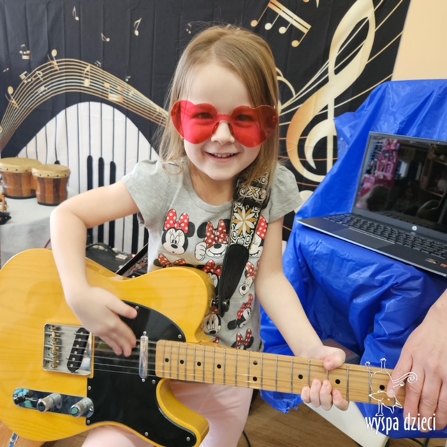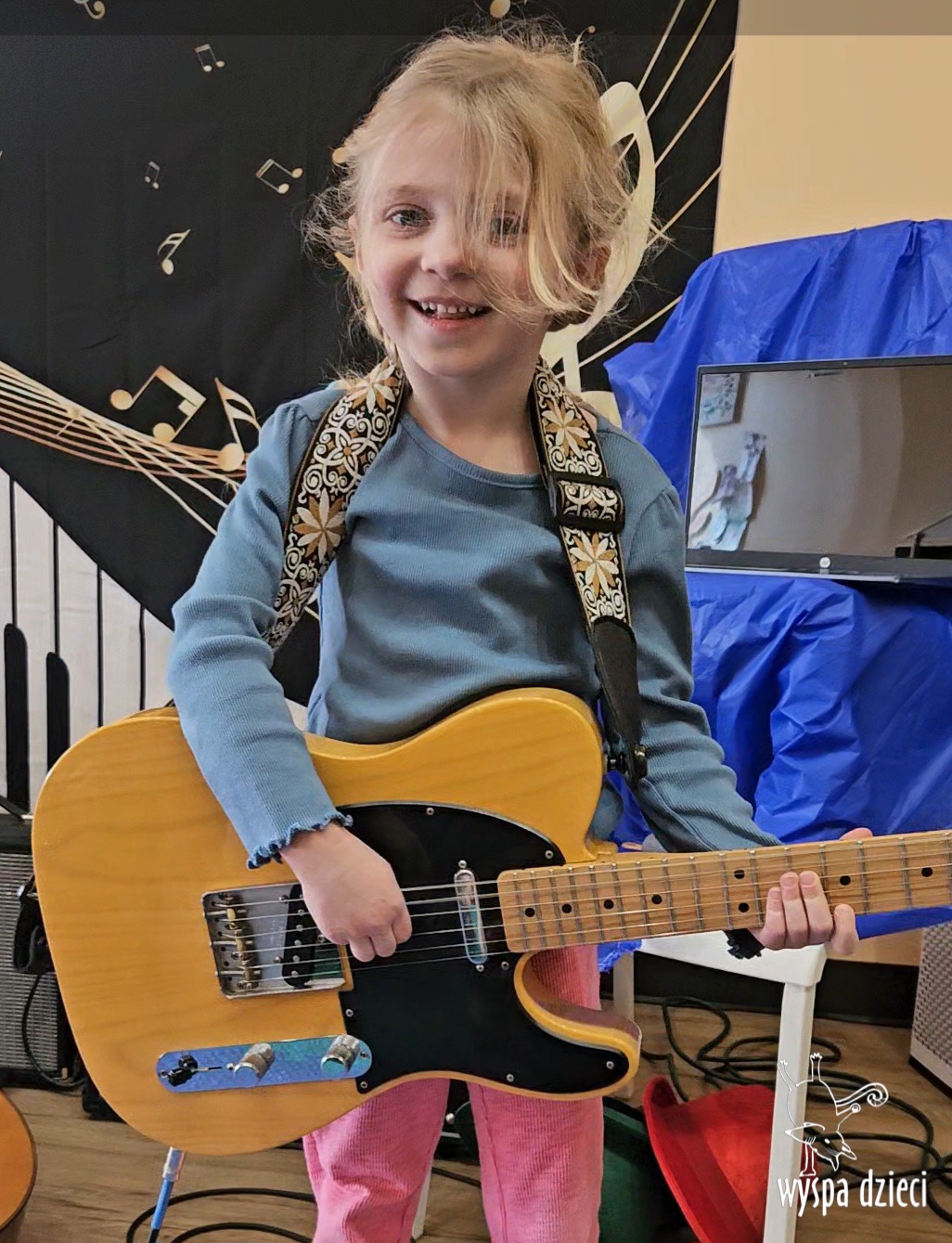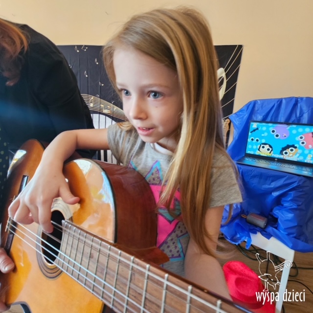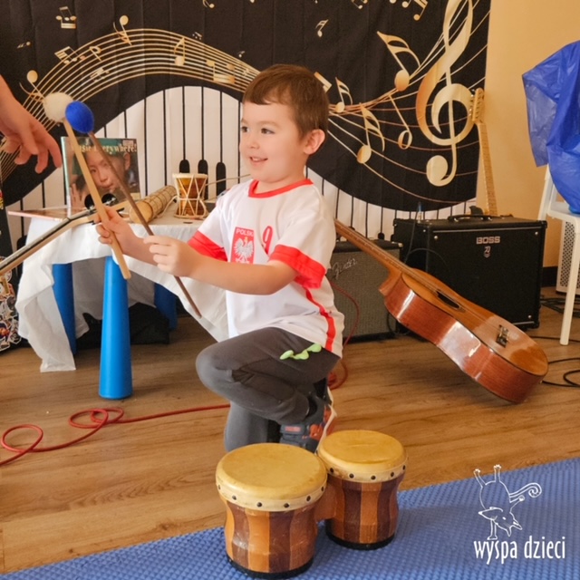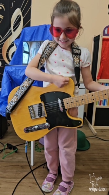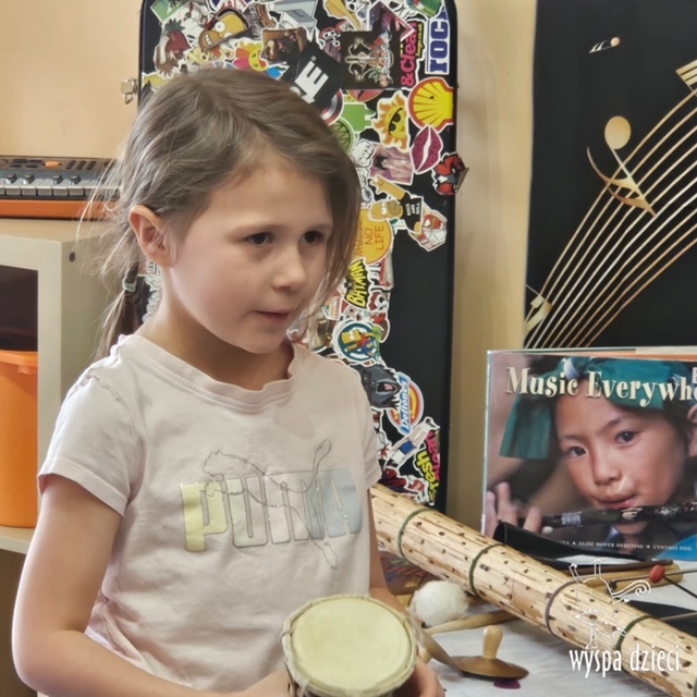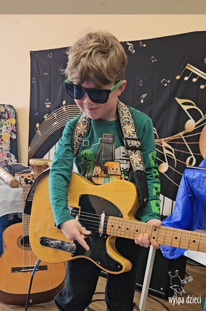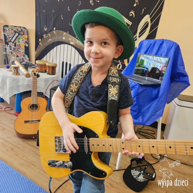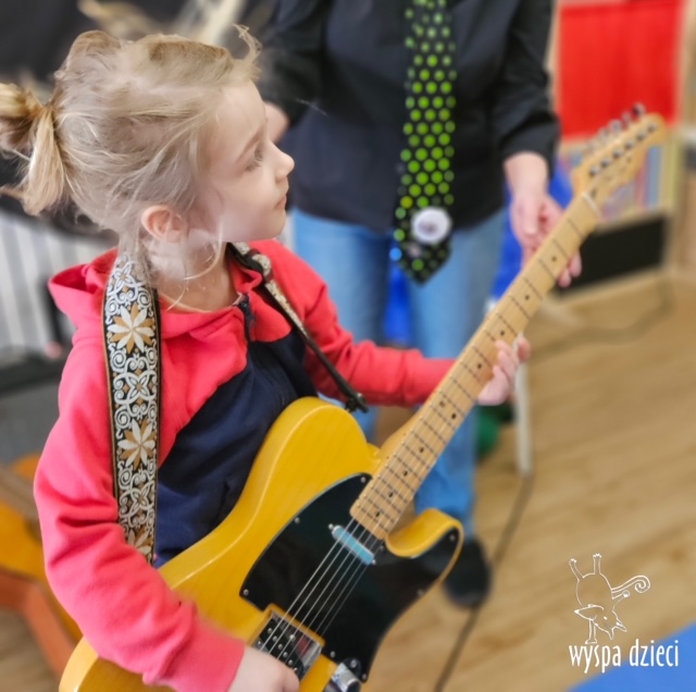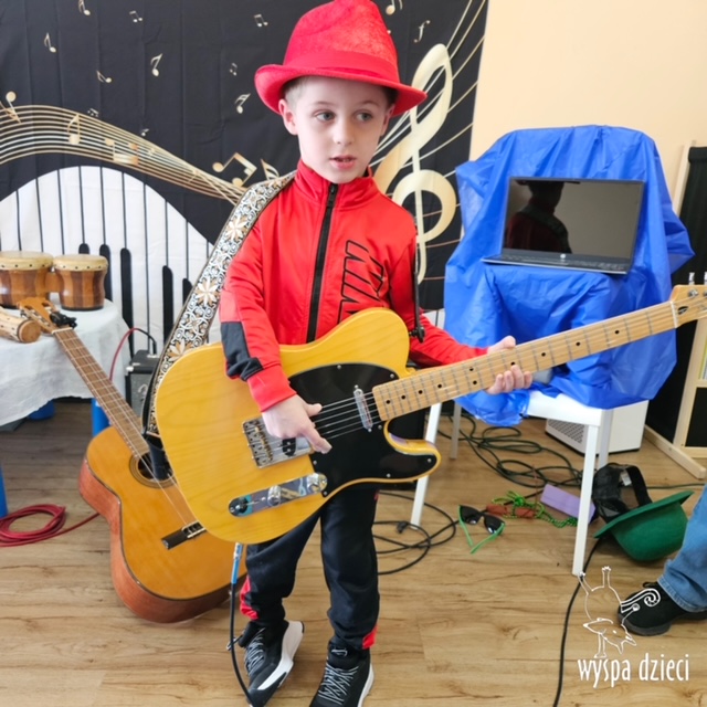 Swoją muzyczną przygodę rozpoczęli od poznawania różnych rodzajów muzyki oraz oryginalnych instrumentów muzycznych z różnych stron świata. Były tańce, gry i zabawy rytmiczne i ruchowe oraz wspólne śpiewanie przy dźwiękach gitary. Odkrywcy mieli również szansę własnoręcznie wykonać i ozdobic proste grzechotki. Największą frajdę sprawiło jednak początkującym muzykom tworzenie swojego wizerunku artystycznego oraz wypróbowanie różnych instrumentów – od saksofonu i keyboardu po gitary –  elektryczną oraz basową. Oj, było głośno! Z krótką wizytą wpadł również do Odkrywców polski muzyk zaprzyjaźniony z Wyspą Dzieci – Bart Piercyk  (bardzo dziękujemy!), który zainicjował dyskusję na temat muzycznych gustów naszych uczniów. Odkrywcy preferują wesołe rytmy, ale nie zabrakło też w klasie fanow bluesa.