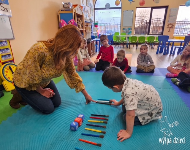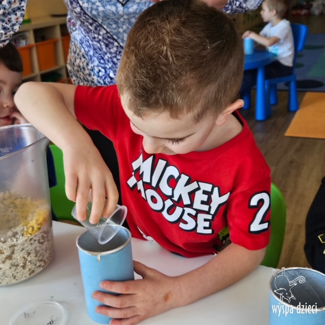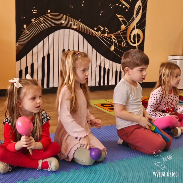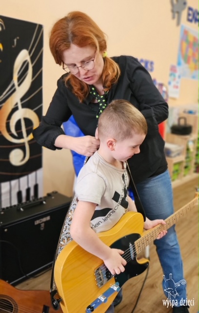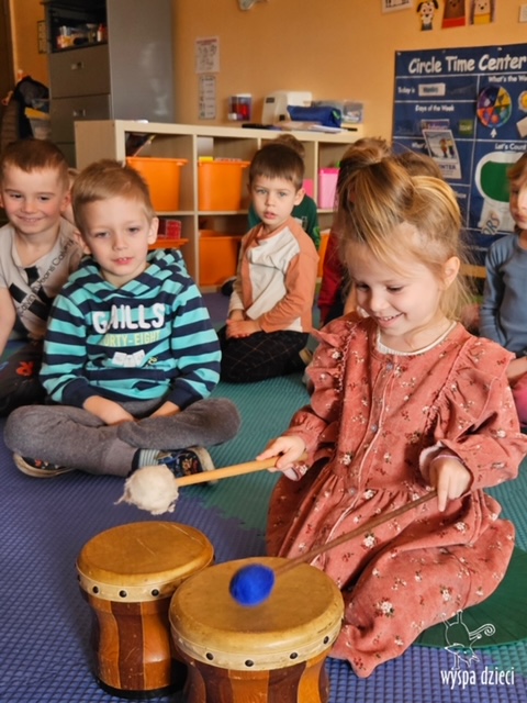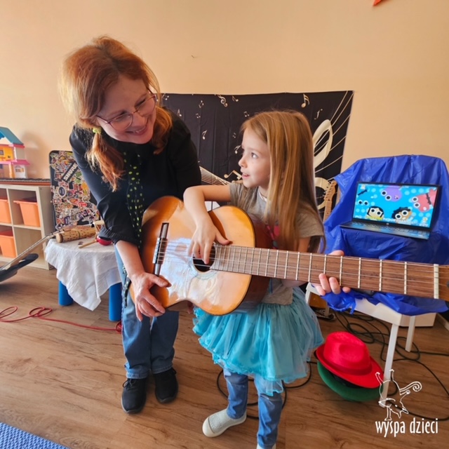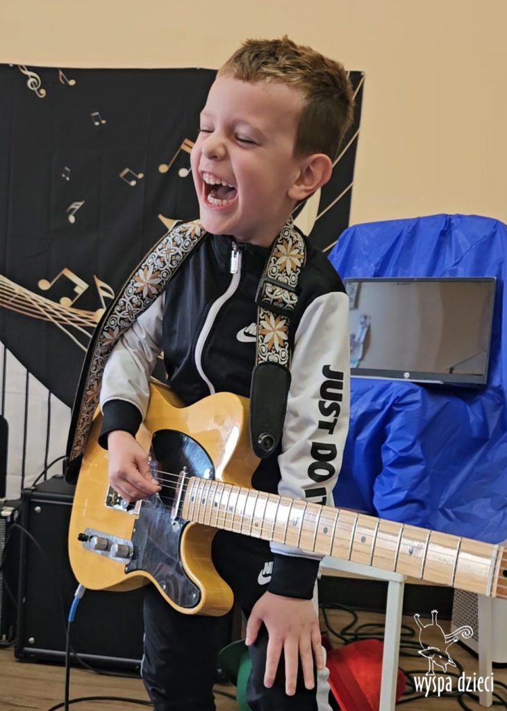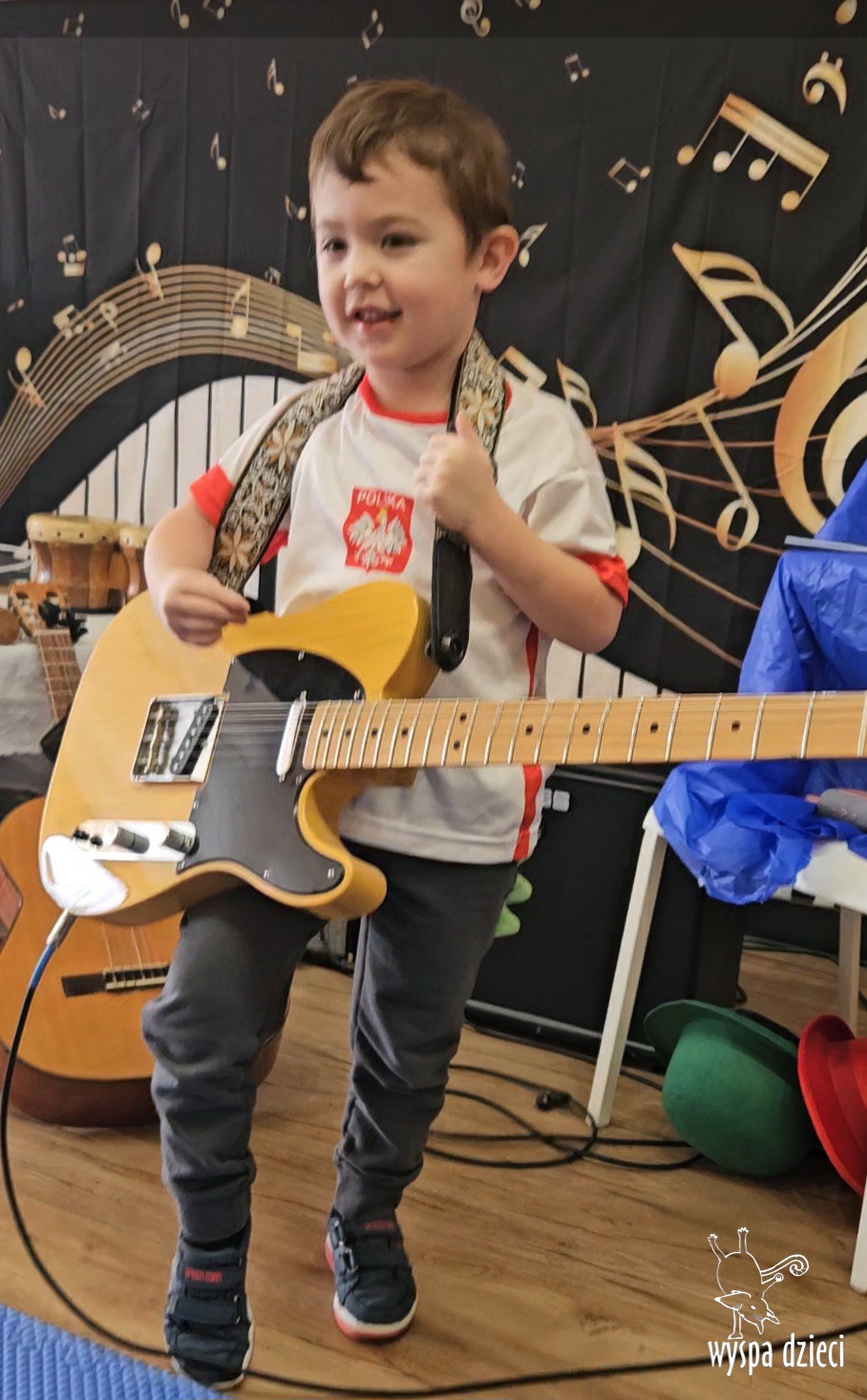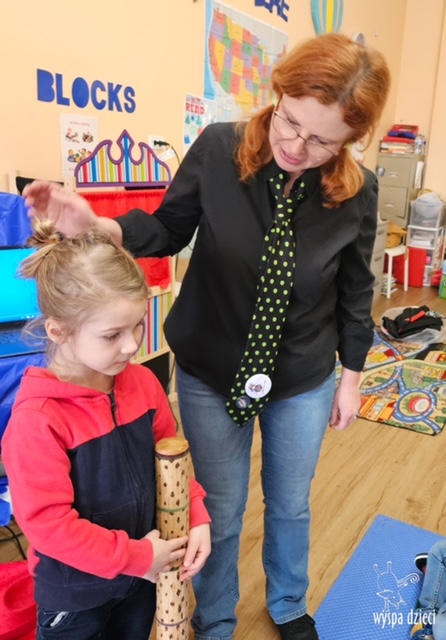 Swoją muzyczną przygodę rozpoczęli od poznawania różnych rodzajów muzyki oraz oryginalnych instrumentów muzycznych z różnych stron świata. Były tańce, gry i zabawy rytmiczne i ruchowe oraz wspólne śpiewanie przy dźwiękach gitary. Odkrywcy mieli również szansę własnoręcznie wykonać i ozdobic proste grzechotki. Największą frajdę sprawiło jednak początkującym muzykom tworzenie swojego wizerunku artystycznego oraz wypróbowanie różnych instrumentów – od saksofonu i keyboardu po gitary –  elektryczną oraz basową. Oj, było głośno! Z krótką wizytą wpadł również do Odkrywców polski muzyk zaprzyjaźniony z Wyspą Dzieci – Bart Piercyk  (bardzo dziękujemy!), który zainicjował dyskusję na temat muzycznych gustów naszych uczniów. Odkrywcy preferują wesołe rytmy, ale nie zabrakło też w klasie fanow bluesa.