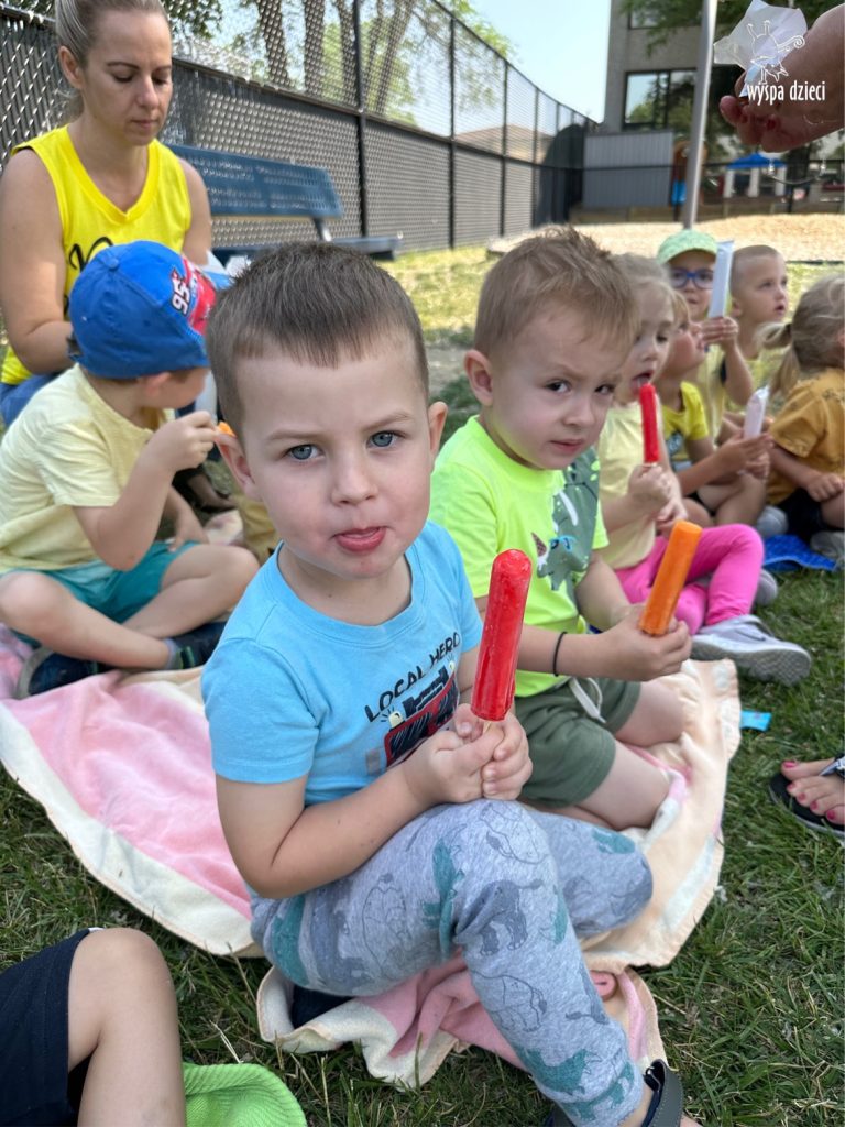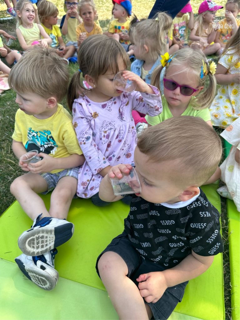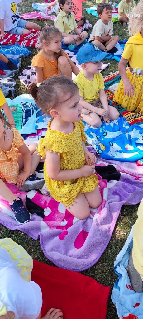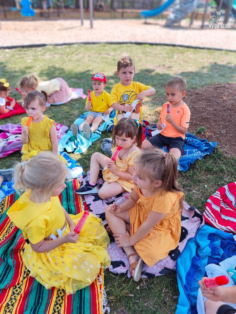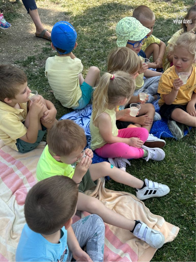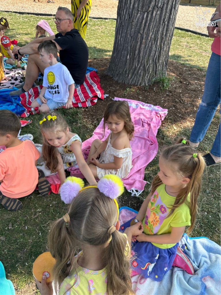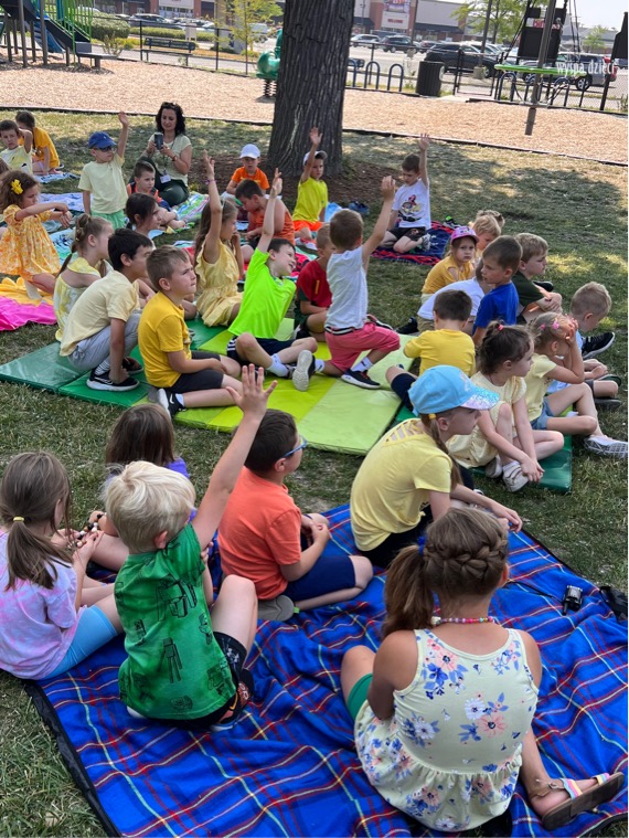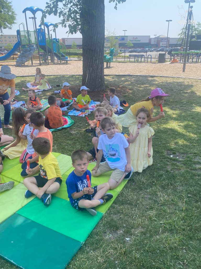Od rana 21 czerwca wszystkie dzieci wraz z nauczycielami oczekiwały na Panią Lato. Pani lato przyniosła nam piękny uśmiech, dużo słońca i kosz pełen letnich darów. Wspólnie rozmawialiśmy o letnich, wakacyjnych przygodach. Wszyscy razem spędziliśmy miło czas odgadując ciekawe zagadki które przygotowała dla nas Pani Lato. Na koniec piliśmy orzeźwiająca lemoniadę i zajadaliśmy się  pysznymi lodami.
