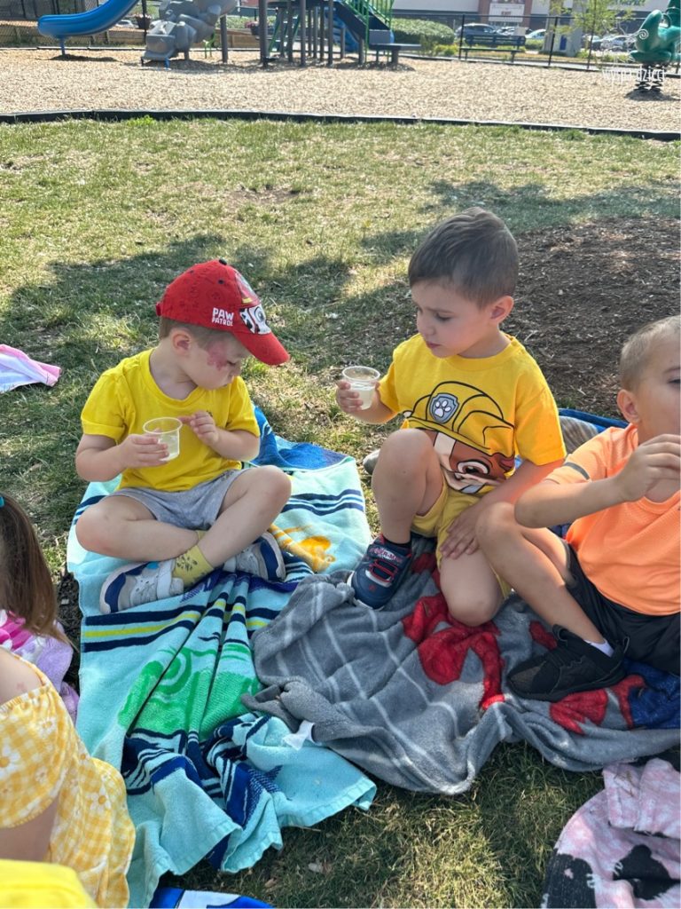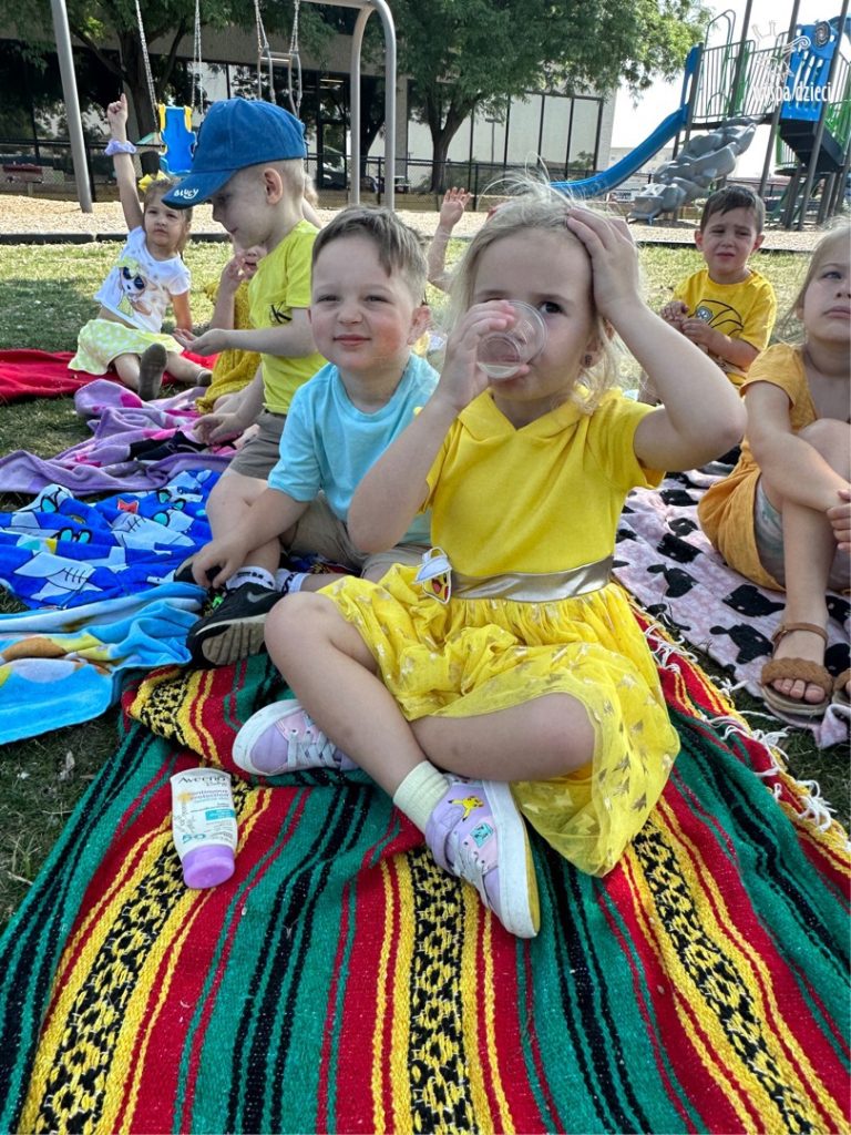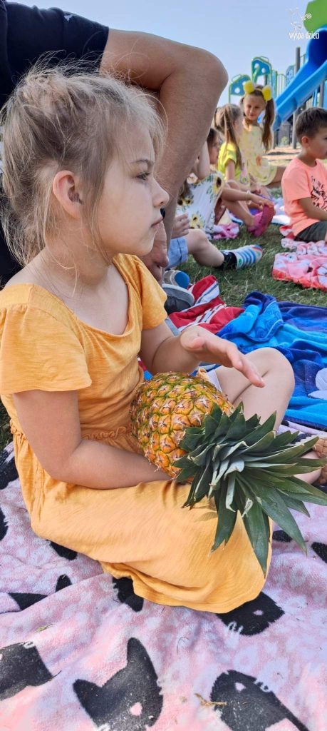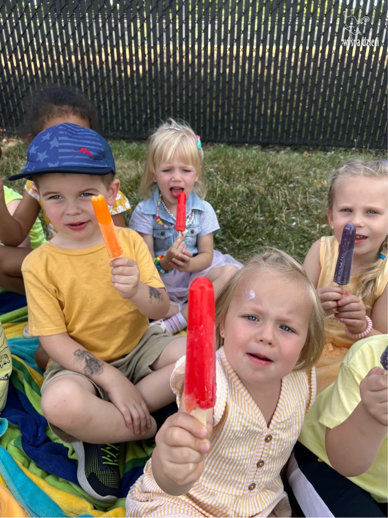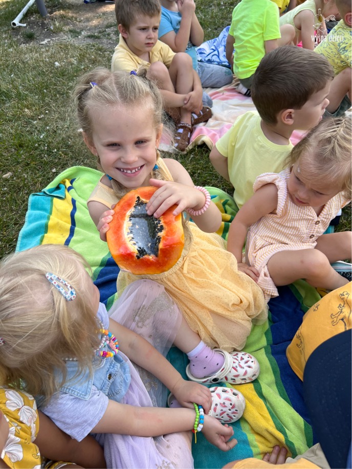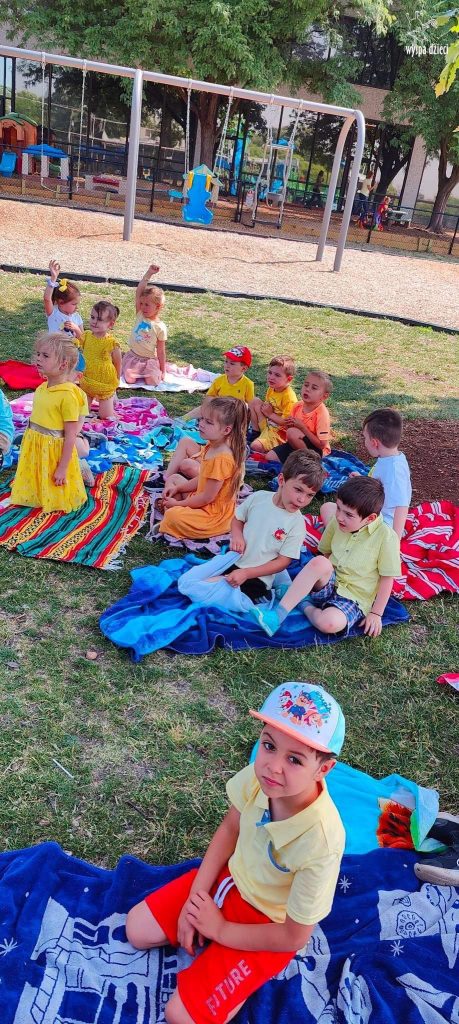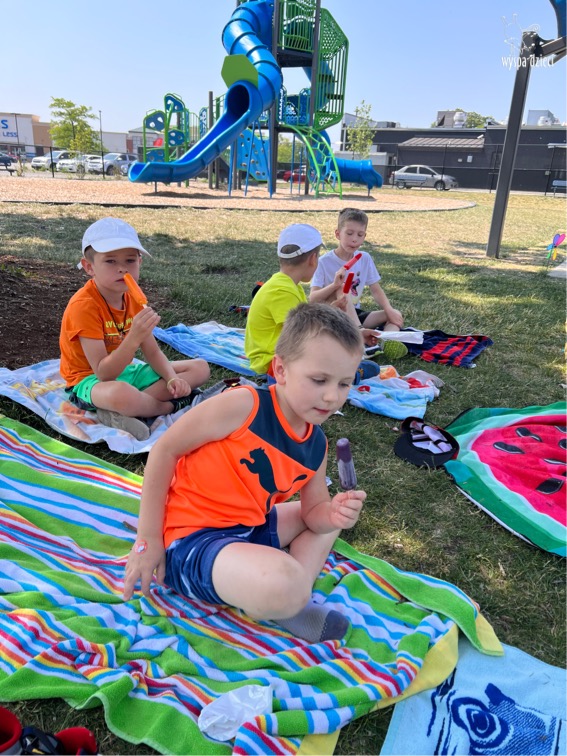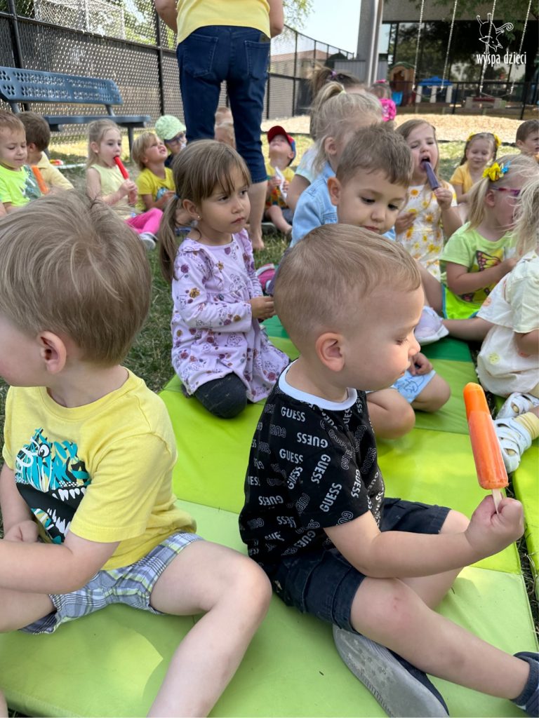 Od rana 21 czerwca wszystkie dzieci wraz z nauczycielami oczekiwały na Panią Lato. Pani lato przyniosła nam piękny uśmiech, dużo słońca i kosz pełen letnich darów. Wspólnie rozmawialiśmy o letnich, wakacyjnych przygodach. Wszyscy razem spędziliśmy miło czas odgadując ciekawe zagadki które przygotowała dla nas Pani Lato. Na koniec piliśmy orzeźwiająca lemoniadę i zajadaliśmy się  pysznymi lodami.