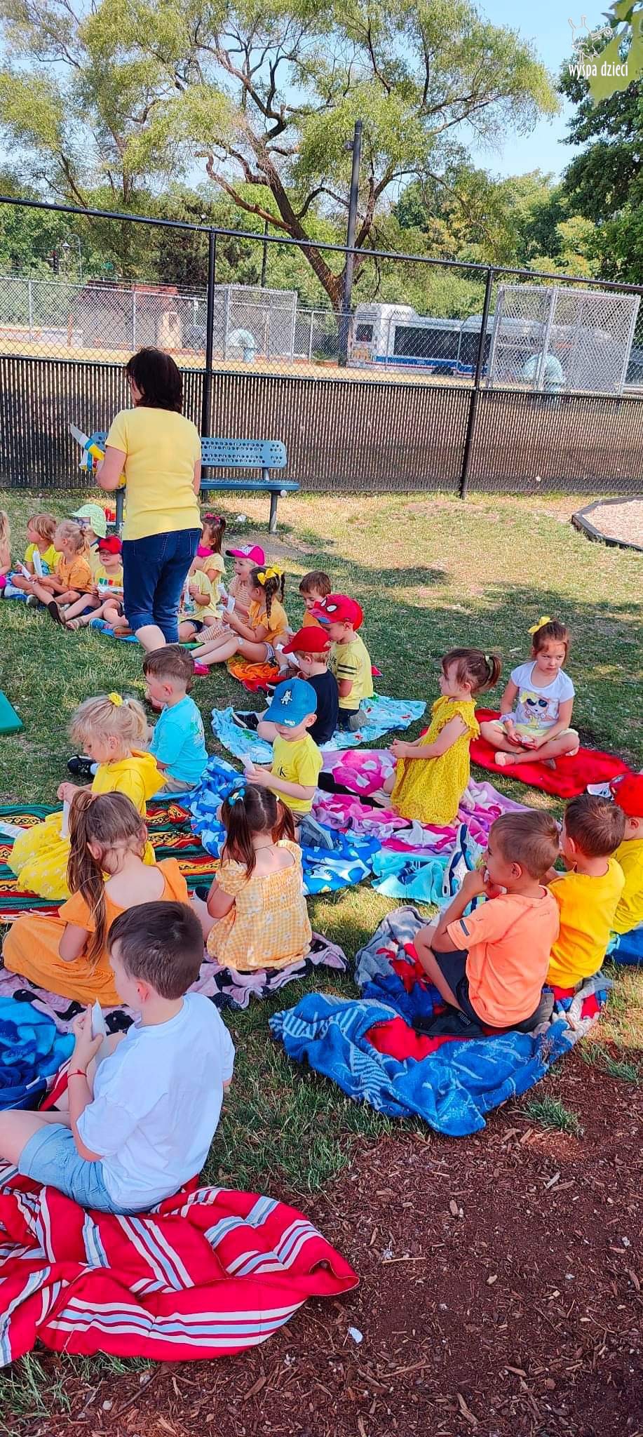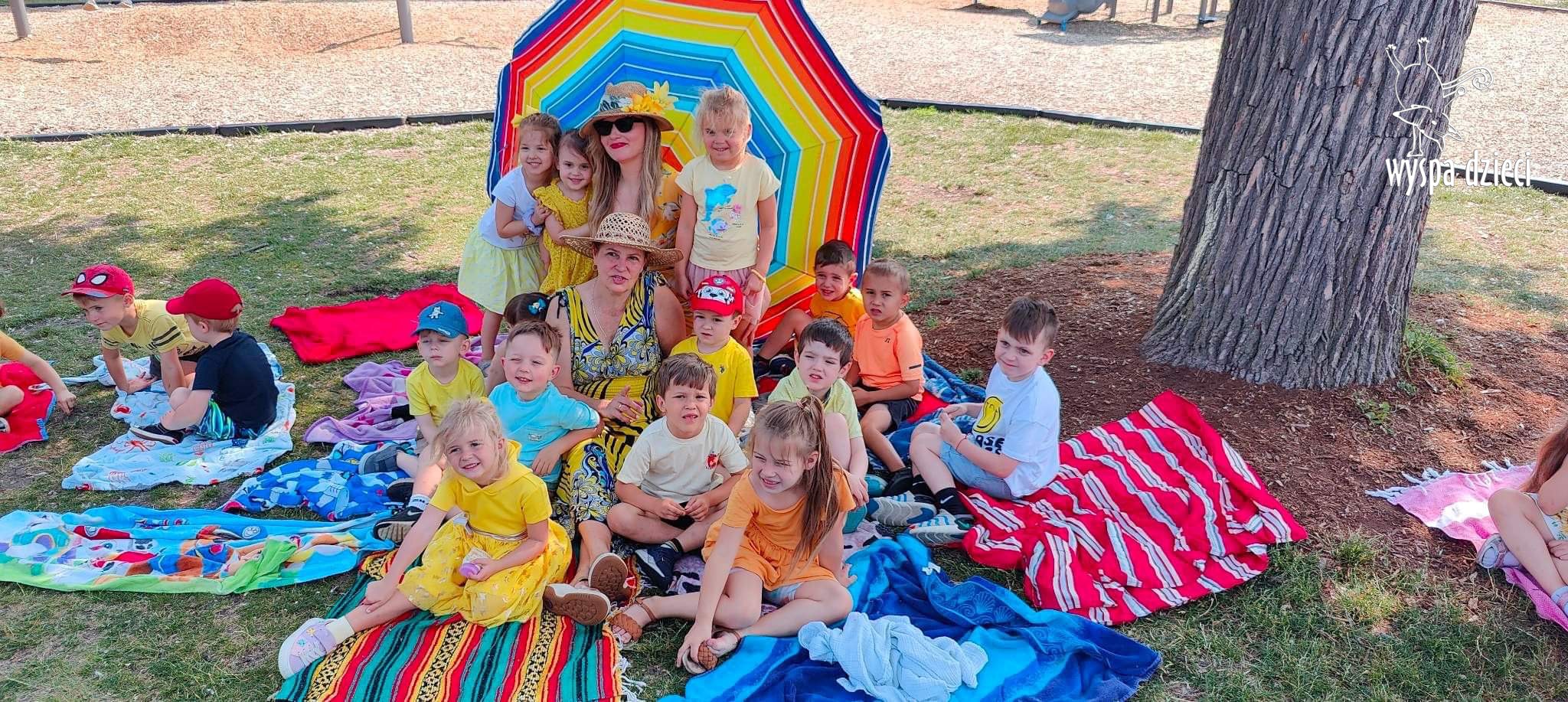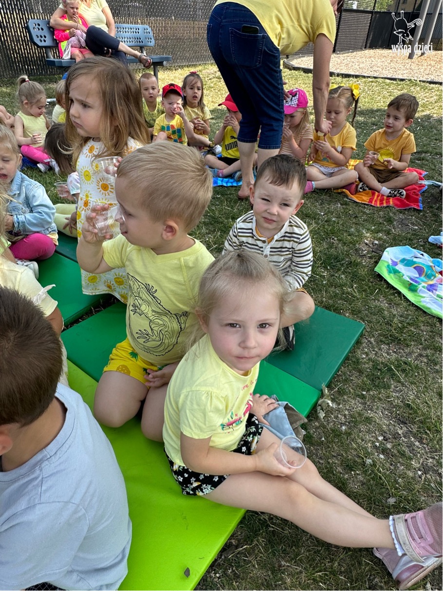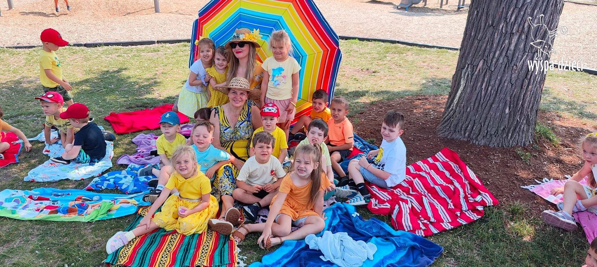 Od rana 21 czerwca wszystkie dzieci wraz z nauczycielami oczekiwały na Panią Lato. Pani lato przyniosła nam piękny uśmiech, dużo słońca i kosz pełen letnich darów. Wspólnie rozmawialiśmy o letnich, wakacyjnych przygodach. Wszyscy razem spędziliśmy miło czas odgadując ciekawe zagadki które przygotowała dla nas Pani Lato. Na koniec piliśmy orzeźwiająca lemoniadę i zajadaliśmy się  pysznymi lodami.