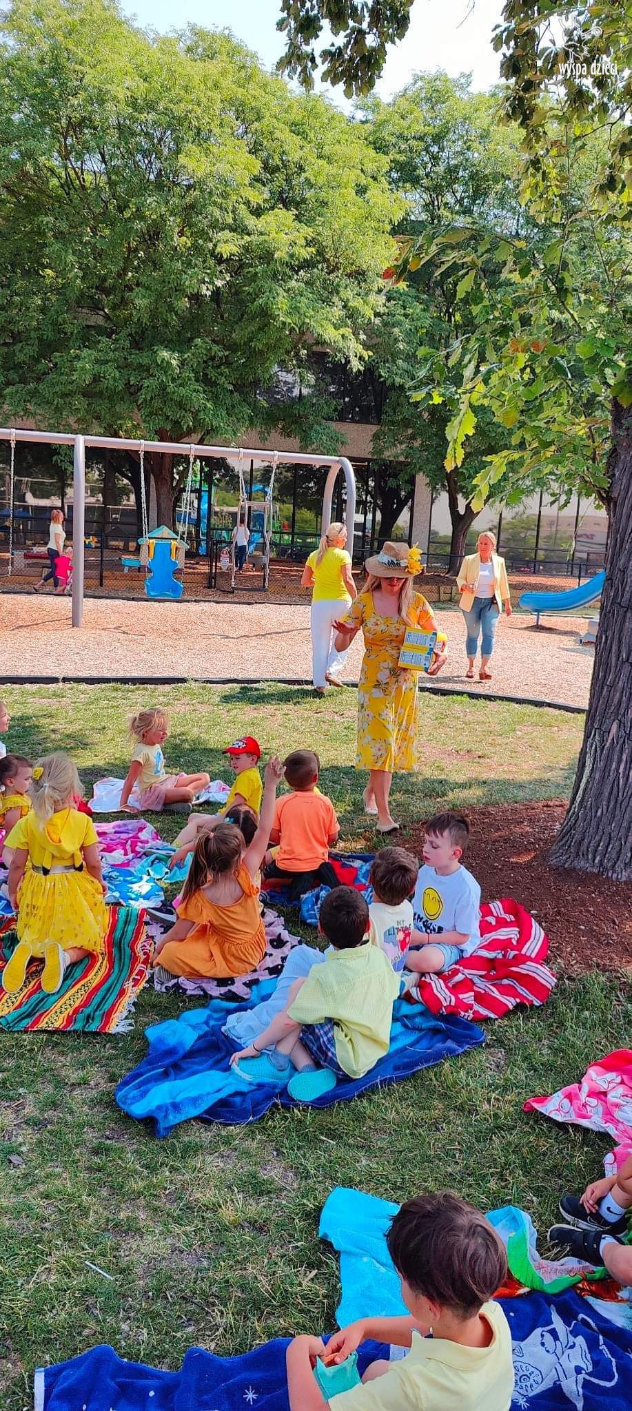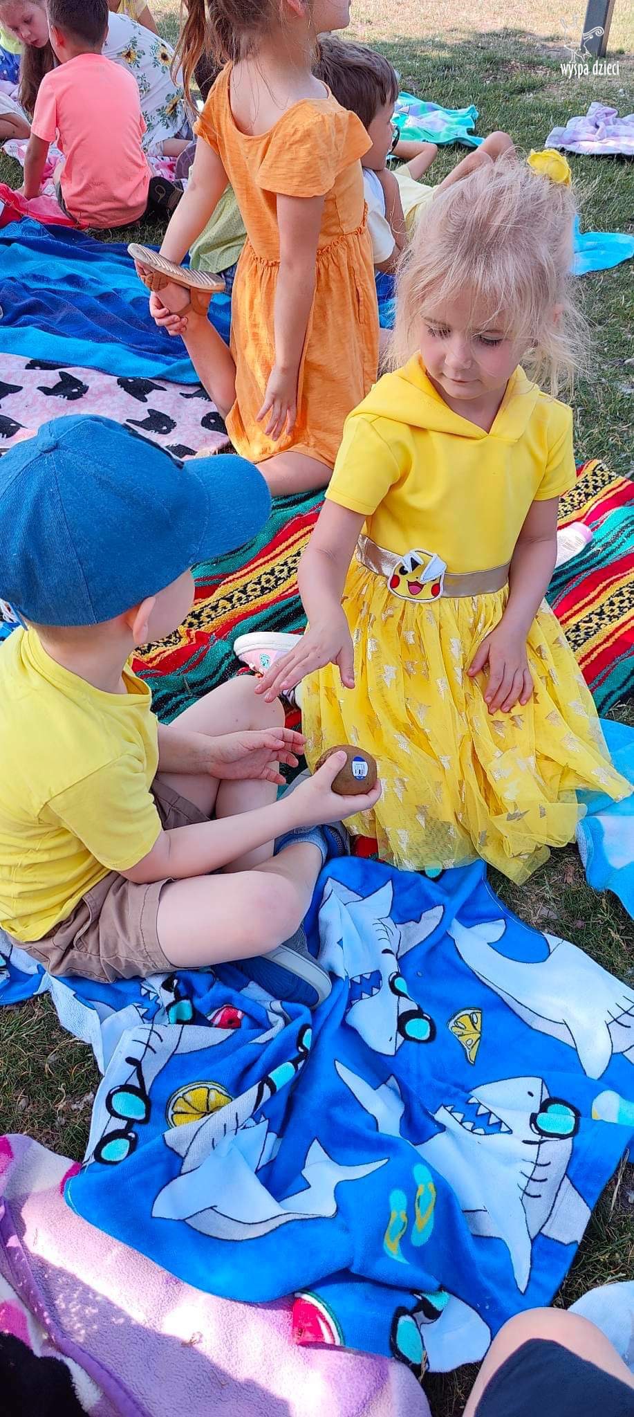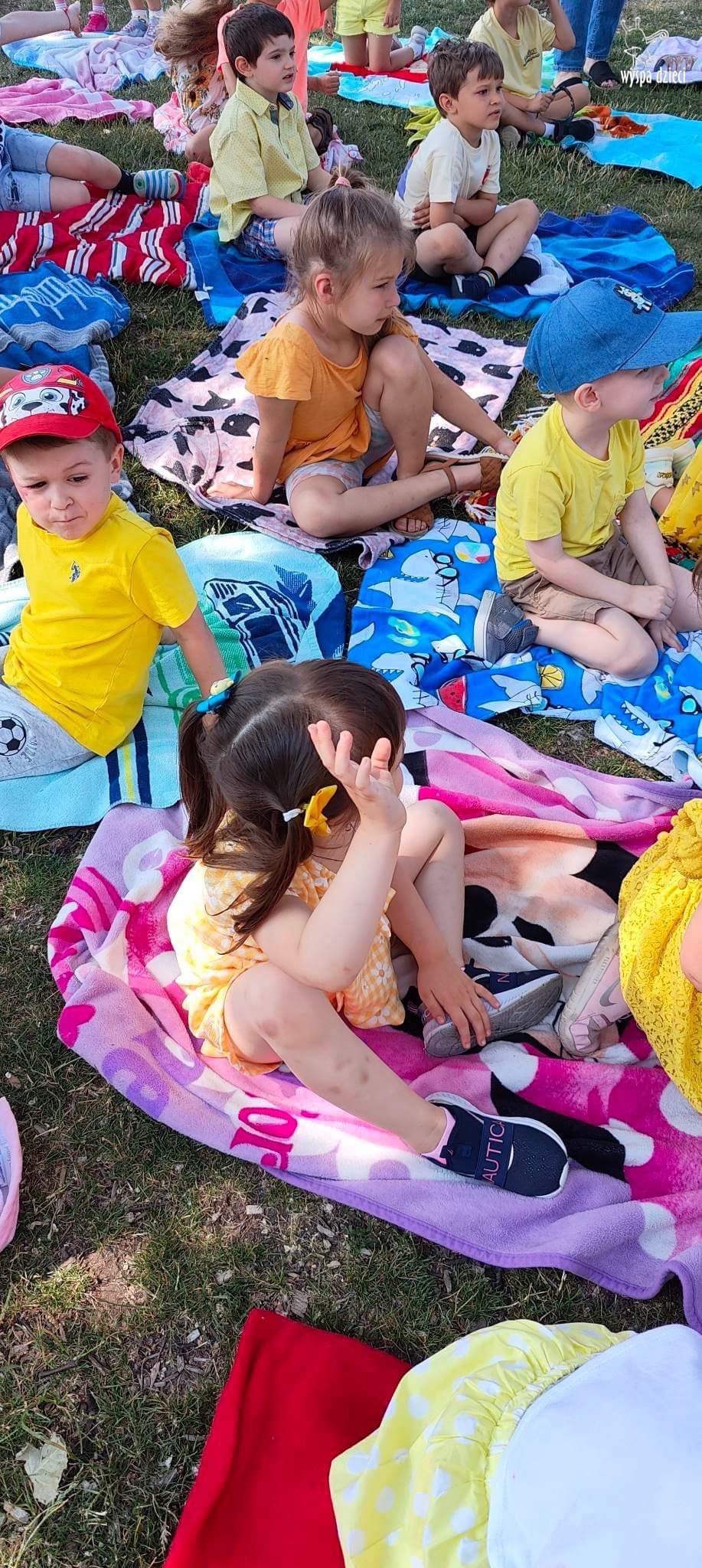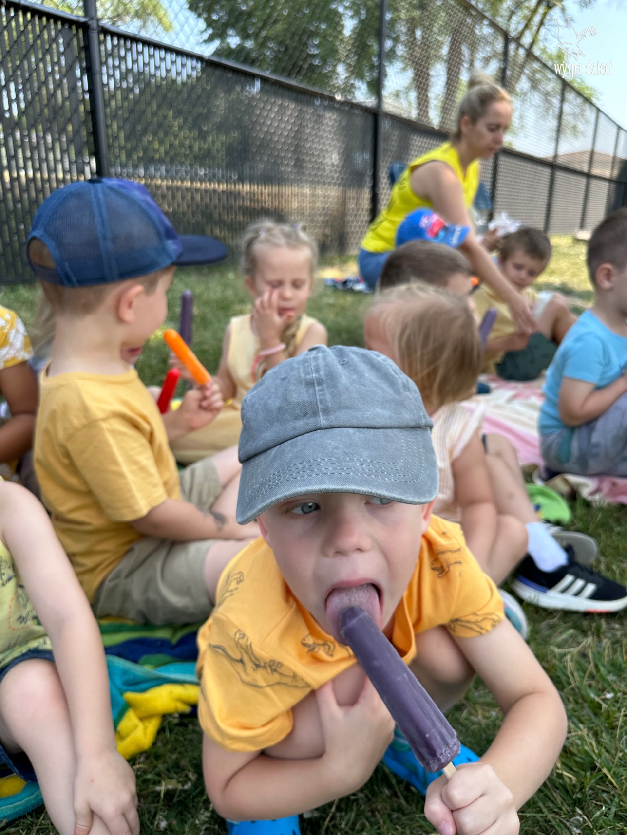 Od rana 21 czerwca wszystkie dzieci wraz z nauczycielami oczekiwały na Panią Lato. Pani lato przyniosła nam piękny uśmiech, dużo słońca i kosz pełen letnich darów. Wspólnie rozmawialiśmy o letnich, wakacyjnych przygodach. Wszyscy razem spędziliśmy miło czas odgadując ciekawe zagadki które przygotowała dla nas Pani Lato. Na koniec piliśmy orzeźwiająca lemoniadę i zajadaliśmy się  pysznymi lodami.