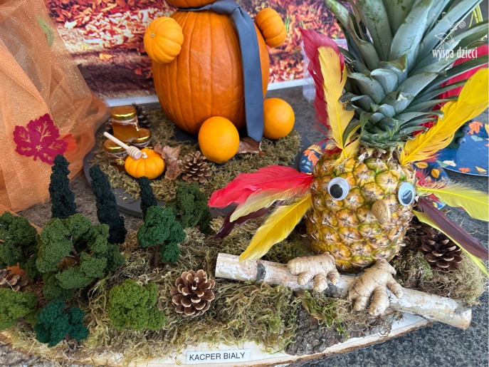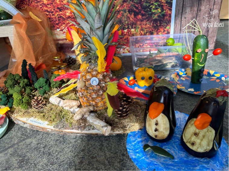 Na Wyspie Dzieci w River Grove zainspirowani darami jesieni zorganizowaliśmy jak co roku konkurs rodzinny na „Owocowo-warzywnego stwora”. Przedszkolaki wraz z rodzicami wykazali się niezwykłą kreatywnością i stworzyły piękne, owocowo-warzywne stworki. Pomysłów było mnóstwo, a warzyw i owoców użytych do tworzenia jeszcze więcej! Prace były tak wspaniałe, że trudno było wyłonić zwycięzcę, więc każdy uczestnik otrzymał nagrodę.