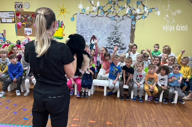 Dnia 10 lutego odbyło się w Przedszkolu spotkanie z panią Magdalena K – higienistką. Pani Magda opowiedziała dzieciom jak należy dbać o higienę jamy ustnej, jaka jest najlepsza technika mycia zębów. Dzieci słuchały z dużym zainteresowaniem dzieląc się własnymi doświadczeniami z pobytu u dentysty