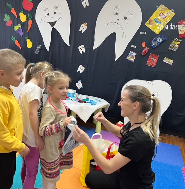 i wiedzy na temat mycia zębów oraz dbania o nie. Następnie przedszkolaki otrzymamy upominki i zrobili pamiątkowe zdjęcia. Serdecznie dziękujemy za cenne wskazówki, które na pewno wykorzystamy w praktyce.