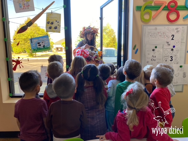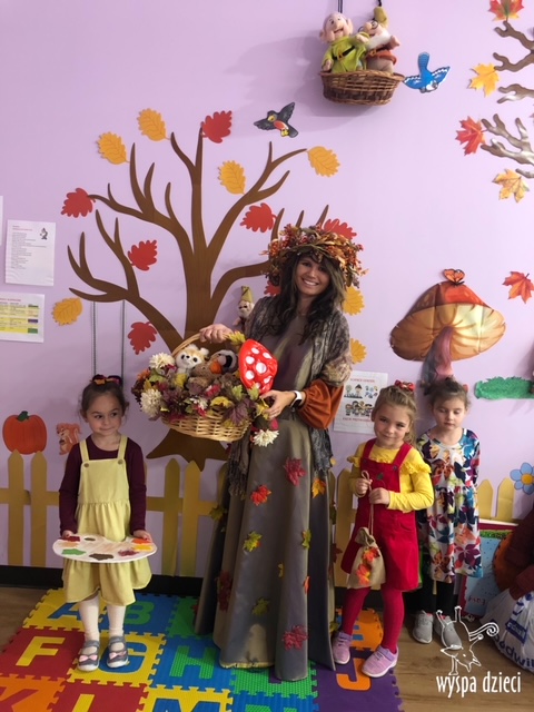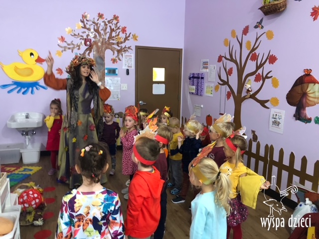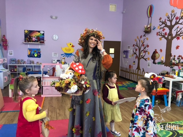 Już czas pożegnać słoneczne lato i przywitać następną piękną porę roku JESIEŃ! Do przedszkolnych drzwi Wyspy Dzieci w Algonquin zapukała piękna, kolorowna pani w sukni pokrytej kolorowymi listkami.