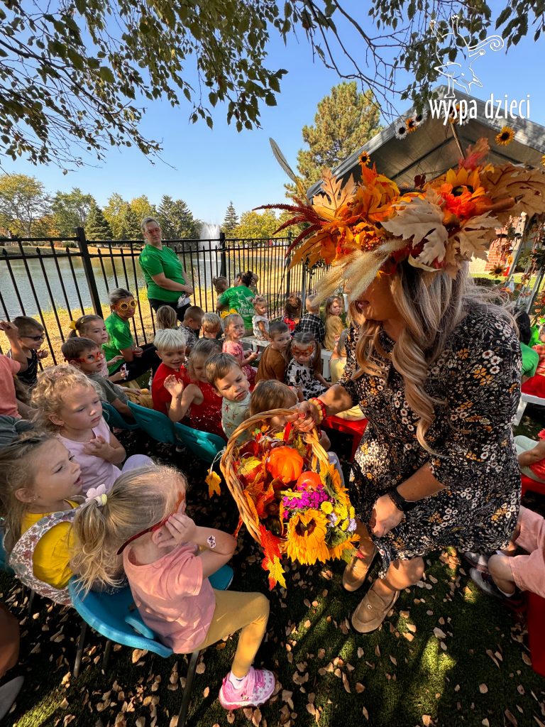 Pani Jesień przybyła z koszem pełnym darów i niespodzianek, ktore rozdała naszym przedszkolakom.